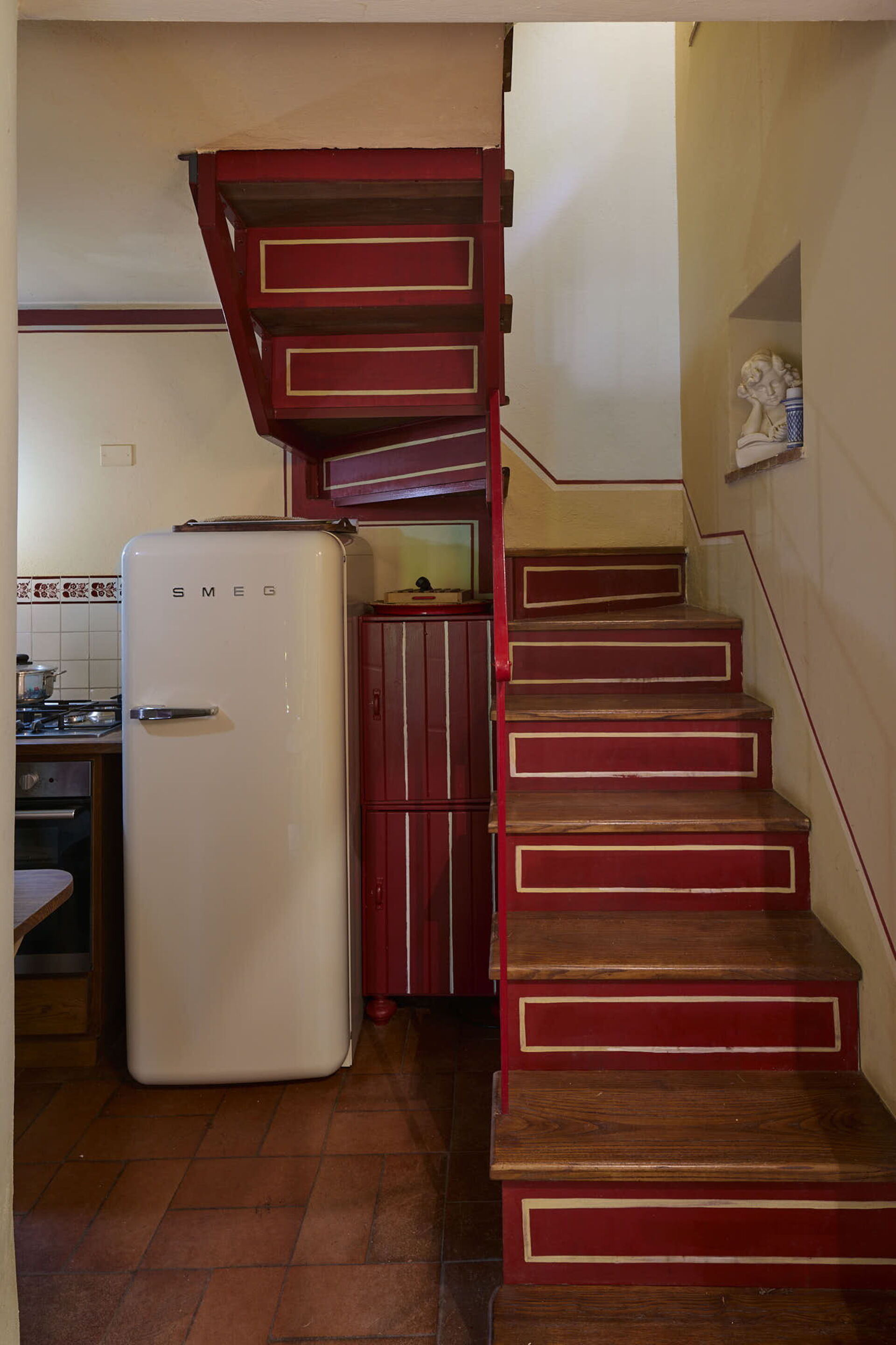 Al primo piano si trova una spaziosa camera matrimoniale con accesso diretto all’esterno, ideale per godersi momenti di tranquillità. Completa il piano un bagno con vasca. A disposizione degli ospiti anche una lavanderia in vano separato con lavatrice, asse e ferro da stiro, oltre allo stendino, per un soggiorno pratico e senza pensieri.