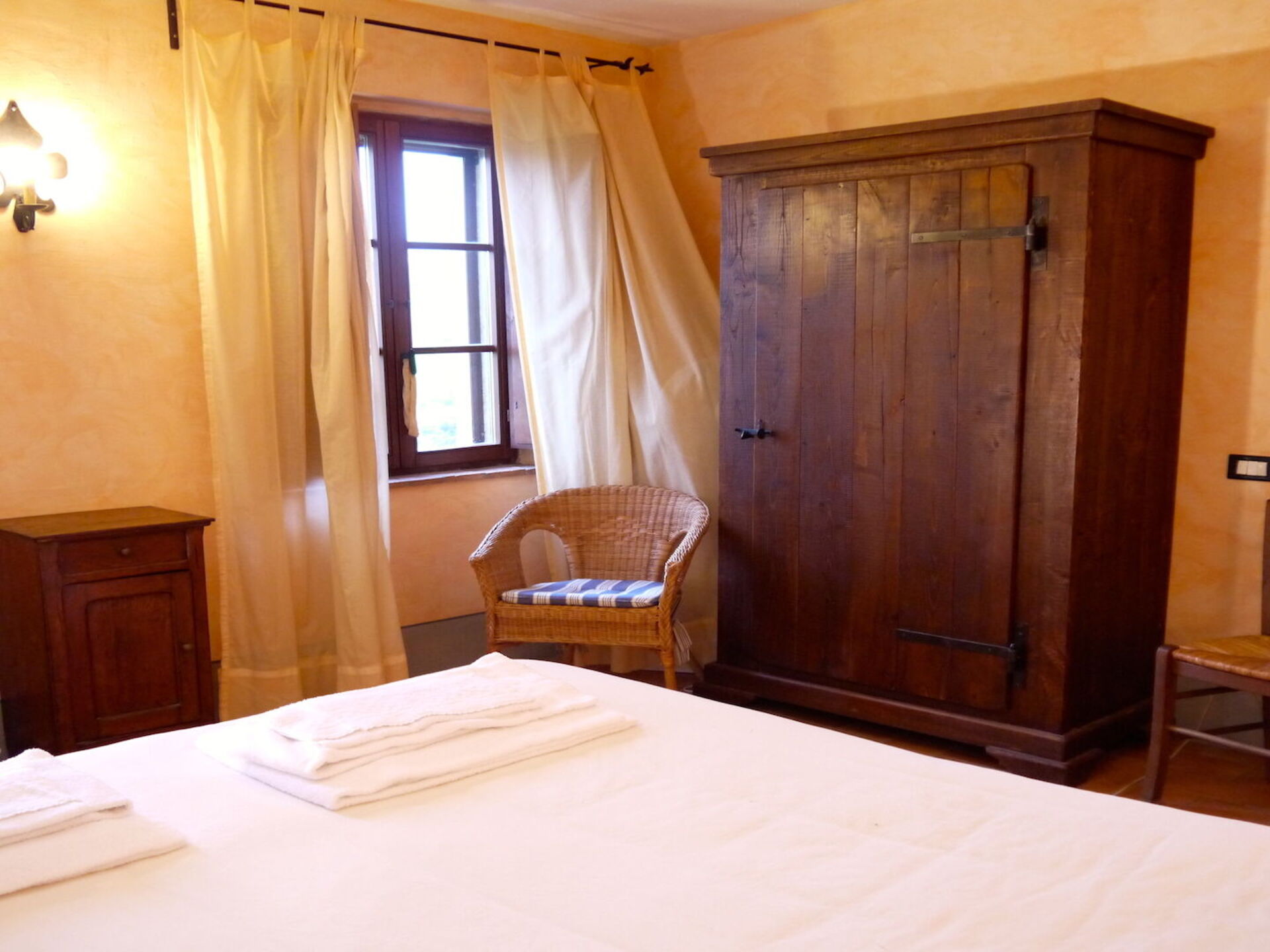 L’appartamento è al primo piano di una casa rurale in pietra ed è stato ristrutturato e arredato con gusto nello stile umbro. Si compone di: soggiorno con camino, divano letto, angolo cucina completamente attrezzato con tutti gli elettrodomestici (lavastoviglie, piano cottura , forno microonde, frigo e congelatore). Una camere matrimoniale con un terzo letto una seconda camera doppia. Un bagno con doccia completa l’appartamento. E ‘presente la linea wi-fi.