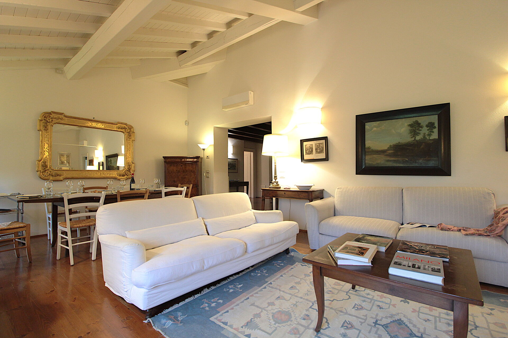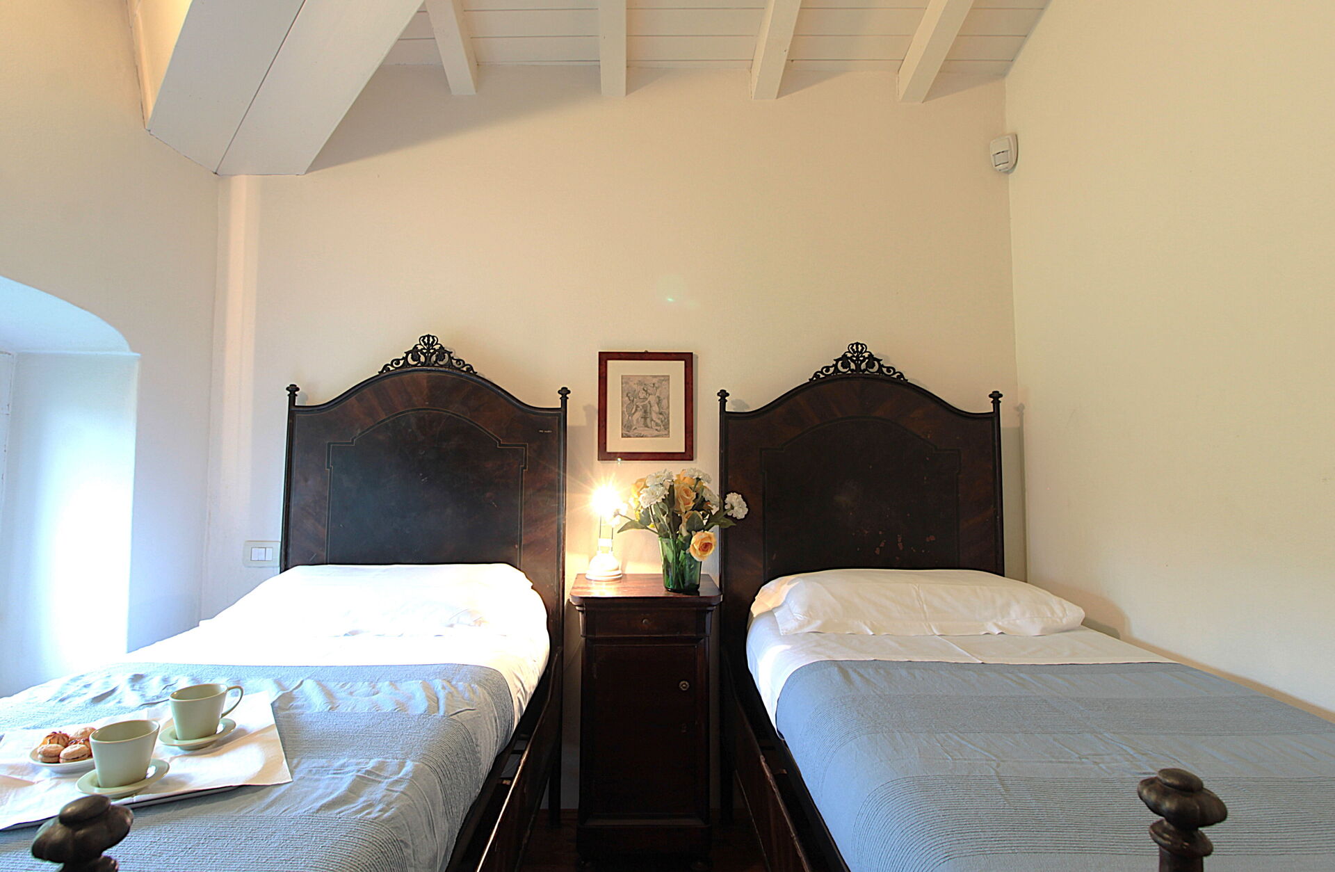 Per la sua posizione al secondo piano della Villa, l'appartamento è caratterizzato da una meravigliosa vista sul parco e sui vigneti circostanti. Attorno all'ampio e luminoso soggiorno, ruotano le 4 camere da letto, i 3 bagni e la cucina. E' l'alloggio ideale per tutti coloro che sono affascinati dal soggiornare in una Dimora Storica, ma con tutti i confort moderni. Gli ampi spazi lo rendono adatto a famiglie numerose o a gruppi di amici, che possono godere anche di una zona privata in giardino con tavolo per pranzare all'aperto, oltre che del parco e della piscina in comune con gli ospiti degli atri alloggi. Trattandosi di Dimora Storica, all'appartamento si accede tramite ampie scale senza ascensore.