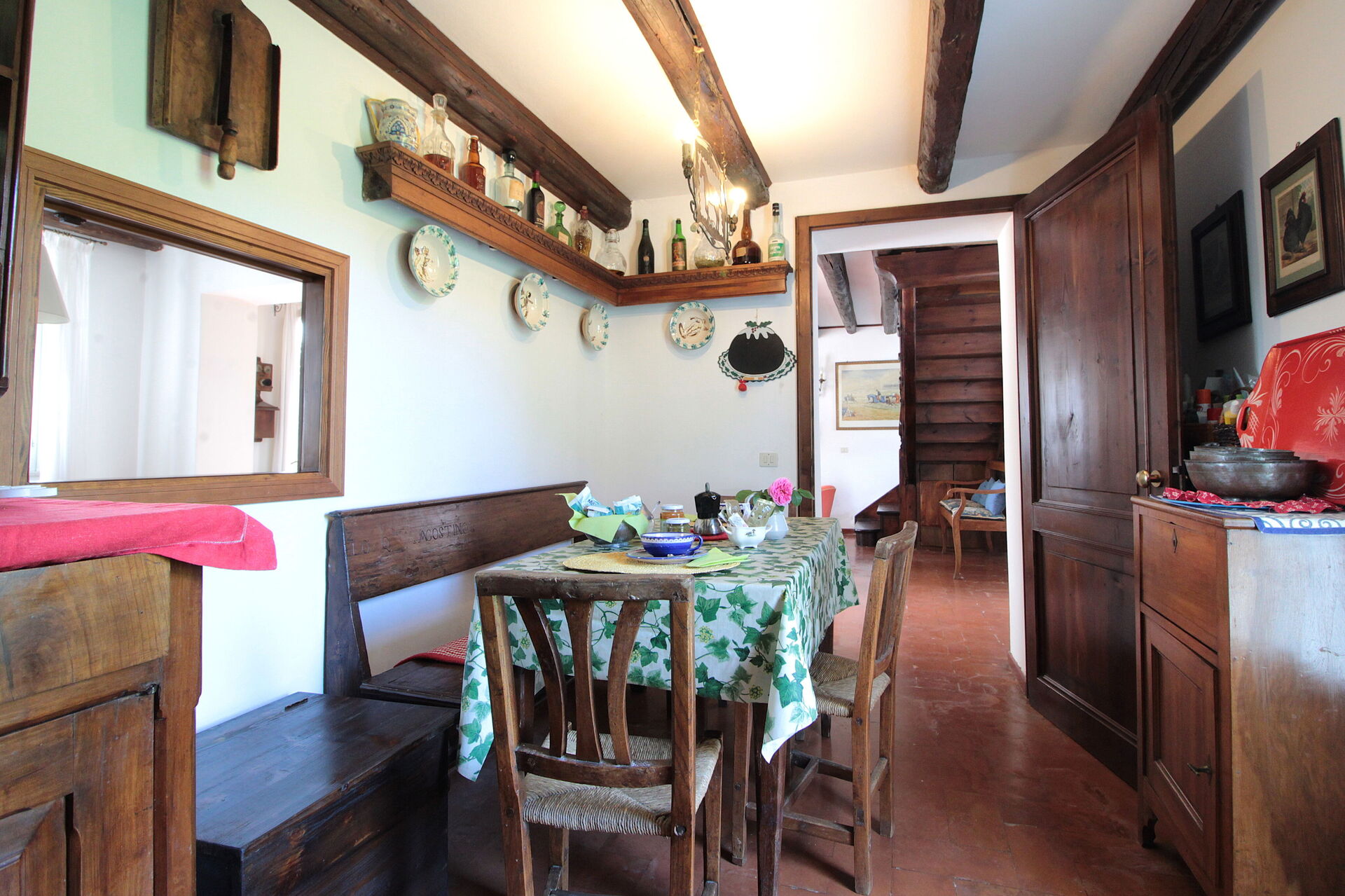 Casa bifamiliare, si sviluppa su due piani collegati da una scala in legno che conserva il fascino rustico e autentico dell’abitazione. Immersa nel verde di una rigogliosa collina e protetta a nord dalle montagne, questa incantevole dimora di fine Ottocento gode di una splendida esposizione a sud, che le regala sole per tutto il giorno e una magnifica vista sulla pianura sottostante. Circondata dalla natura, è il luogo perfetto per concedersi momenti di quiete e relax dopo una giornata di escursioni nei dintorni.