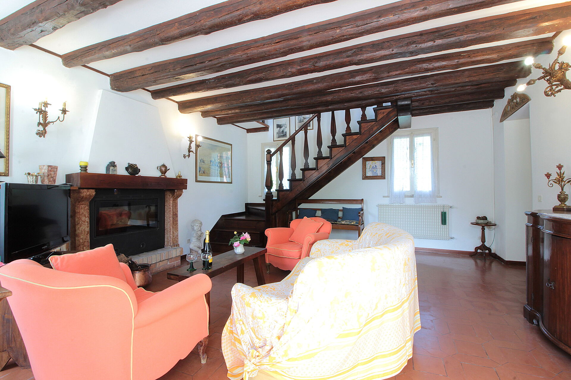 Piano terra: cucina completamente attrezzata, dotata di frigorifero e forno. Zona pranzo. Salotto con accesso diretto al giardino. Primo piano: Camera matrimoniale. Camera di passaggio con due letti singoli. Bagno con vasca.
