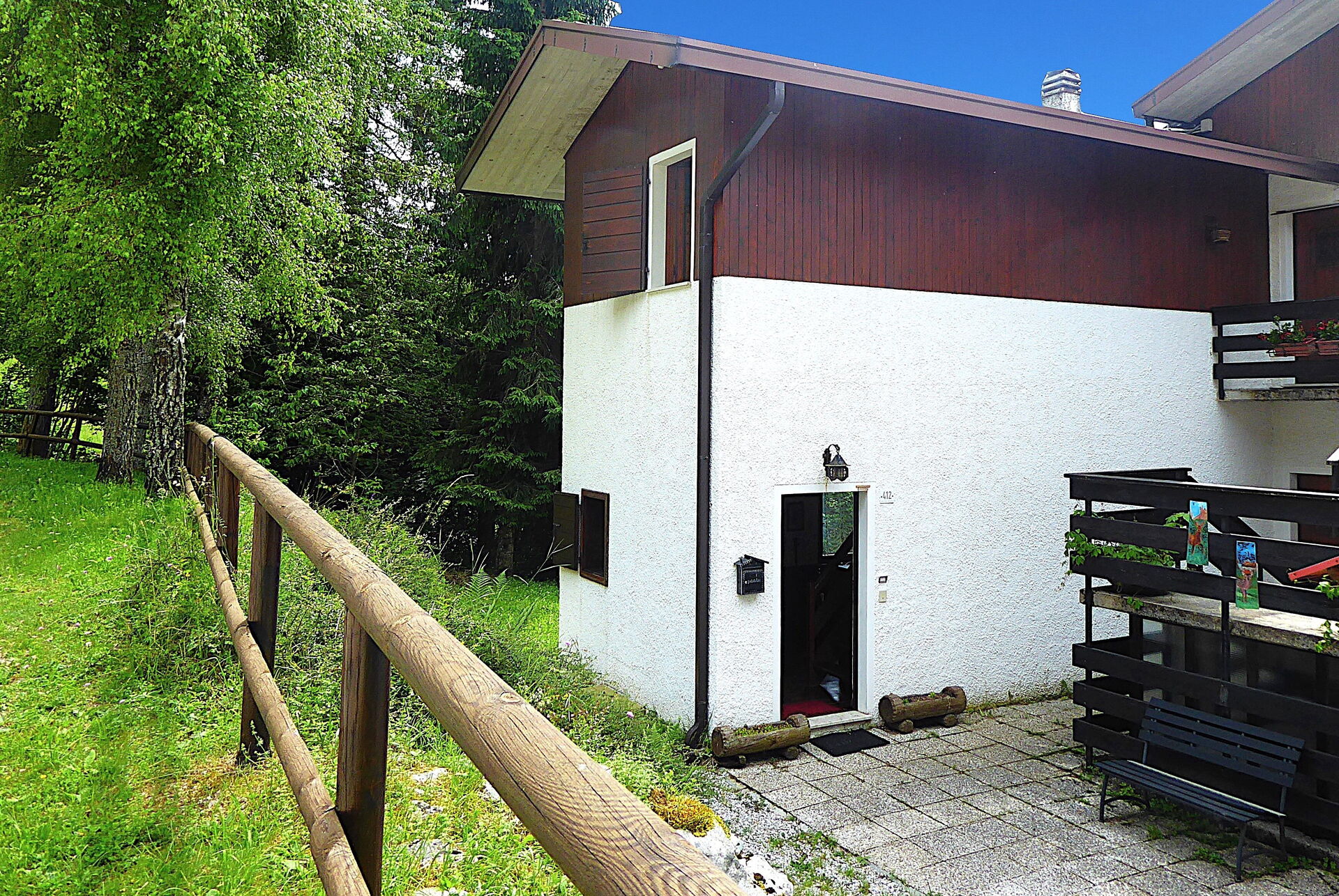 Un' accogliente casa di montagna a 1.000 m di altitudine, posizionata in un tranquillo borgo residenziale sul monte Nevegal, confinante solo su un lato con le proprietà adiacenti, con cui condivide gli ampi spazi esterni.