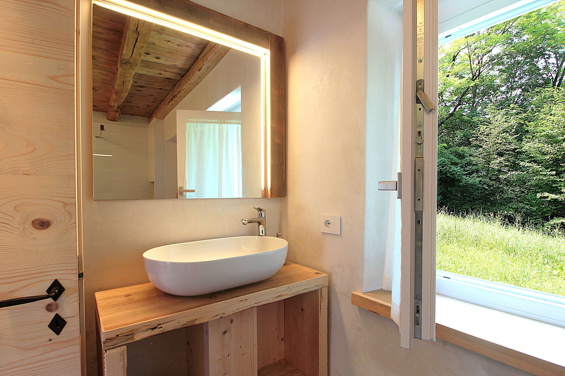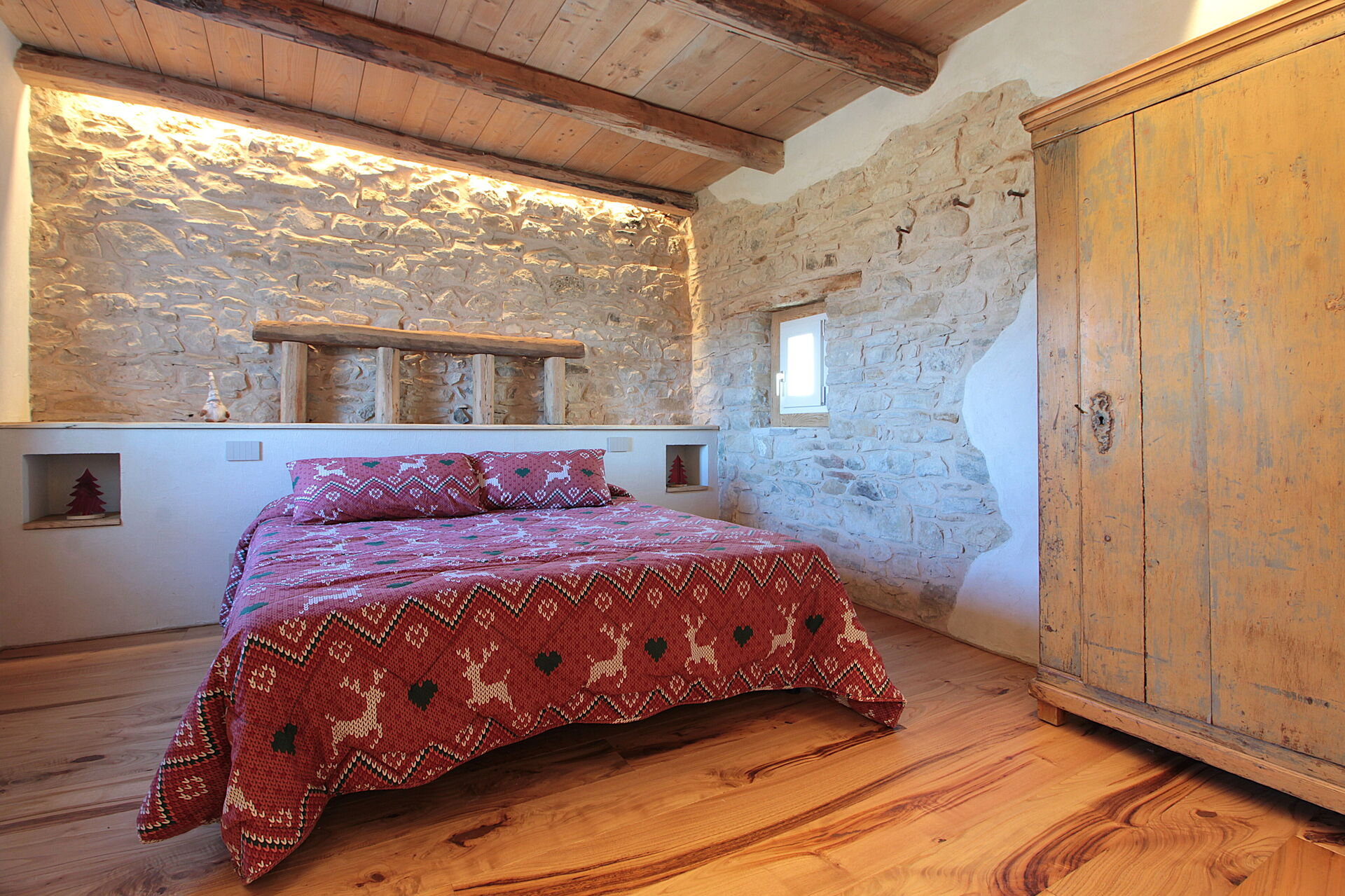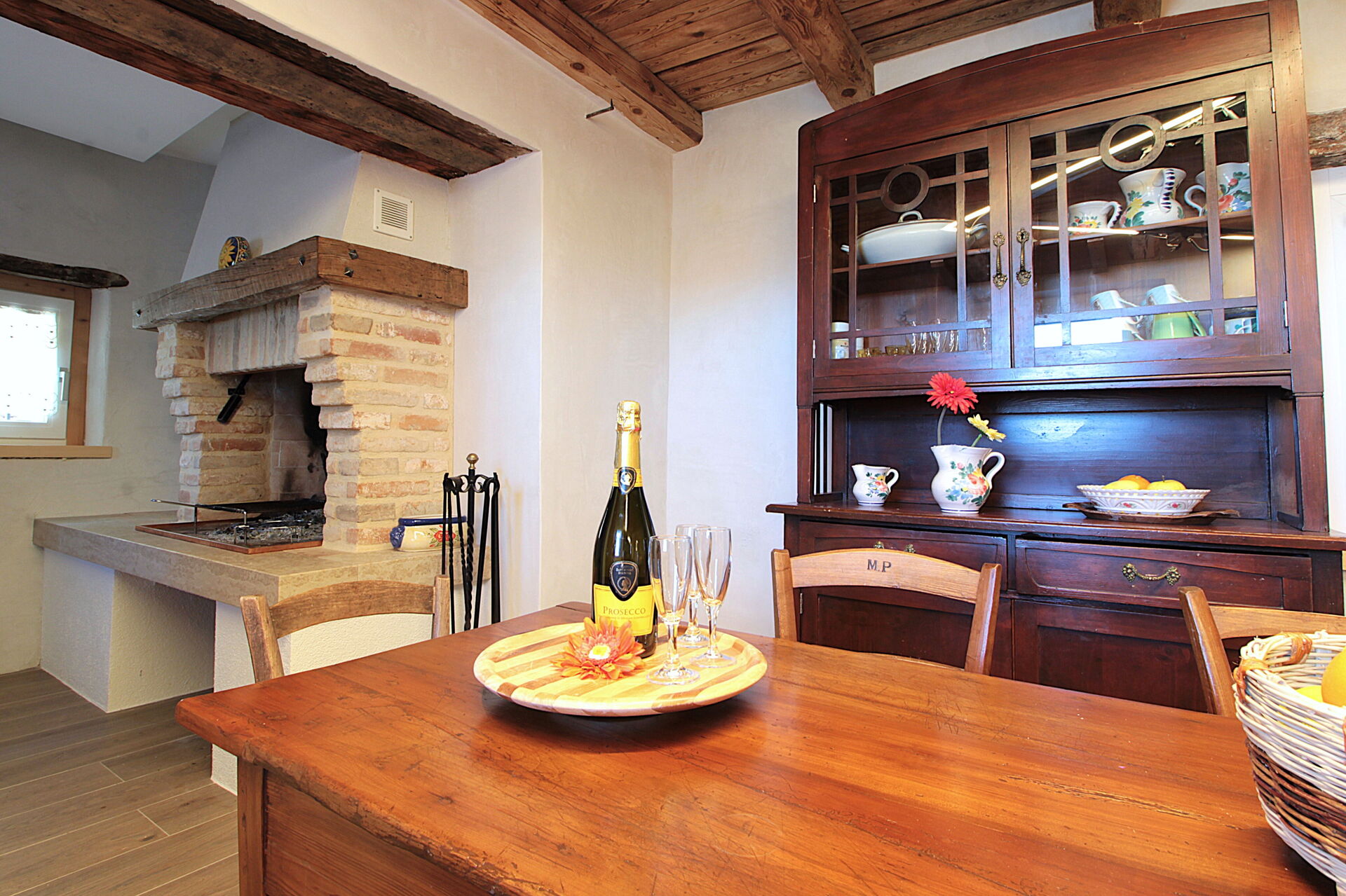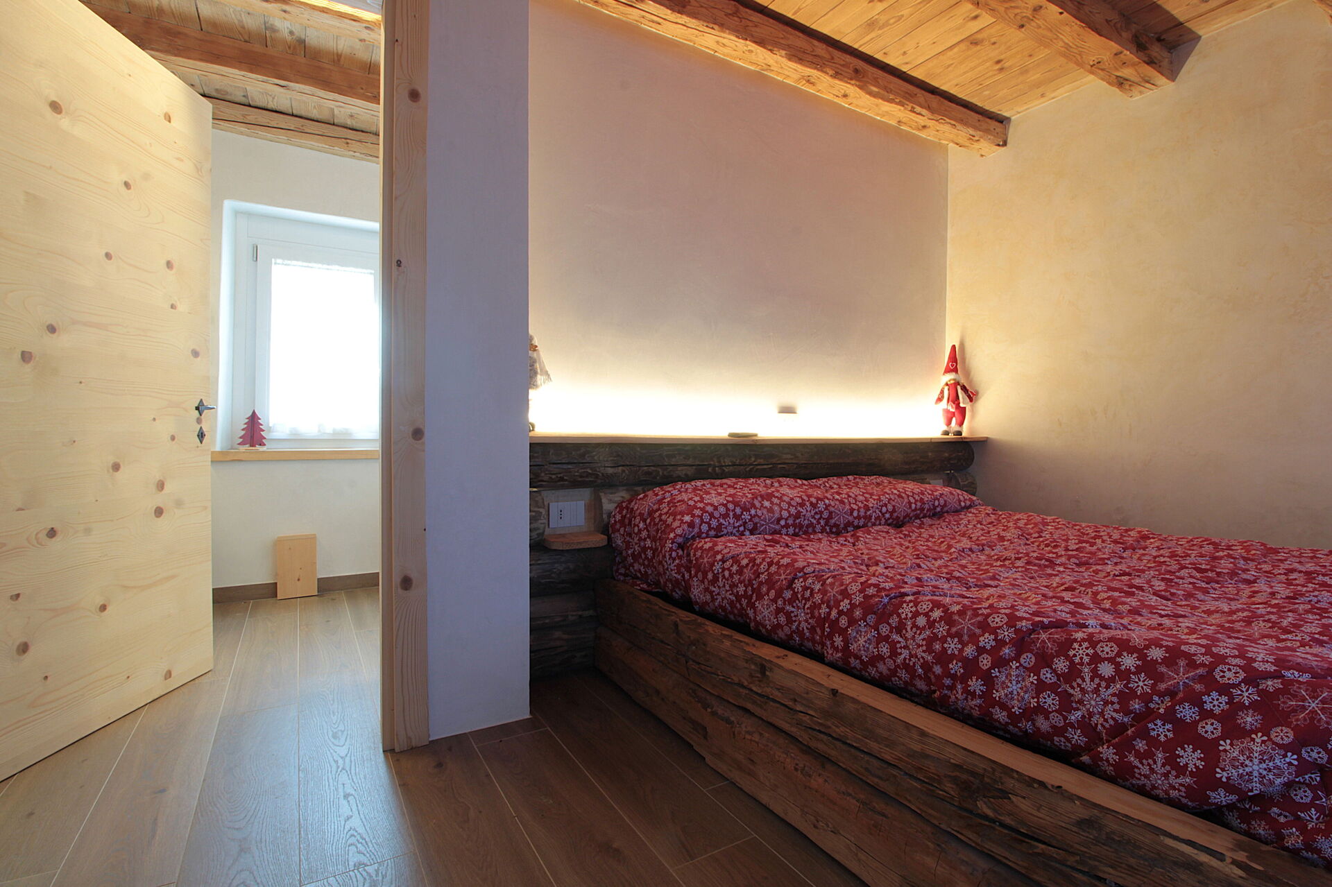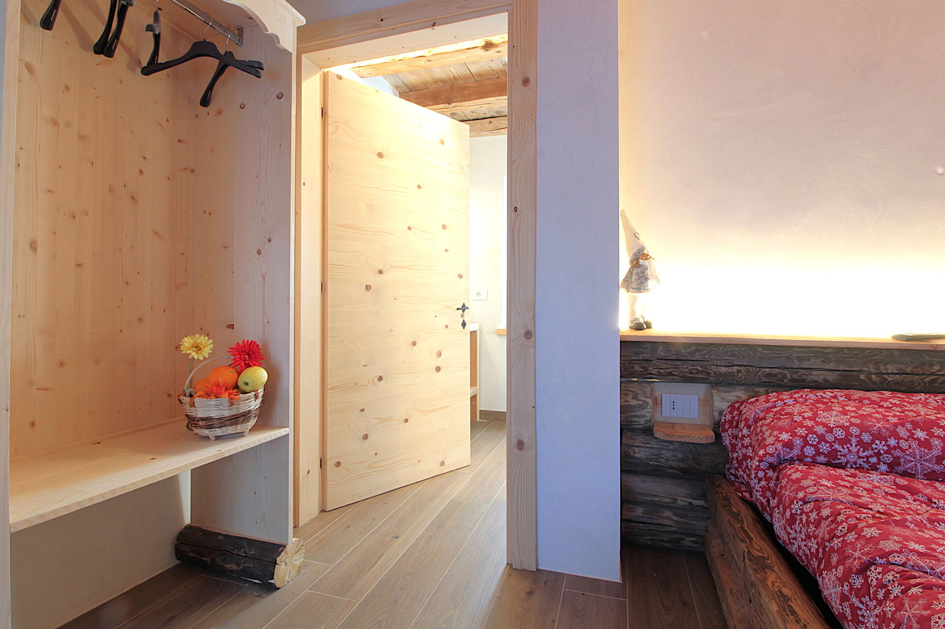 - la cucina , la sala da pranzo con una seconda cucina a il larin (un focolare attorno al quale sedersi e raccontarsi la giornata), un bagno con doccia e una camera da letto matrimoniale.