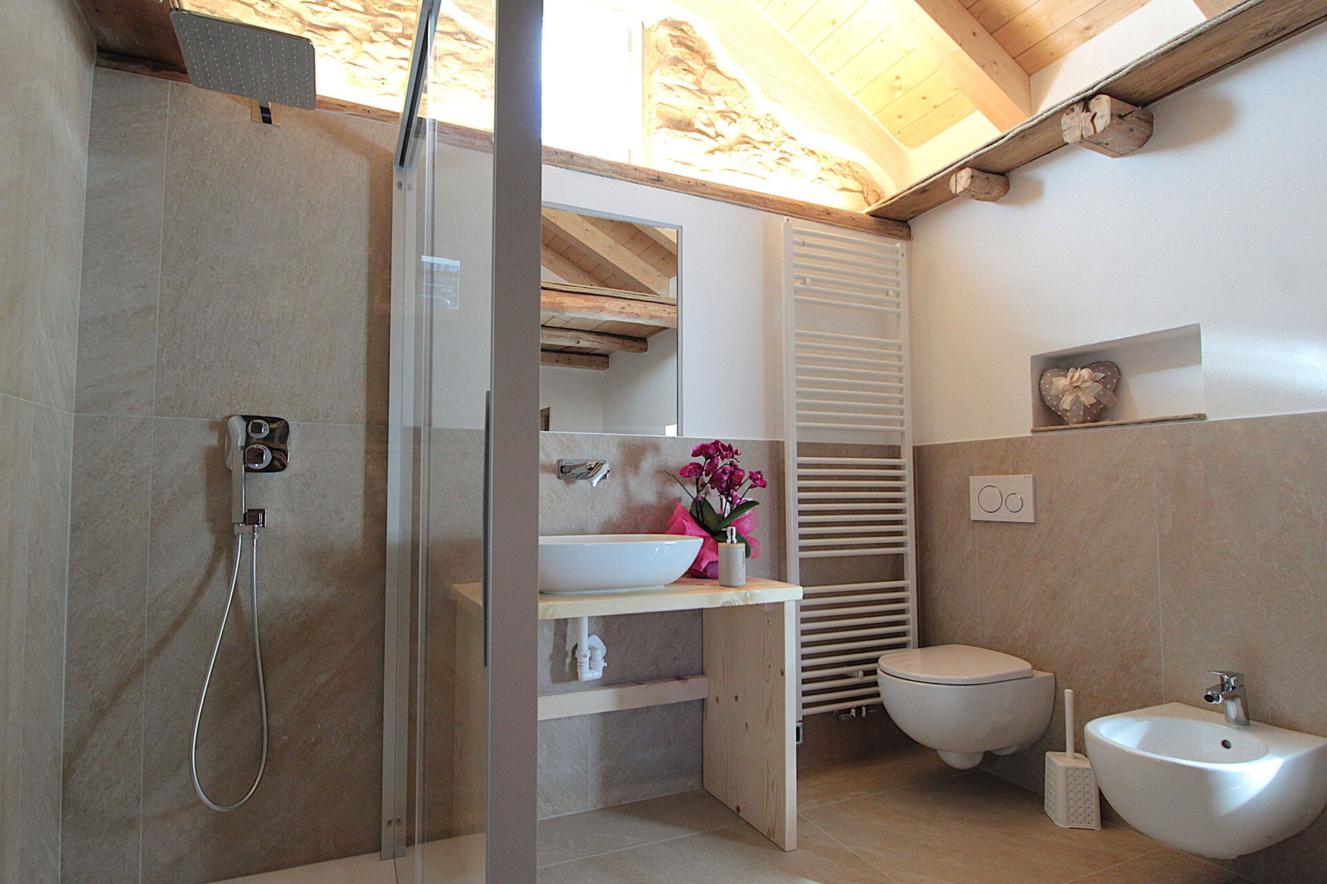 - sul pianerottolo si incontra il secondo spazioso bagno con doccia e sauna ad infrarossi
