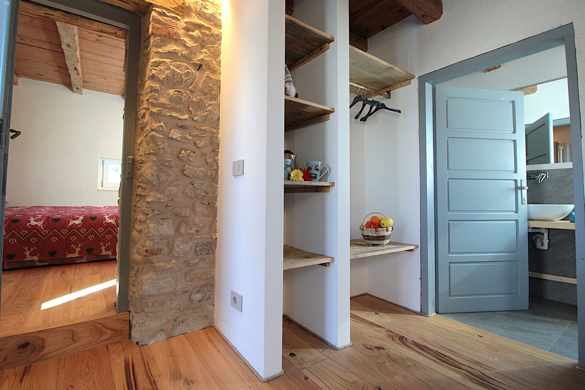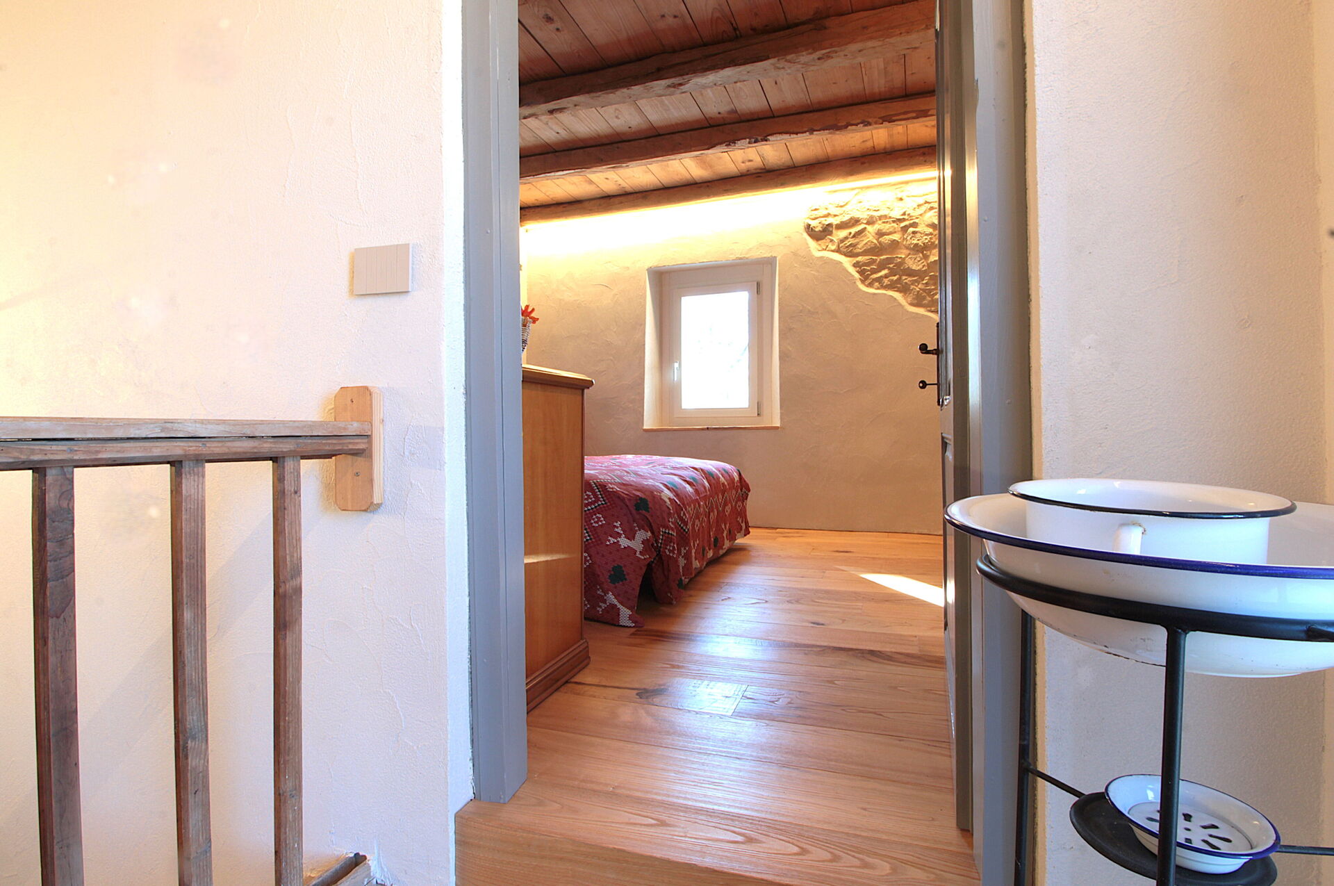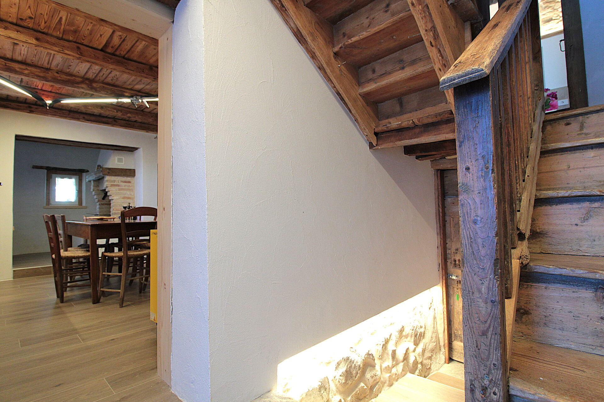La casa si sviluppa su due piani collegati fra loro da una scala di legno.