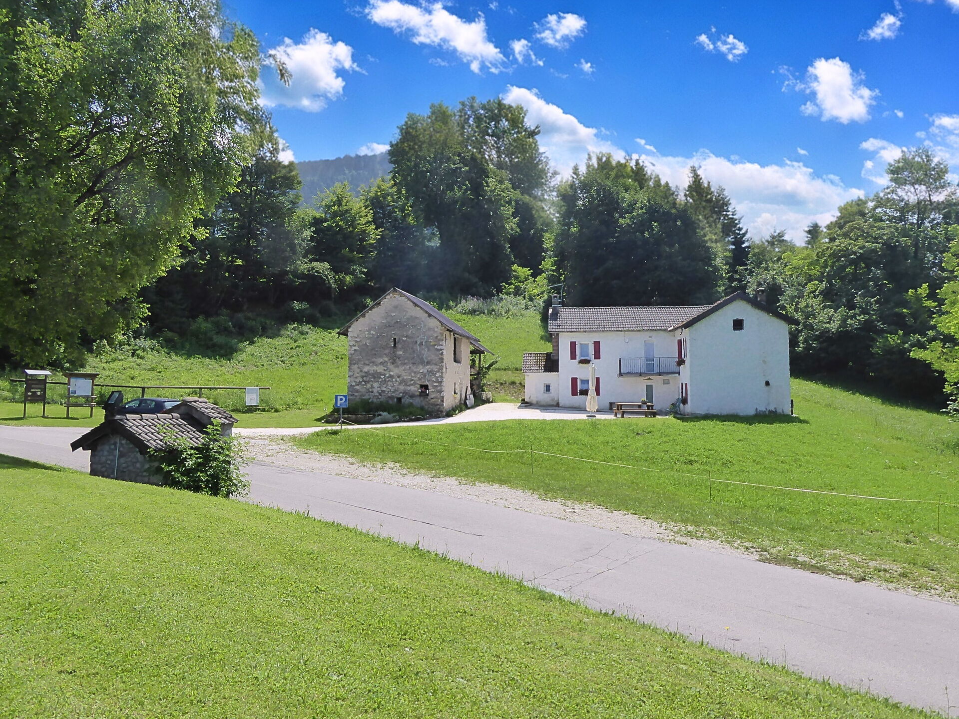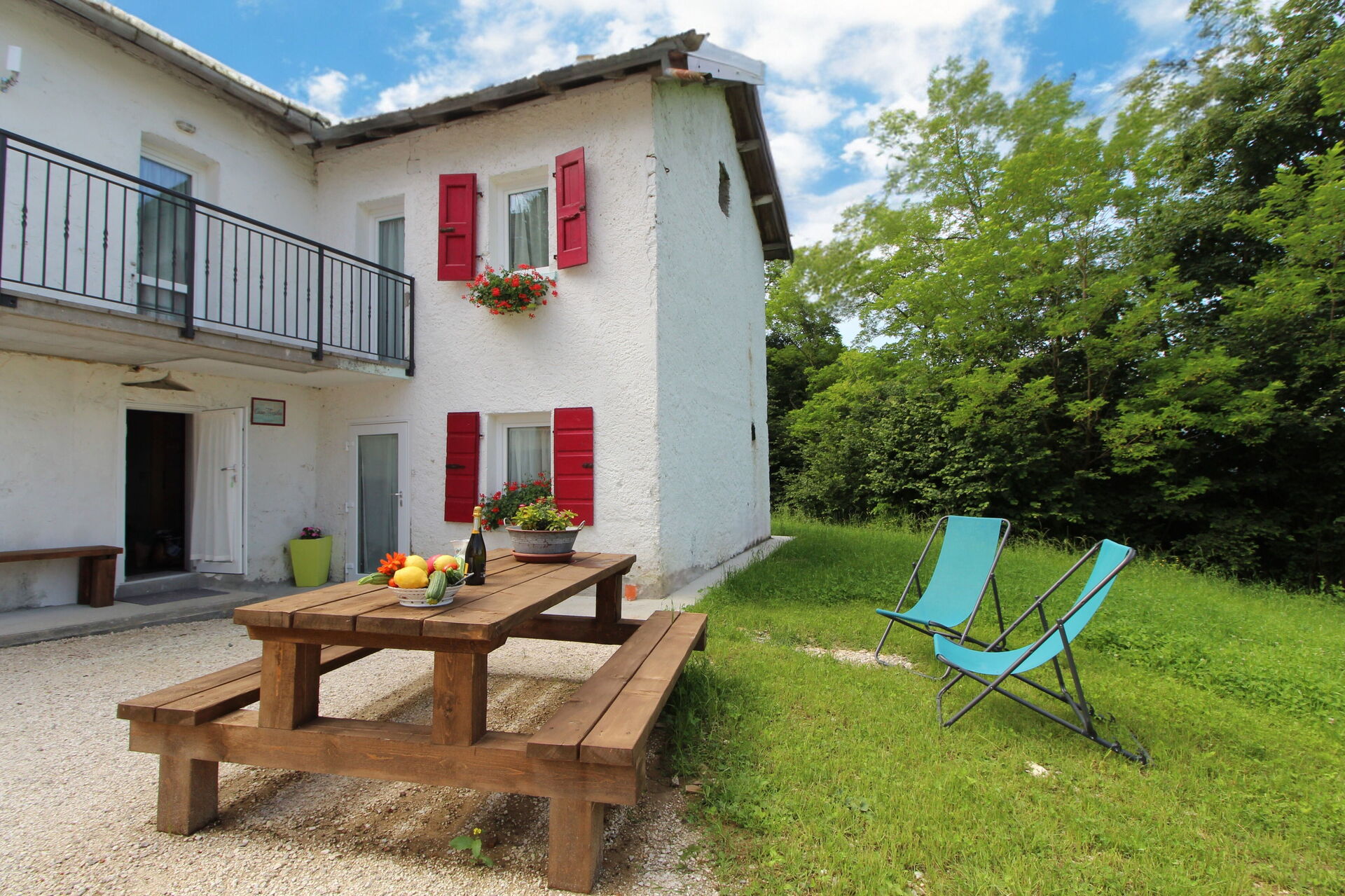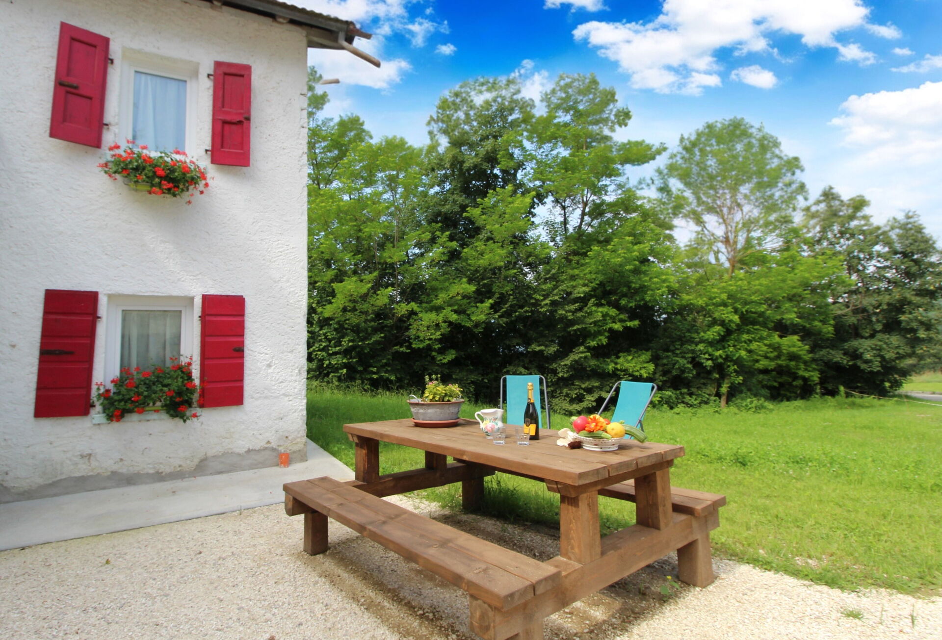 Nel giardino, dedicato solo agli ospiti, un bel tavolo attorno al quale cenare. E, quando dovesse mancare la voglia di cucinare, basta attraversare la strada per assaporare una delle specialità del rifugio.