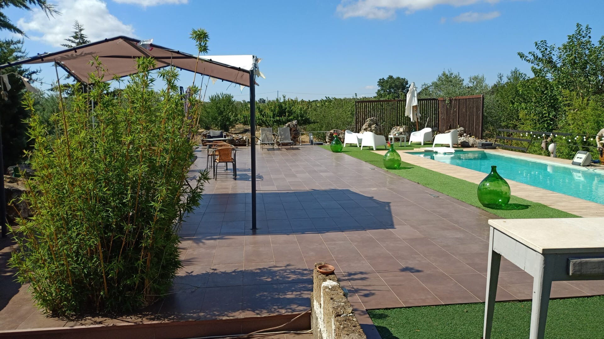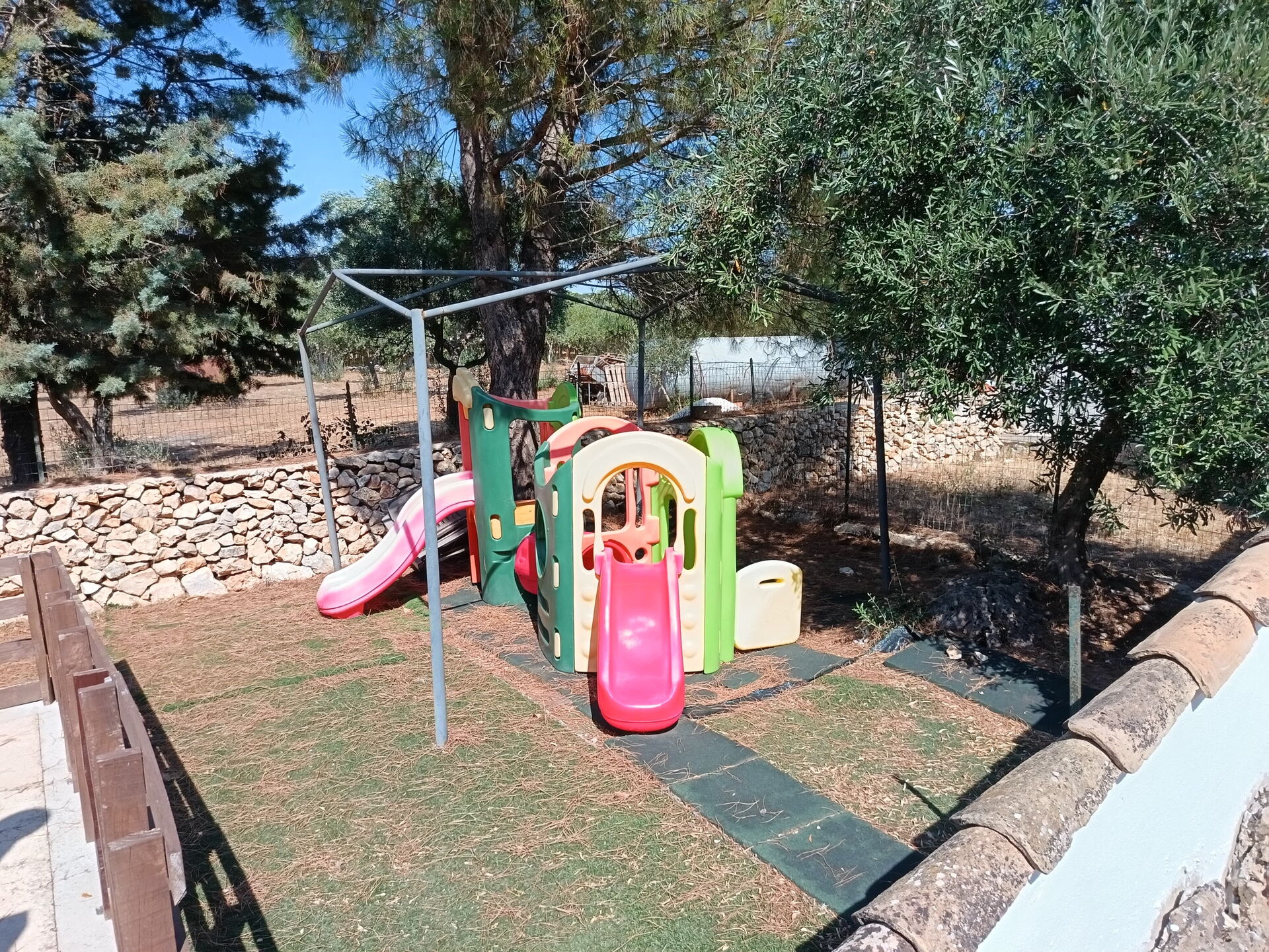 Surrounded by greenery, this house is the ideal place for those looking to unwind and recharge away from the hustle and bustle of everyday life. The large outdoor spaces offer everything you need to play, dine al fresco, or simply relax in the sun.