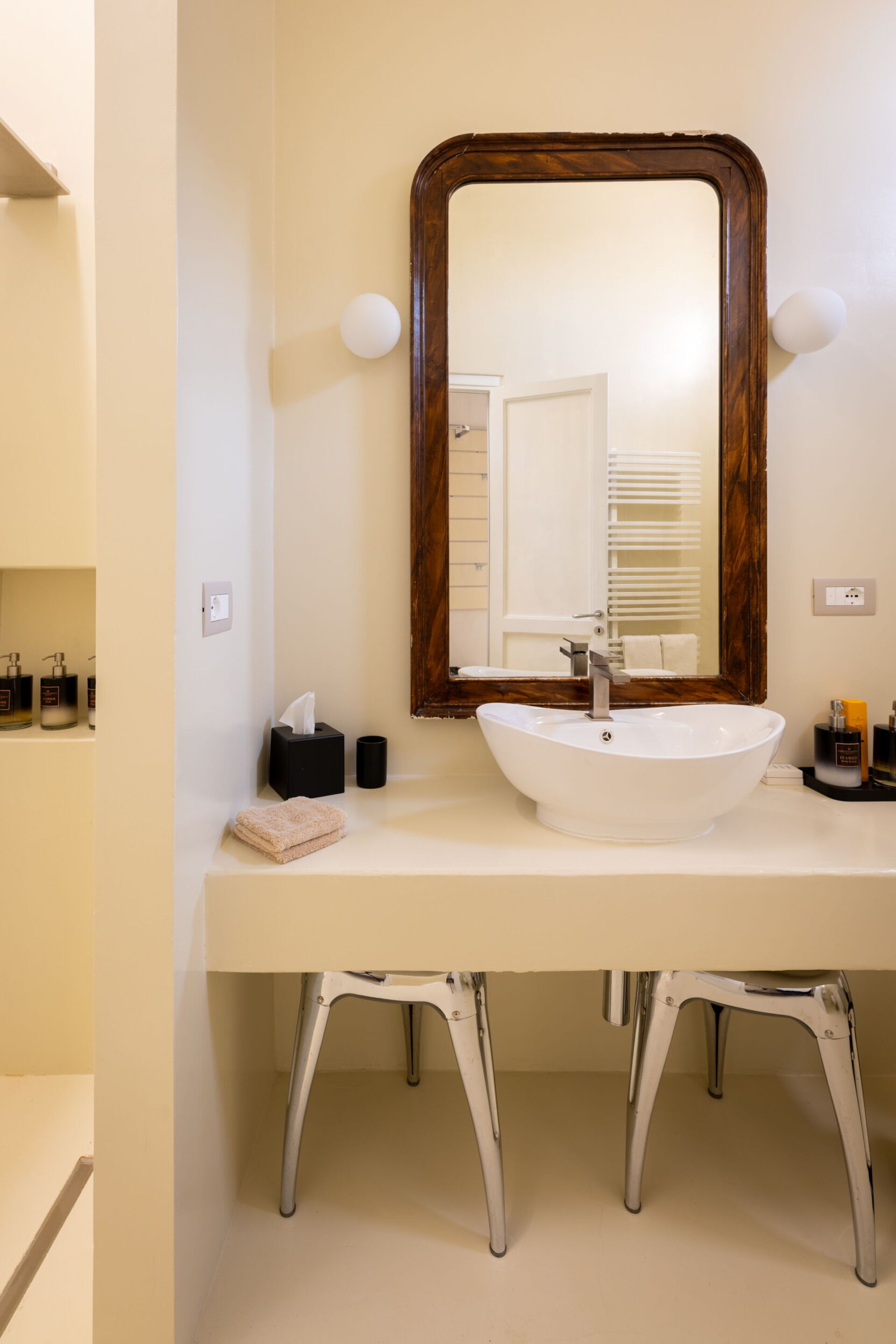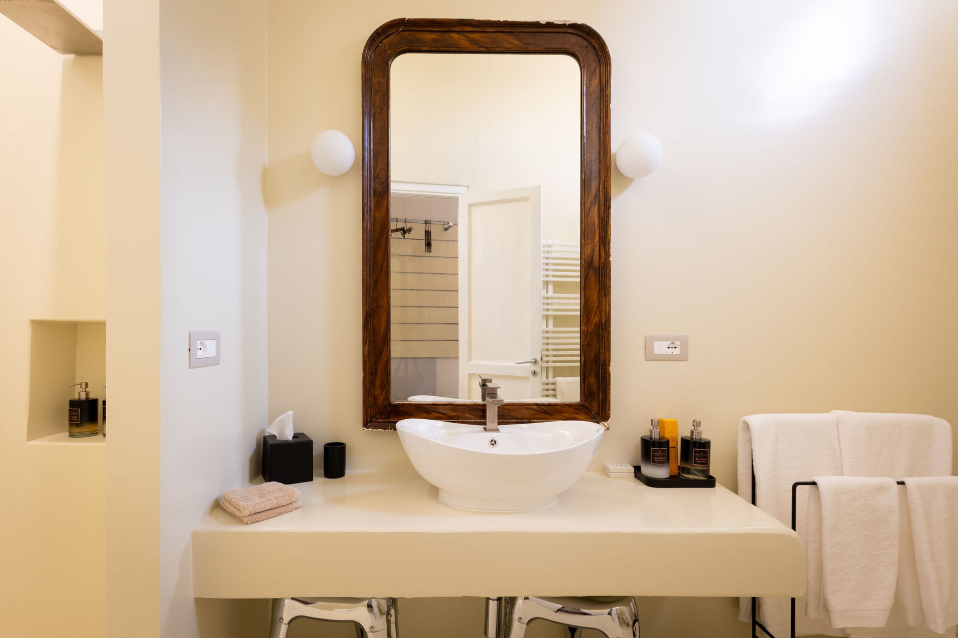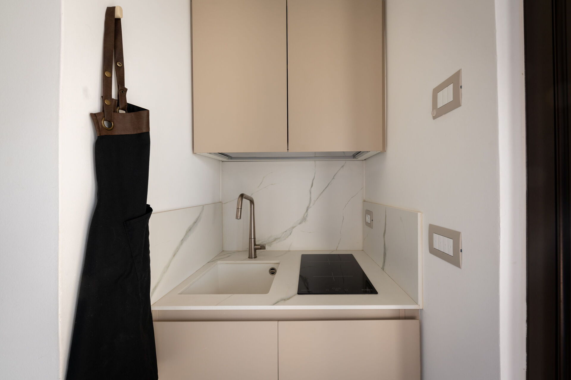 Casa Corte has a bedroom, an elegant bathroom, a small living area, and a kitchenette equipped with a cooktop, sink, refrigerator, and microwave, as well as a toaster, kettle, and Nespresso coffee machine.