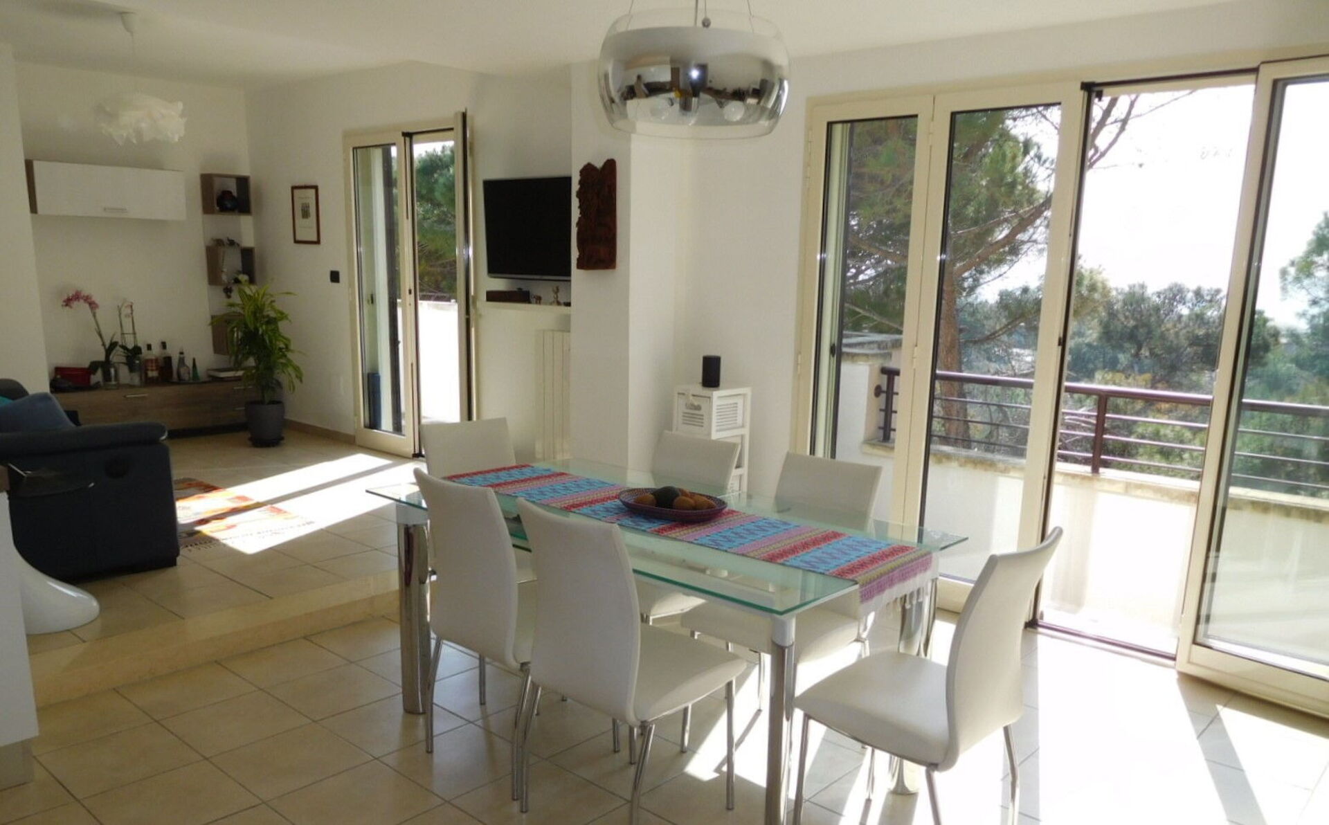 The highlight of this property is its two level terraces, totaling over 250 square meters, one of which is equipped with a solarium and barbecue, offering a magnificent sea view.