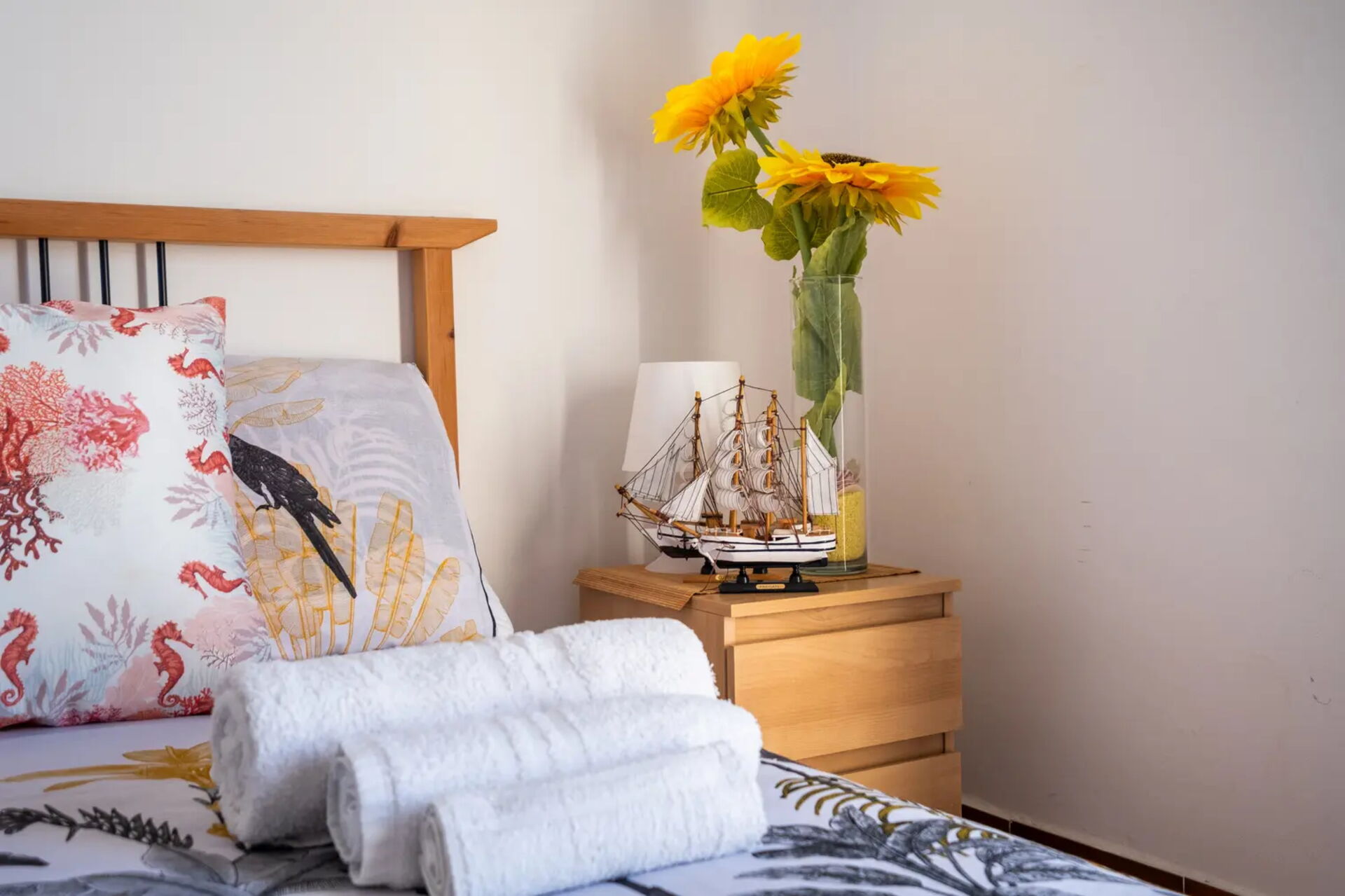 The villa has a livable living room with dining area, sofa bed and TV area; kitchen area with kitchenette, 3 double bedrooms, a private bathroom and a terrace with sea view.