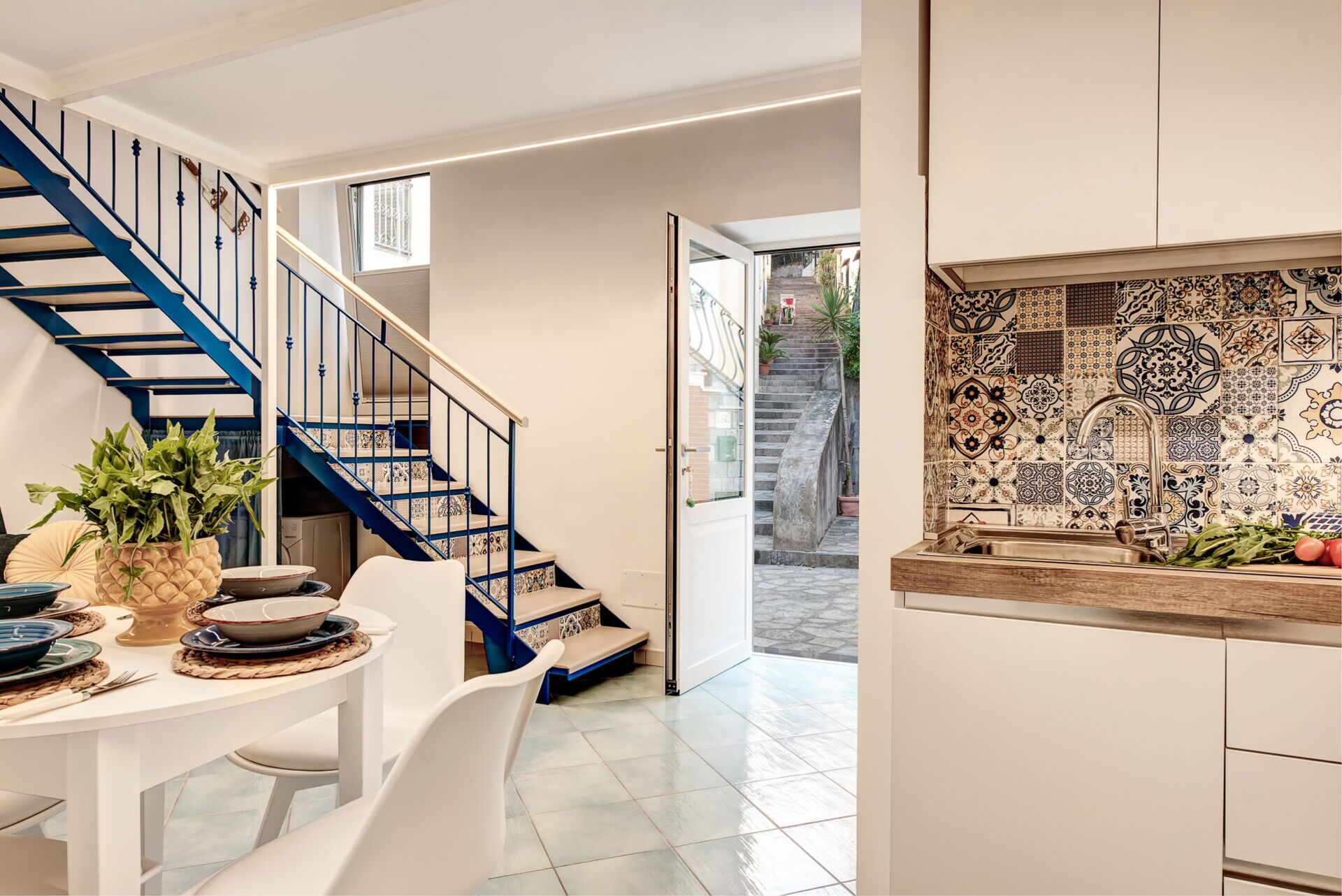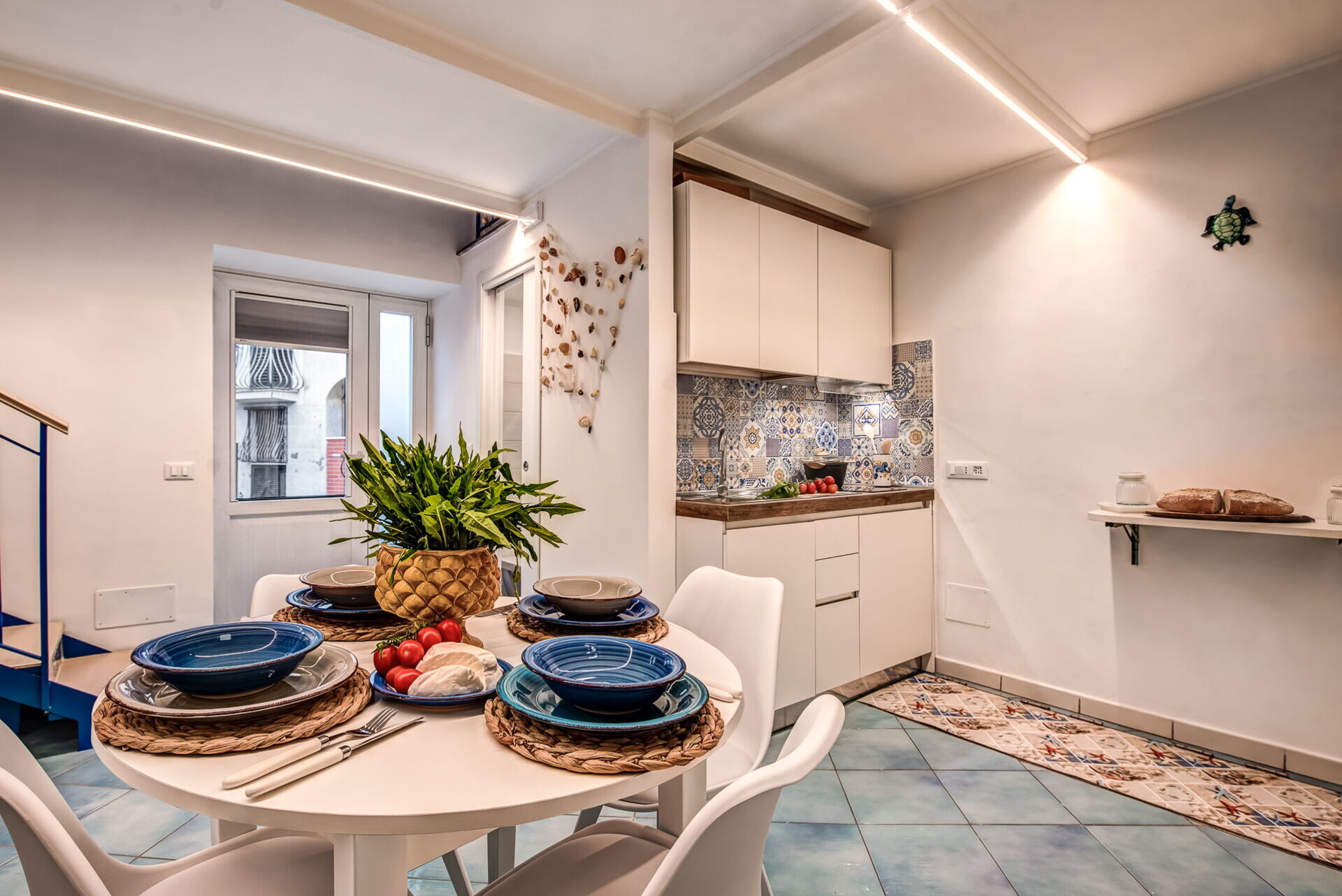 Elegant Mediterranean-style décor, with majolica and tiles that recall the colours of the ocean.