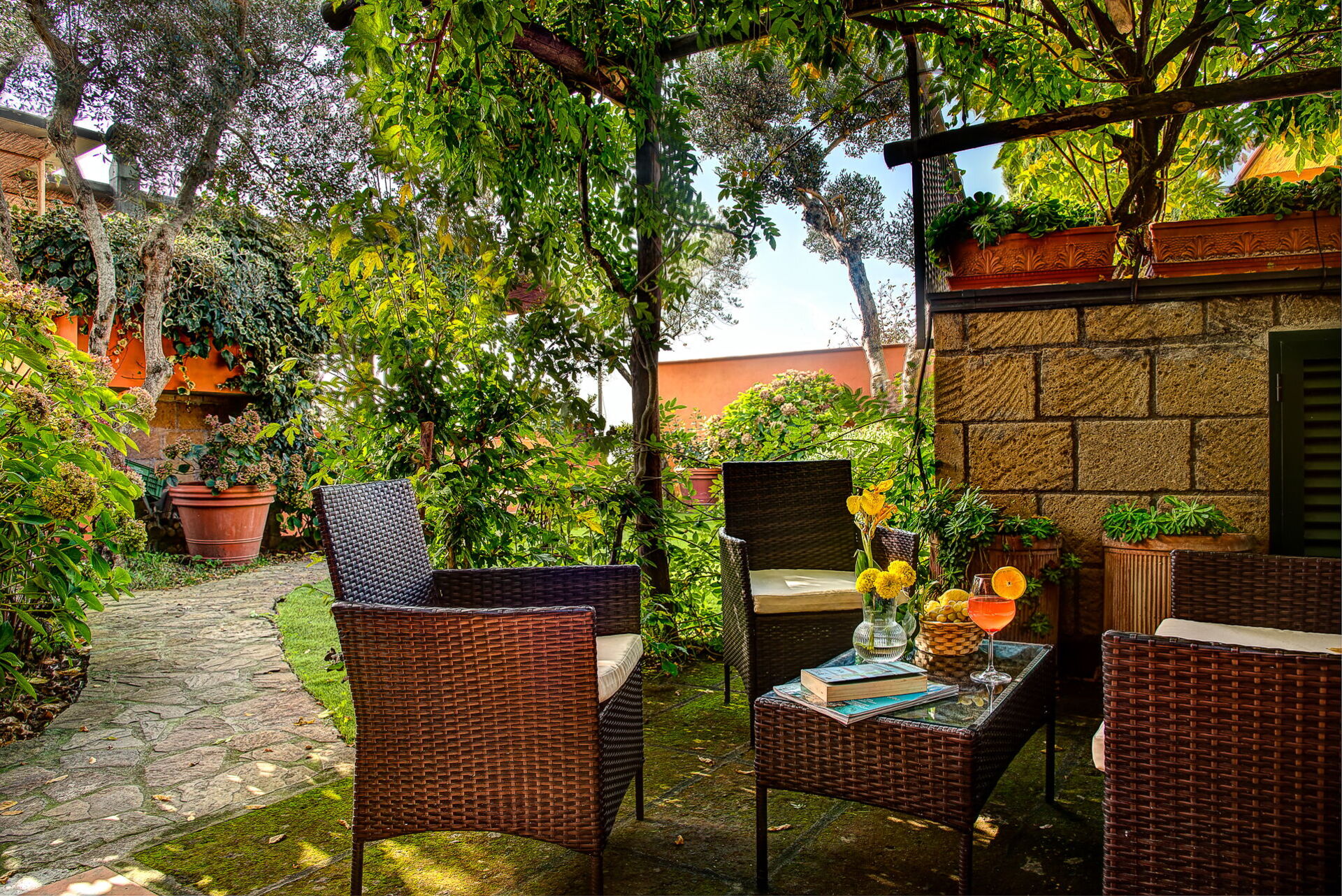 The perfect base from which to explore the natural and historical treasures of the Sorrento and Amalfi coasts, with the historic centre of Sorrento (10 km), Positano (15 km), Amalfi (30 km), Ravello (35 km), Pompeii (30 km) and Naples (60 km) within easy reach of the villa. Day trips to the island of Capri depart from the nearby marina and fishing village of Marina del Cantone.