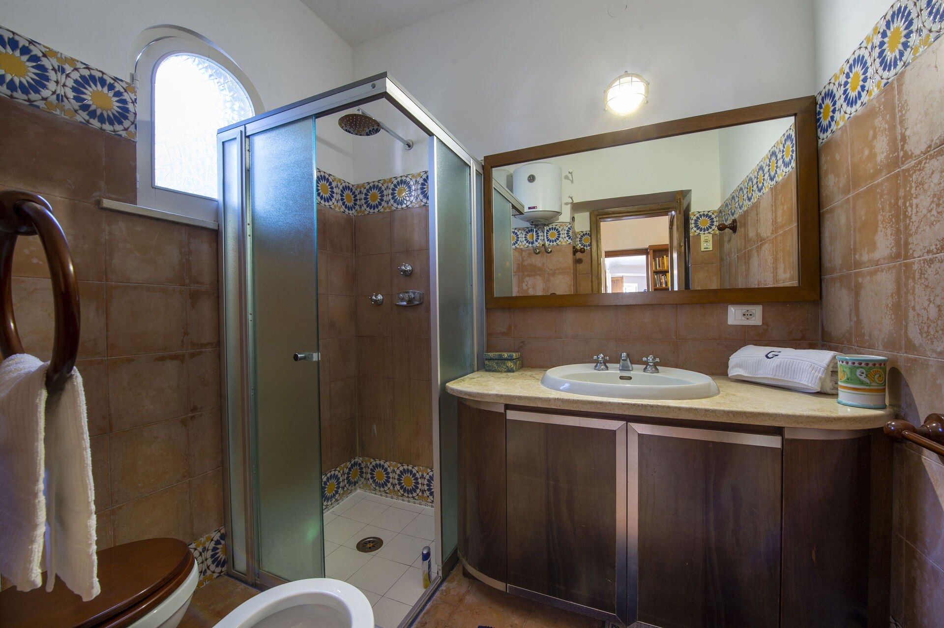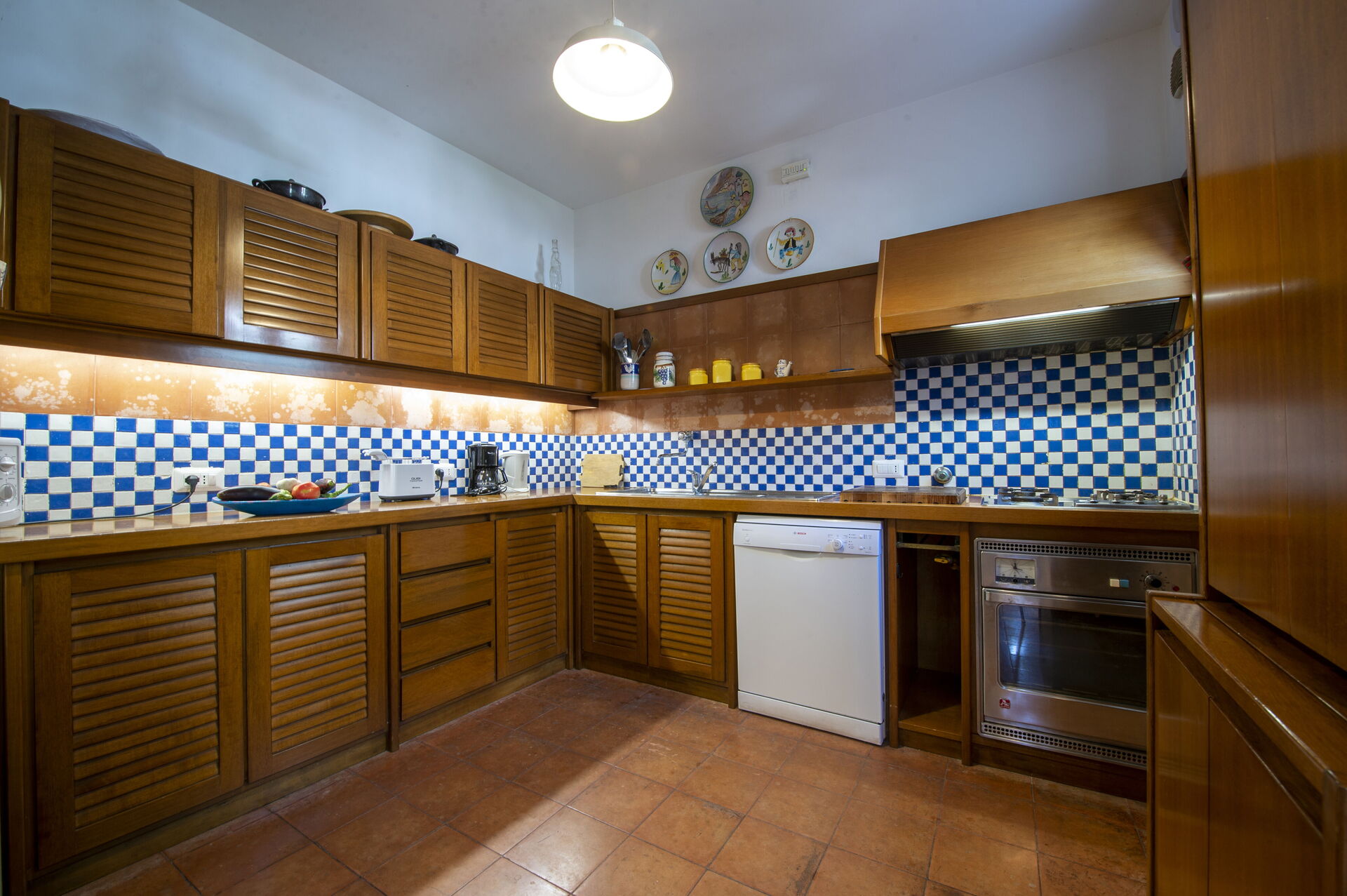 The ground floor overlooks the terrace and the garden and consists of a large kitchen equipped with all the comforts from the coffee machine to the microwave oven; adjacent to the kitchen there is a small laundry room where the washing machine, the iron and the ironing board are located. Separated by a small hallway, there is the large living room with dining room, finely furnished embellished with a fireplace decorated with ancient majolica with direct access to the terrace and the garden; there is a double bedroom also with direct access to the garden and an en suite bathroom.
