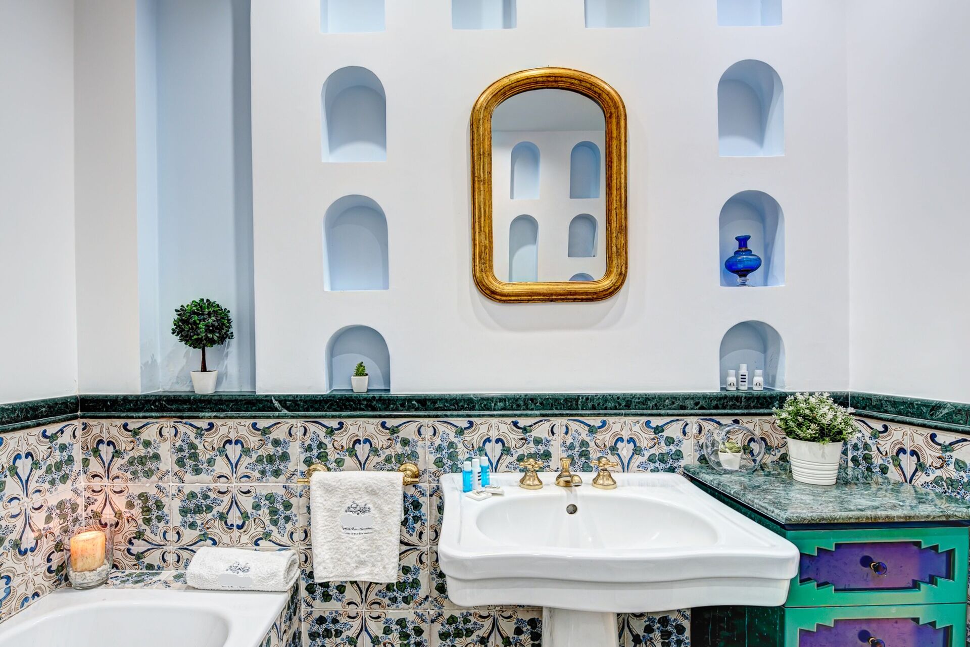The bathroom is furnished with signature ceramic tiles of the Amalfi coast dating back to the 7th Century and features a bathtub with shower over, washbasin, bidet and toilet. There is also a separate shower located in the utility room adjacent to the kitchen.