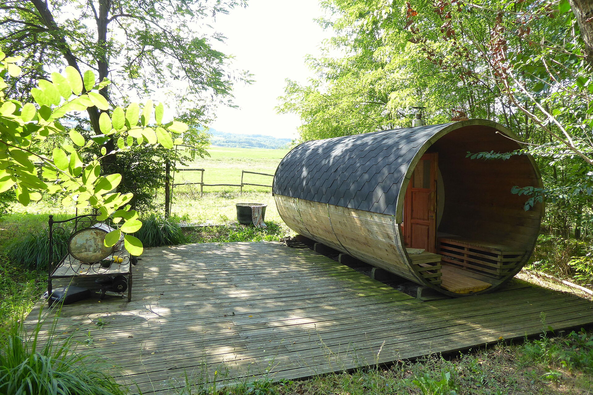 The pool and sauna have been built in the same style as the house, blending harmoniously with the surrounding natural environment. The large covered area next to the pool, furnished with sofas and tables, will be your favorite spot to spend long summer days in perfect relaxation.