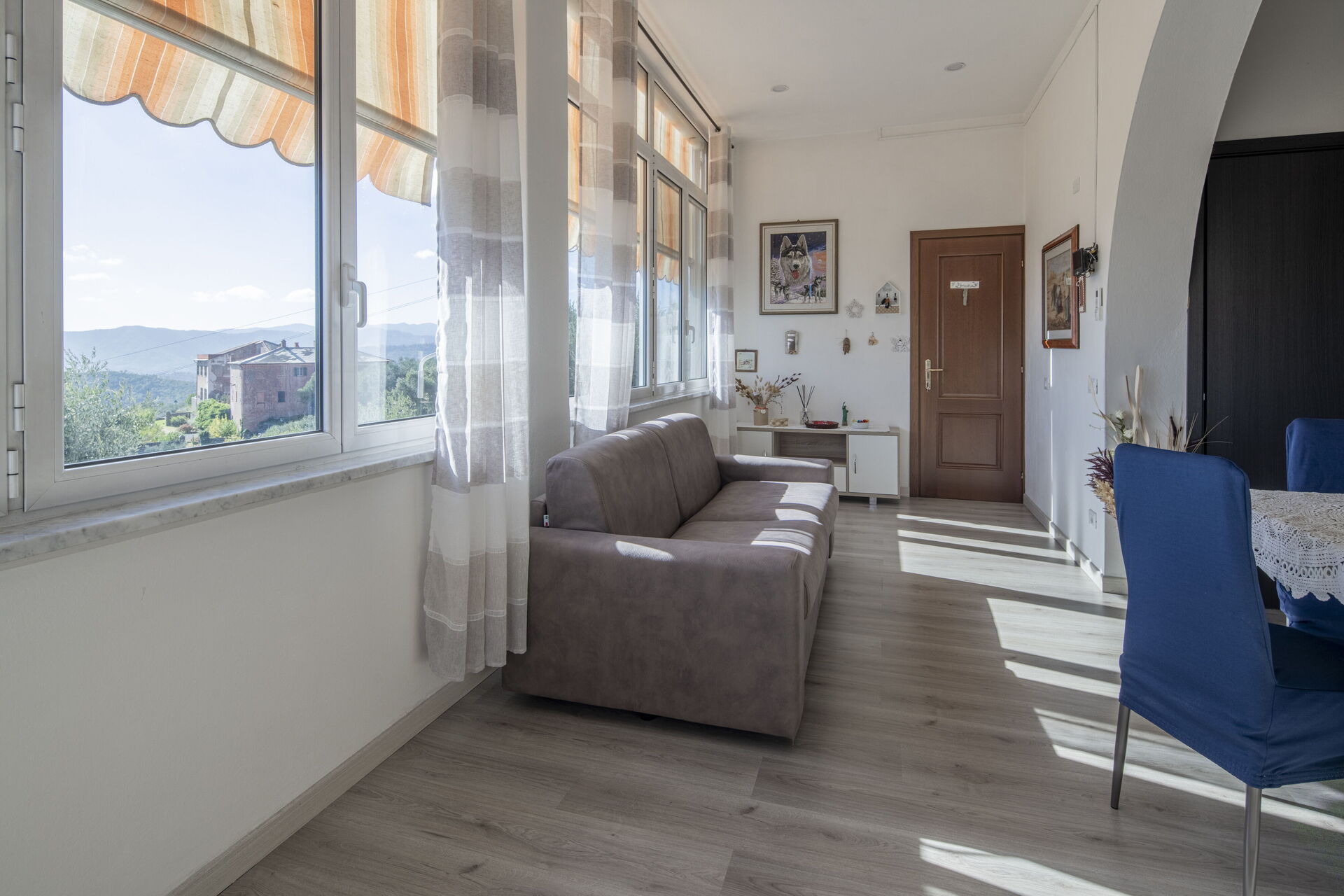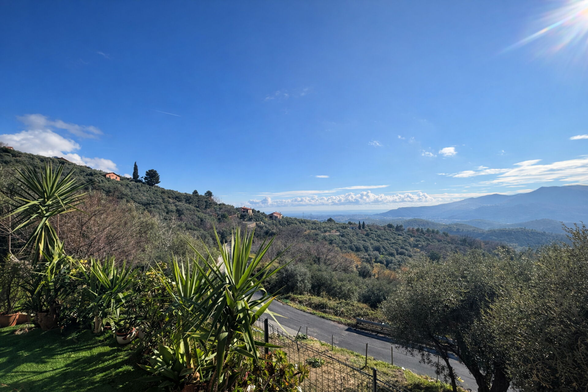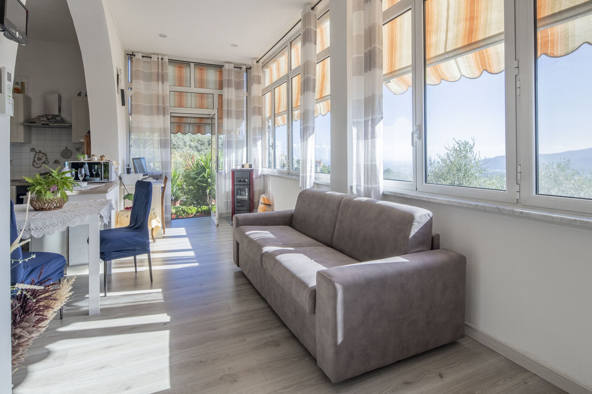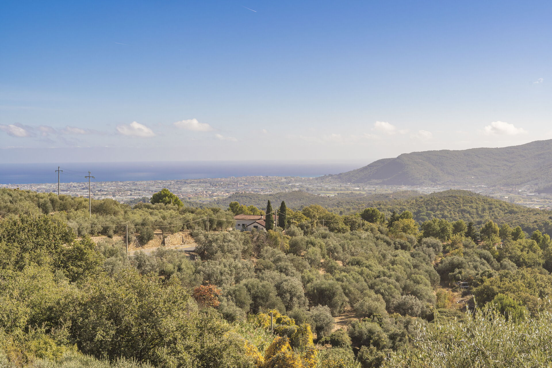 Raised ground floor apartment with private 30-square-meter terrace/garden and sea view, surrounded by the greenery and peace of the Ligurian countryside, just 15 minutes by car from the beaches and the centres of Alassio and Albenga.