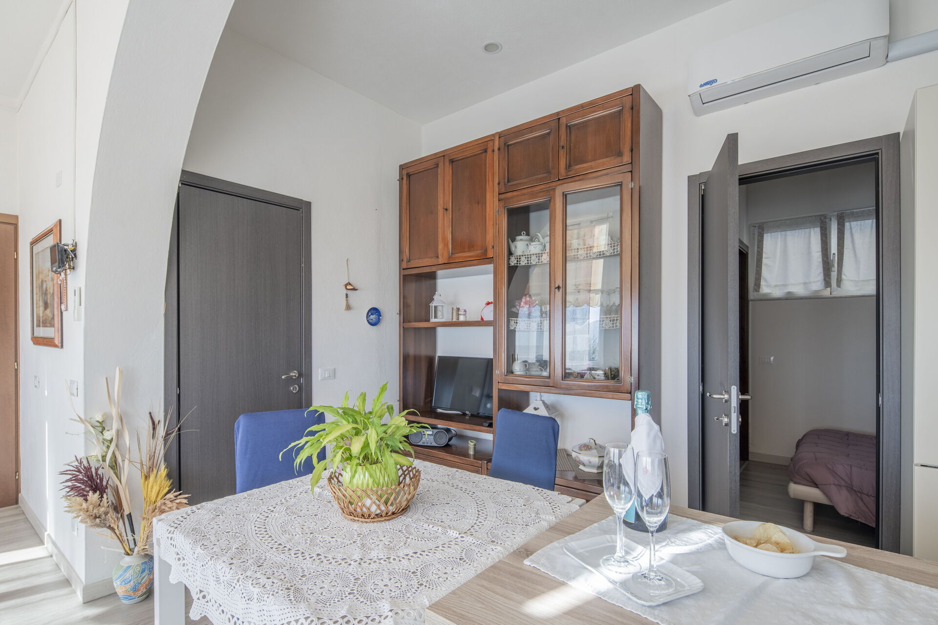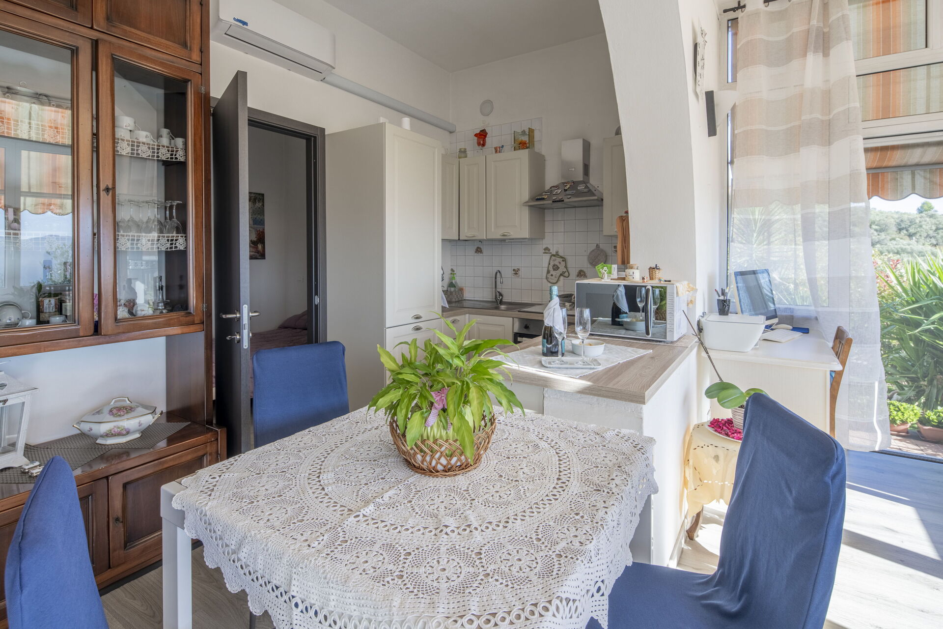 Air Conditioning, Well Equipped Kitchen, Iron, Oven, Freezer, Fridge, Italian Coffee Machine, American Coffee Machine, Microwave, Dining Table, Television, Toaster, Exit to the garden, Mosquito Net, Sofa Bed Double