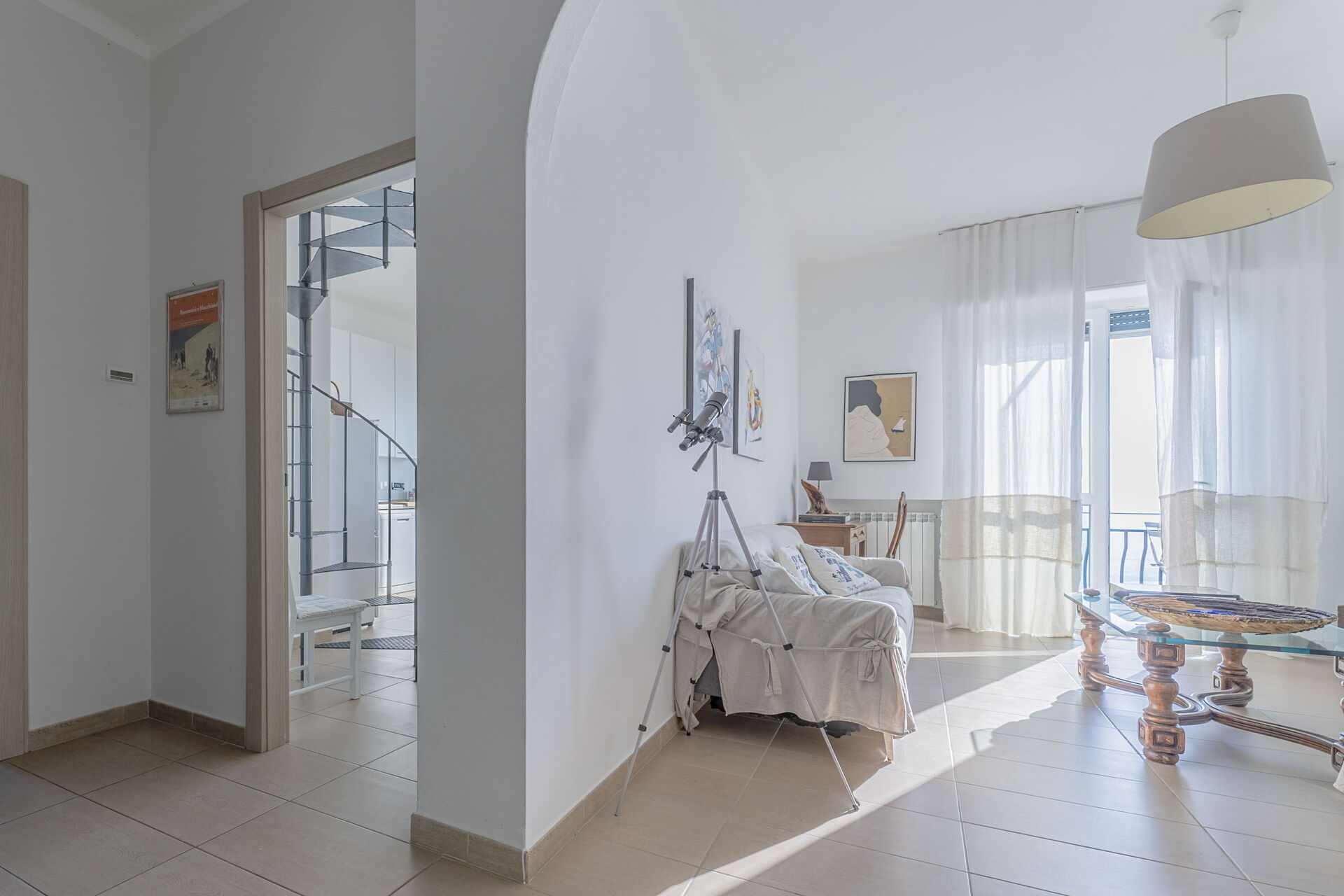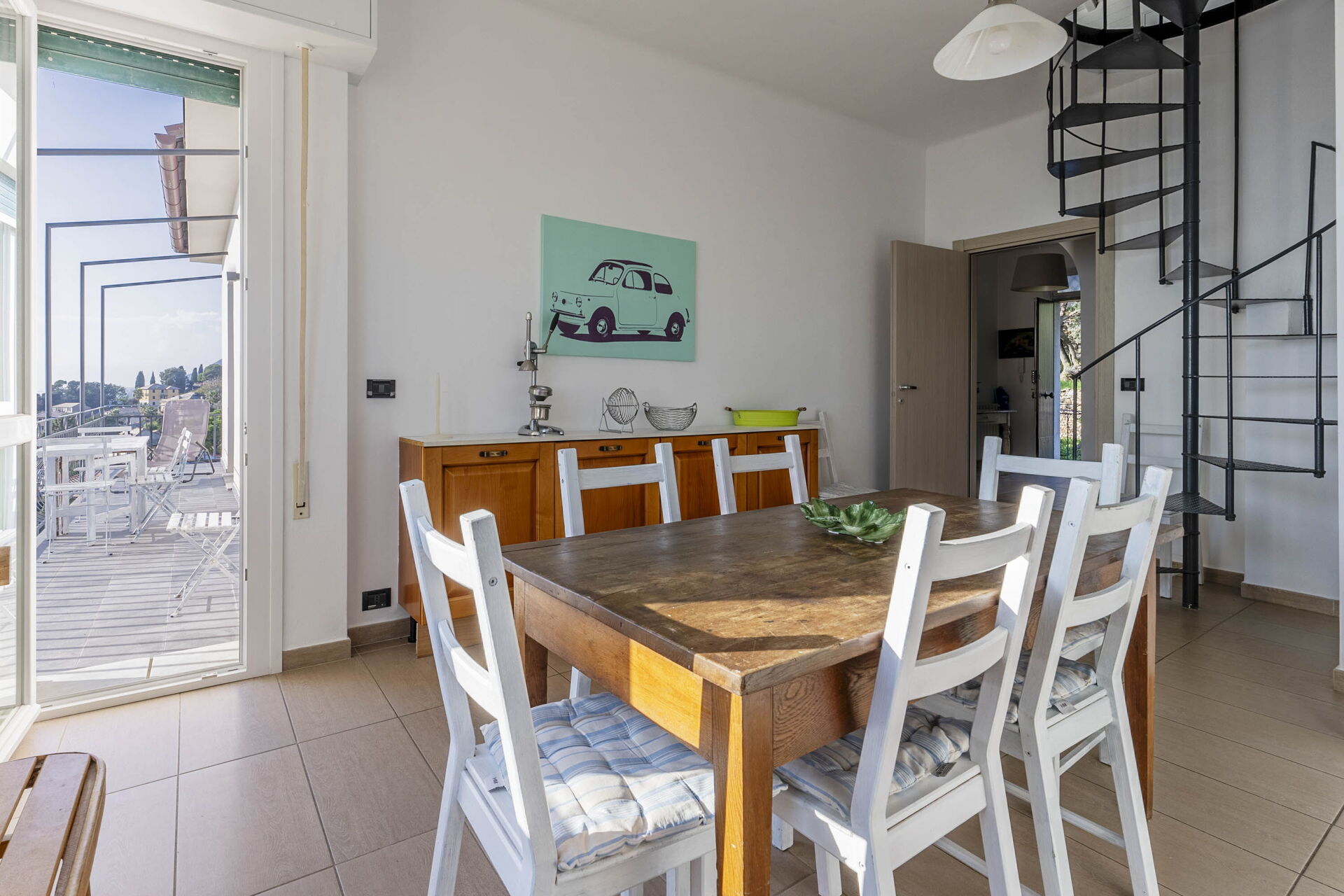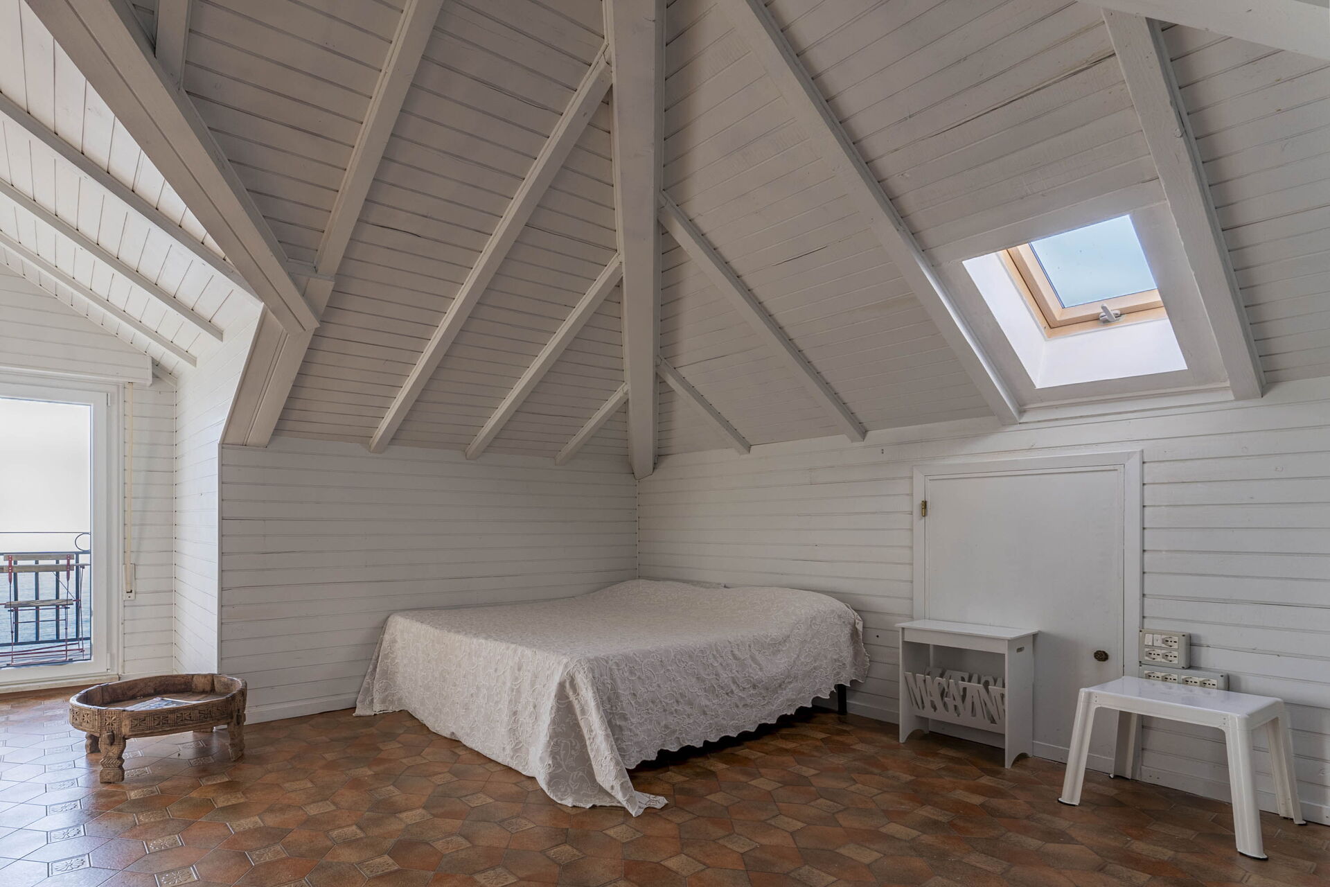 In the kitchen there is a spiral staircase leading to open space: attic with double bed and small terrace with sea view.