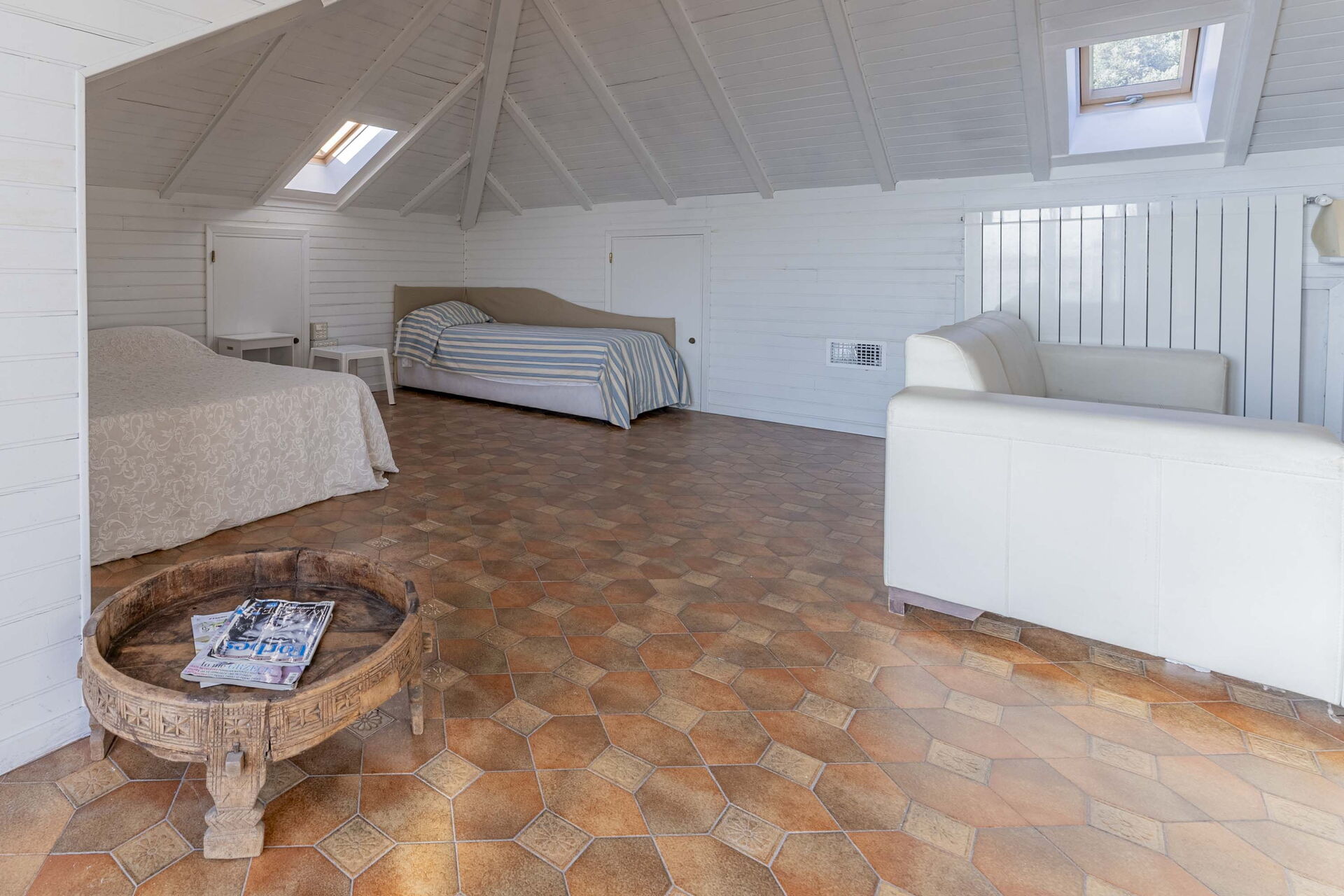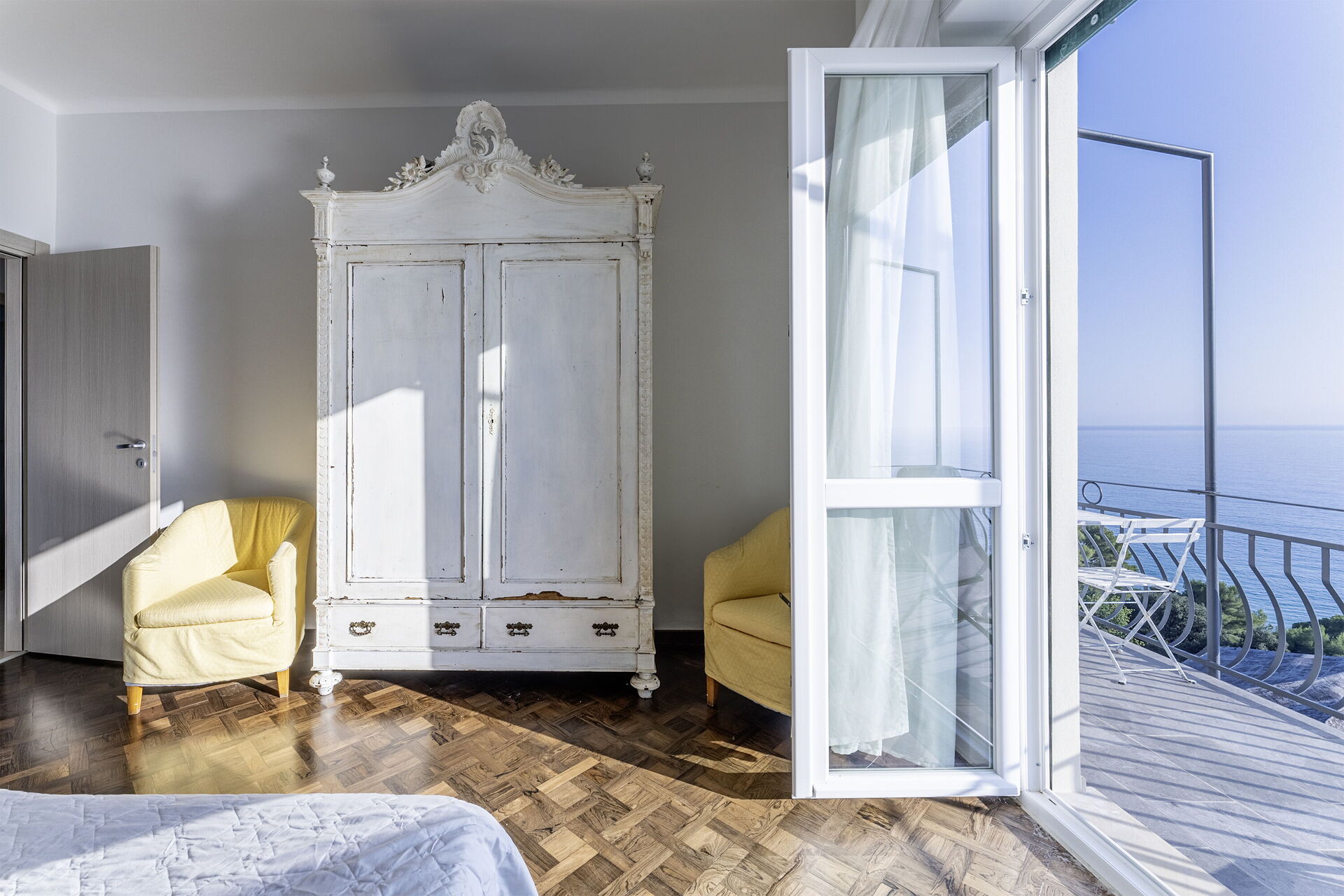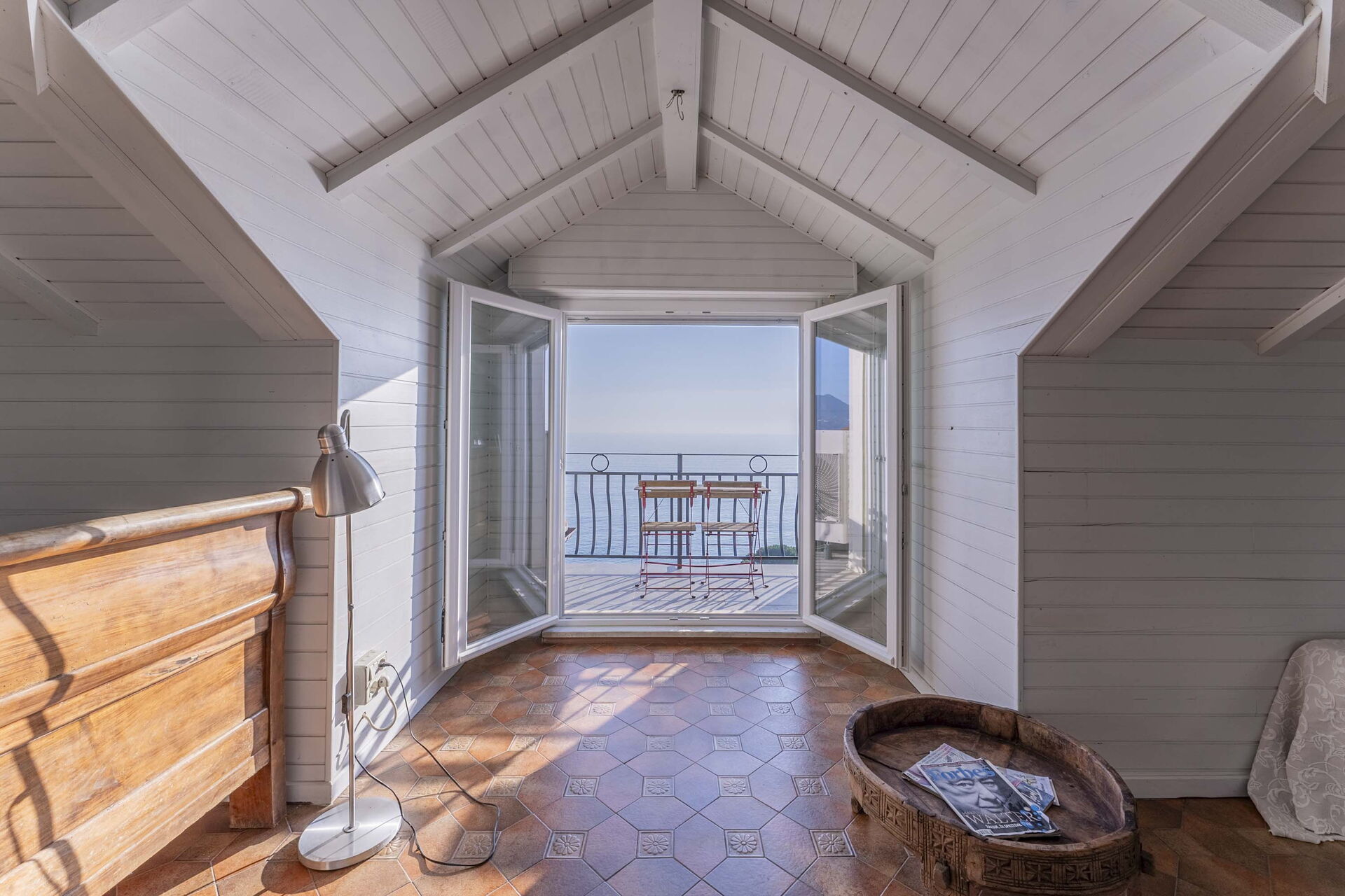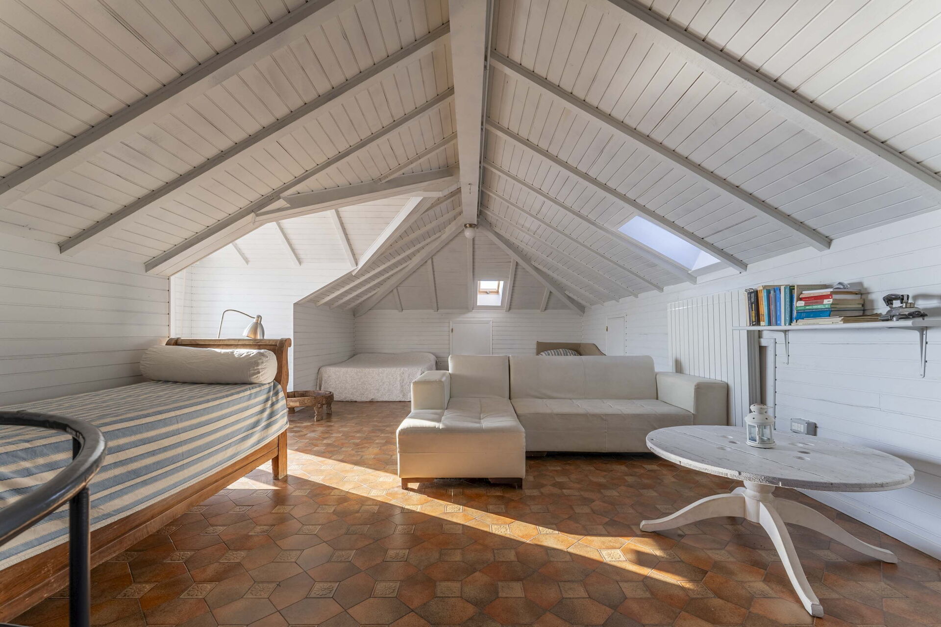 In the kitchen there is a spiral staircase leading to open space: attic with double bed and small terrace with sea view.