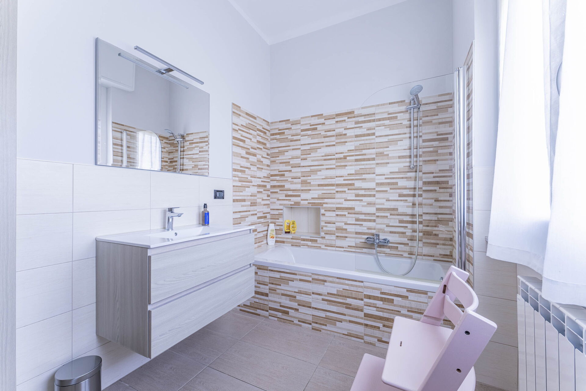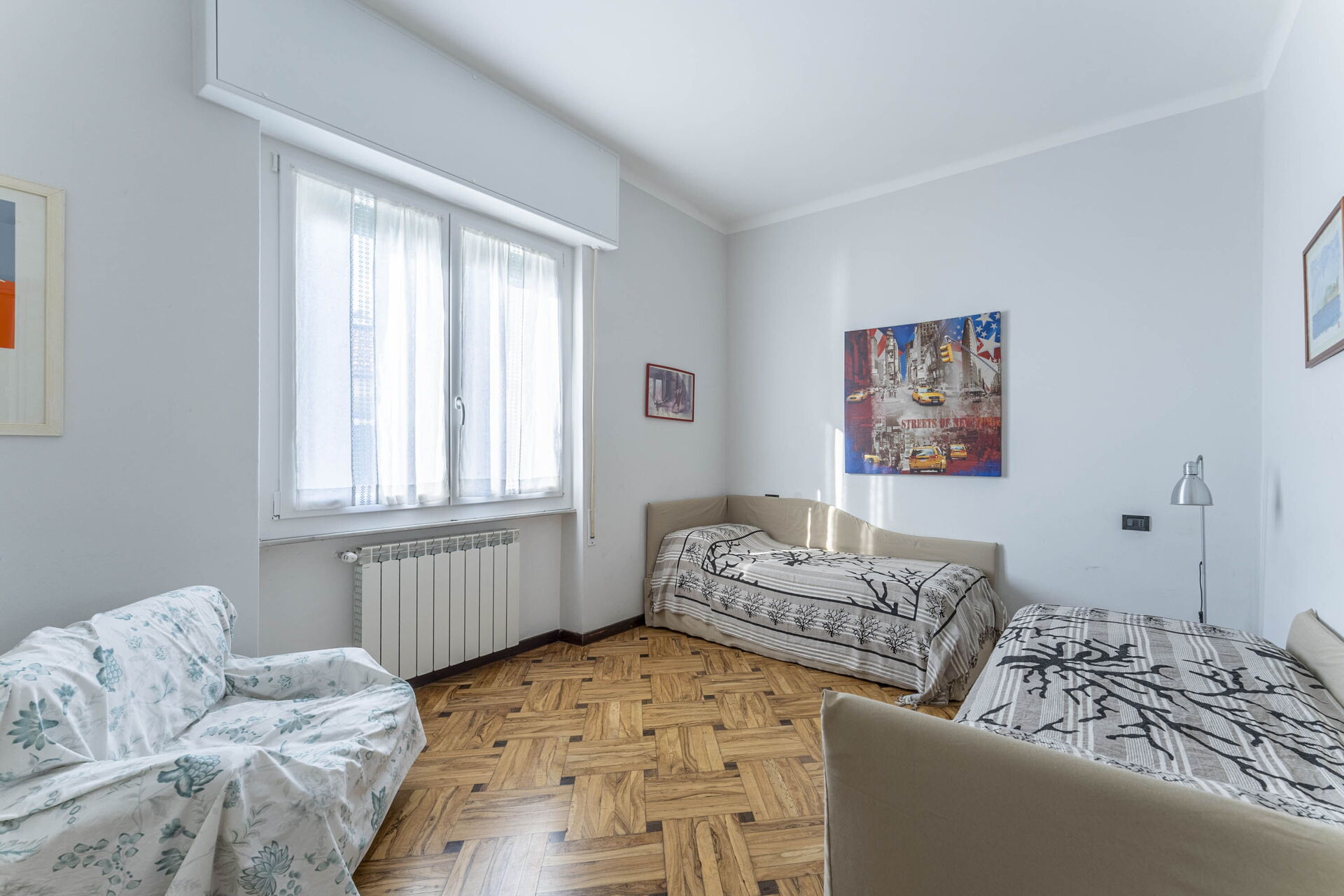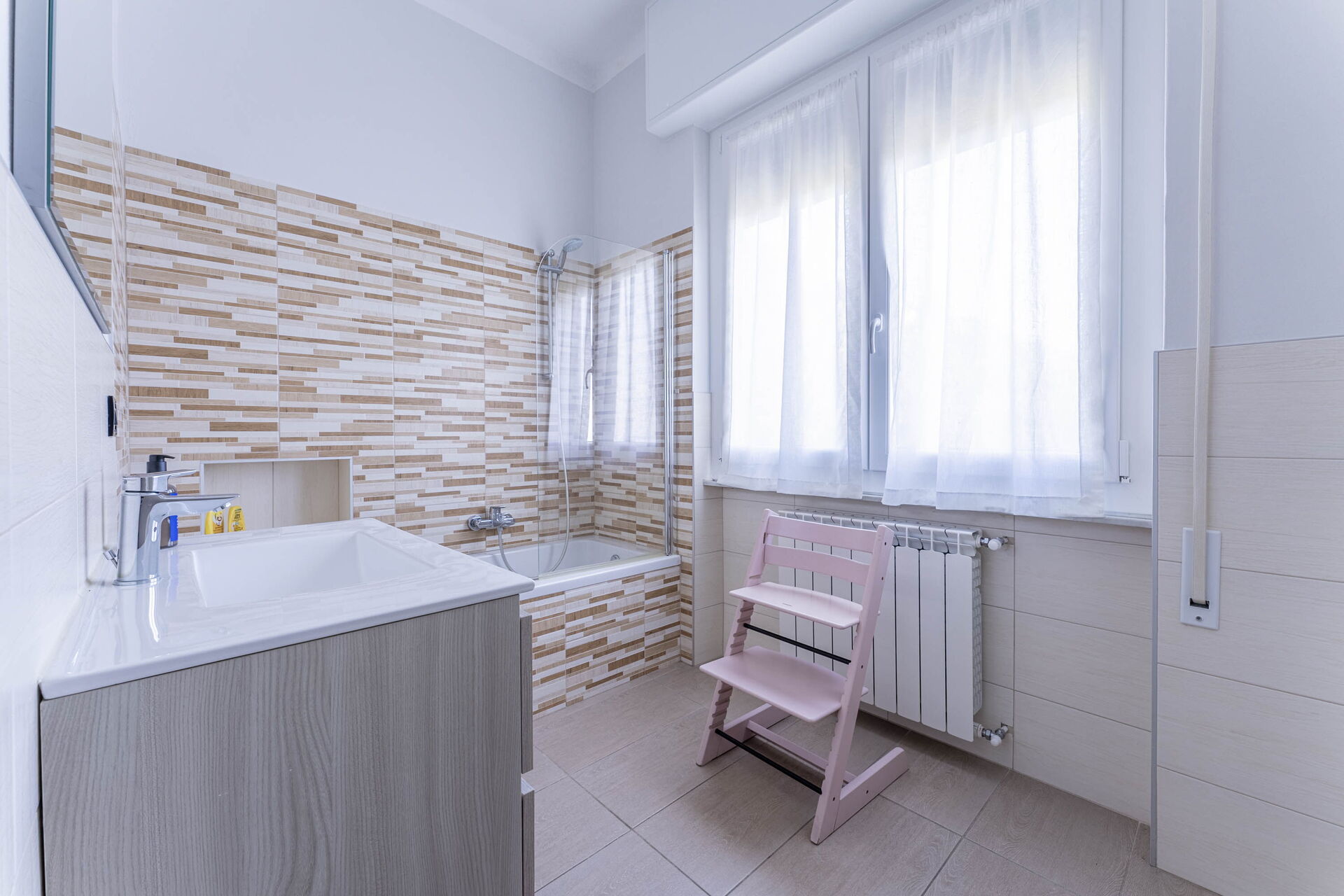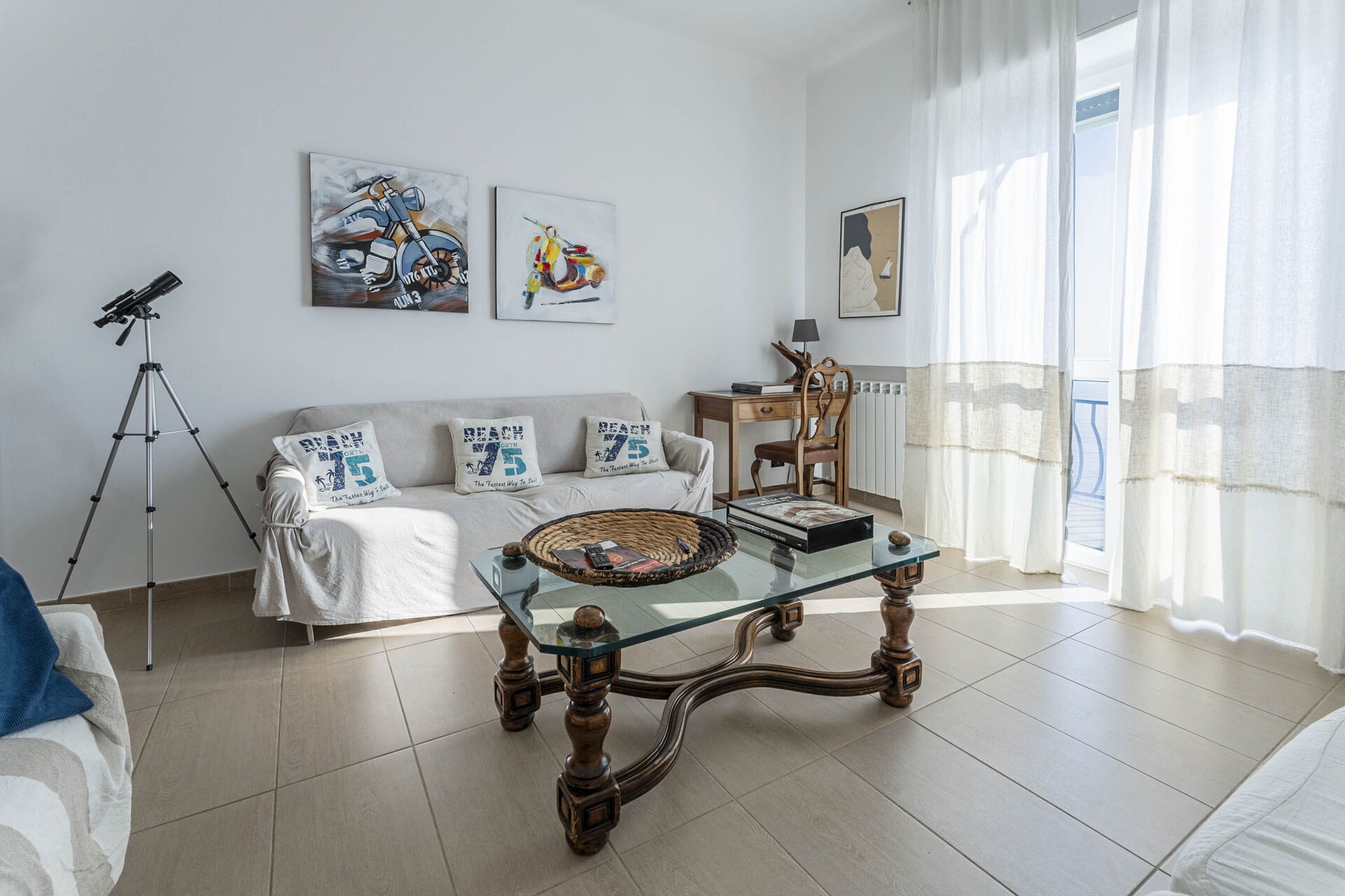 Entering there is an eat-in kitchen equipped with dishwasher, oven, kettle, toaster, coffee machine, with access to the two balconies. A balcony is also accessed from the living room with television and a double bedroom. There are 3 bedrooms: two doubles and one with two single beds, two bathrooms: one with shower, one with bath.