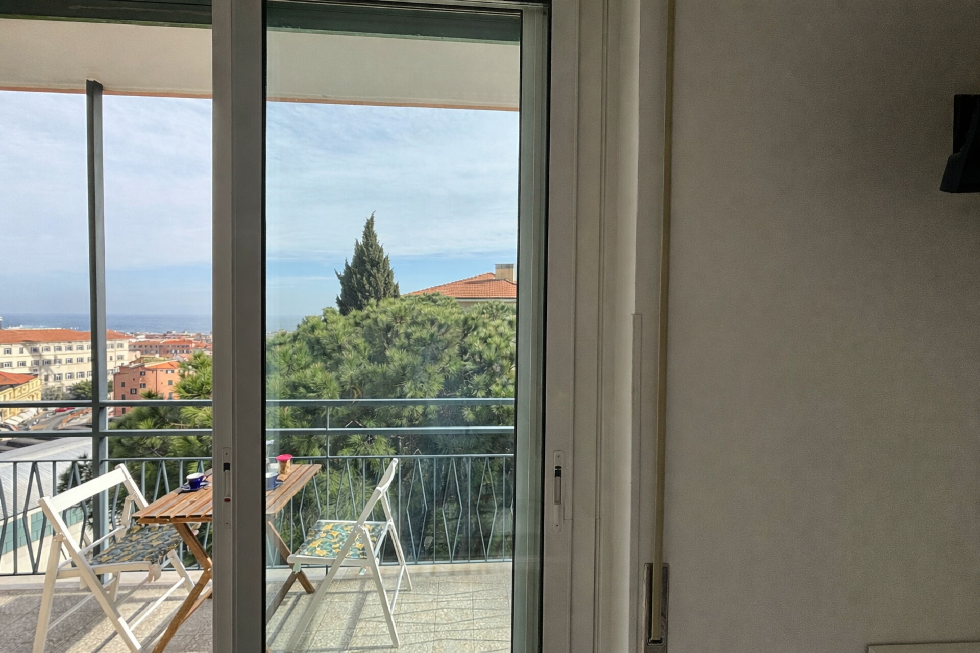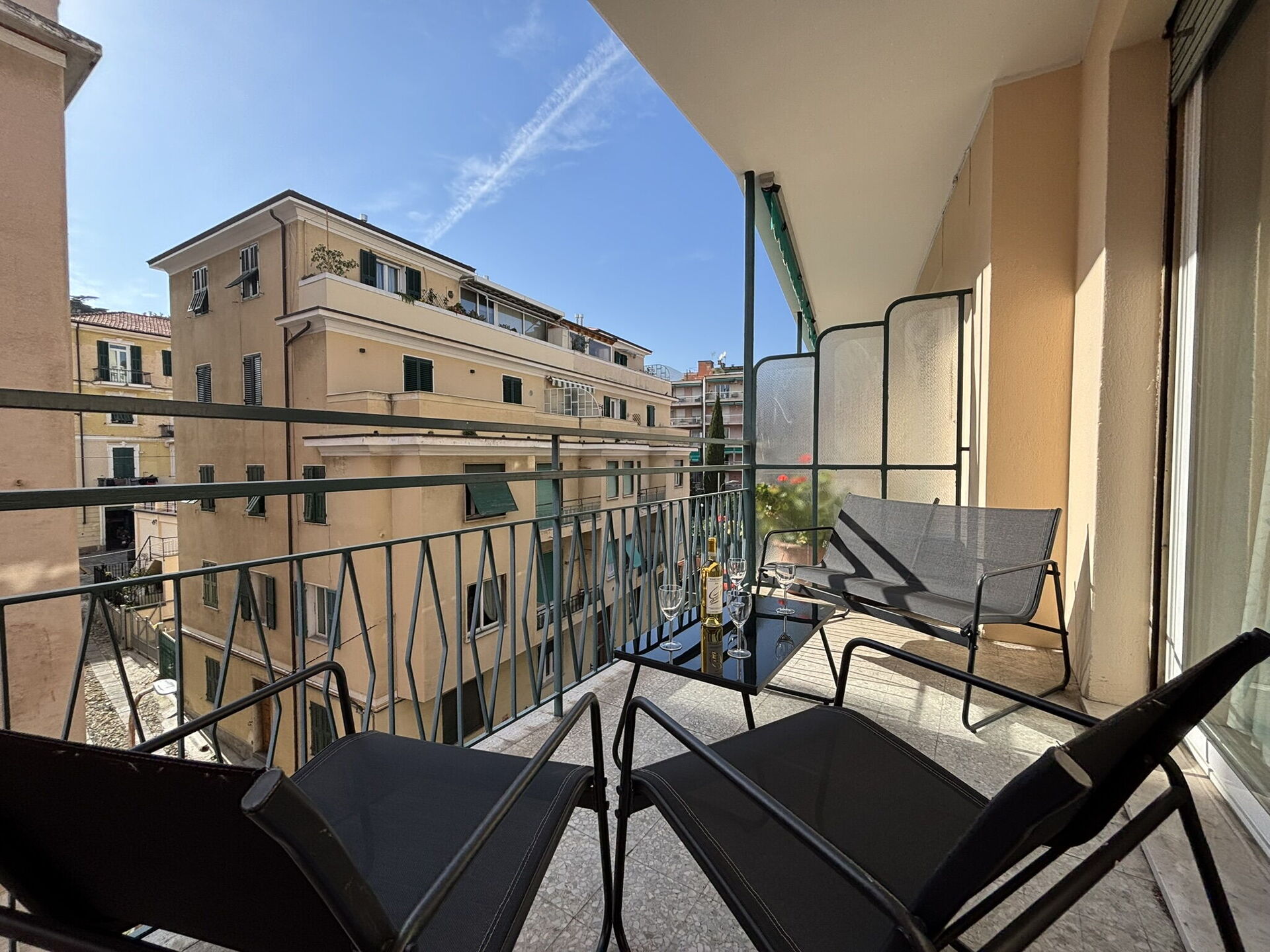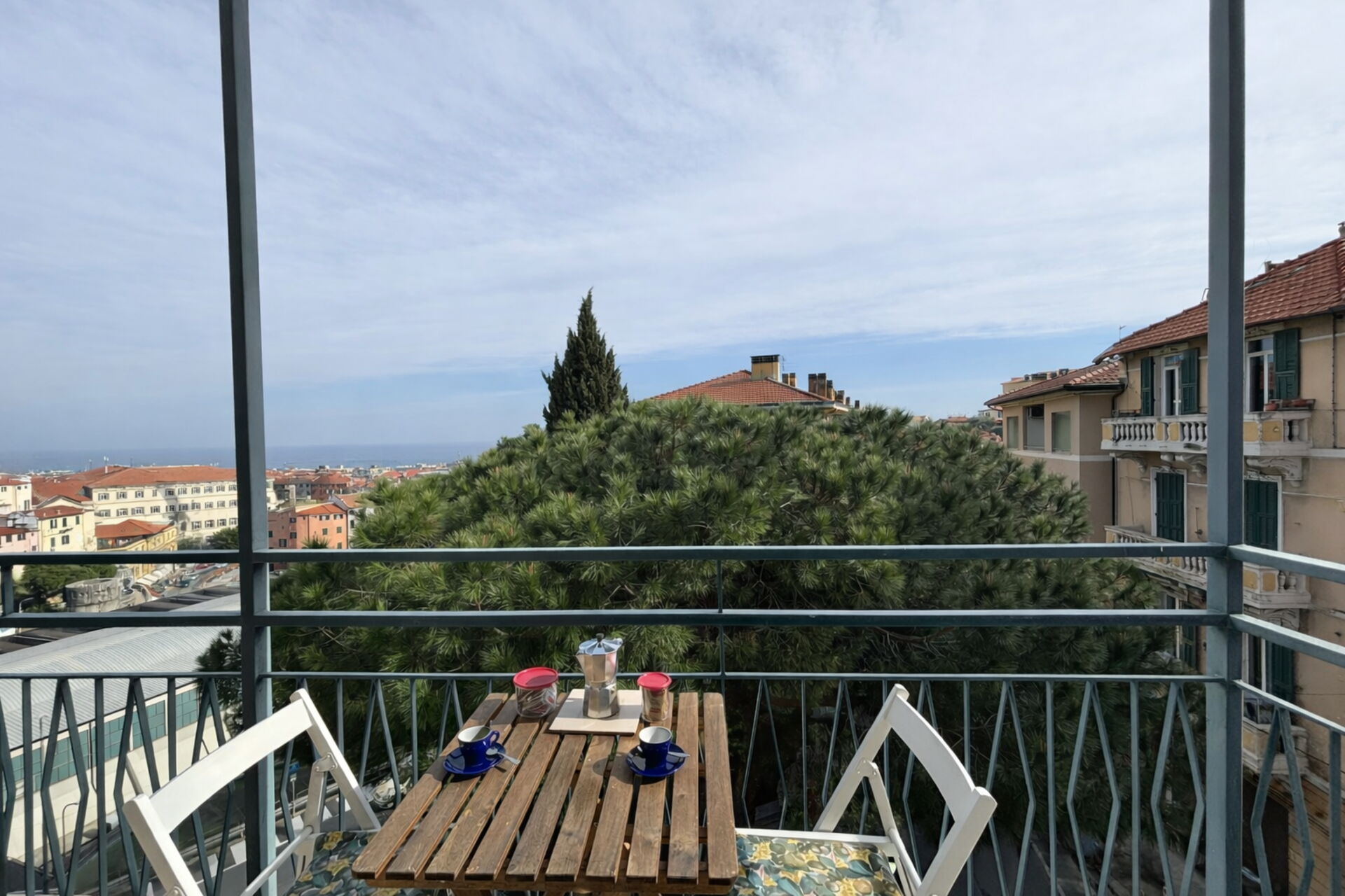 Spacious renovated apartment in the heart of Sanremo with sea-view terrace, just a few steps from the Sanremo Casino. Central and sunny location, ideal for a seaside holiday without a car. Within minutes on foot you can reach Piazza Eroi Sanremesi, the city market, restaurants, cafés, shops, cycle paths, beaches, and cultural attractions. The apartment is located on the third floor with elevator access. It features two large terraces with outdoor lounge seating and a dining table.