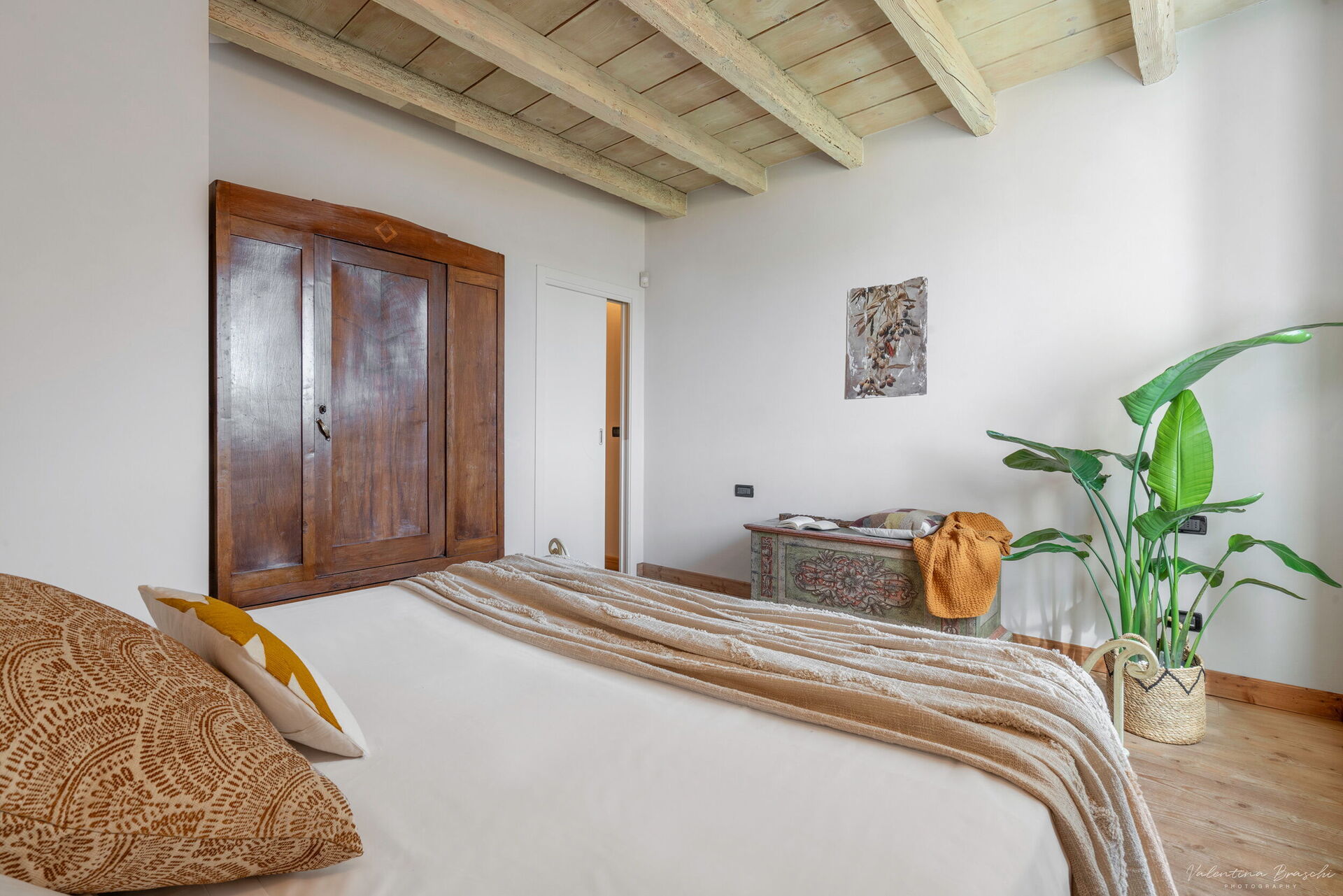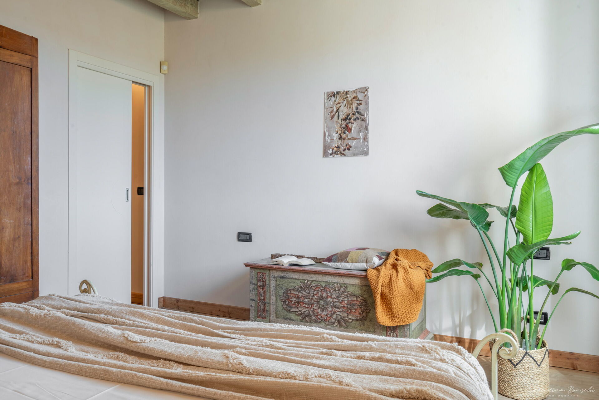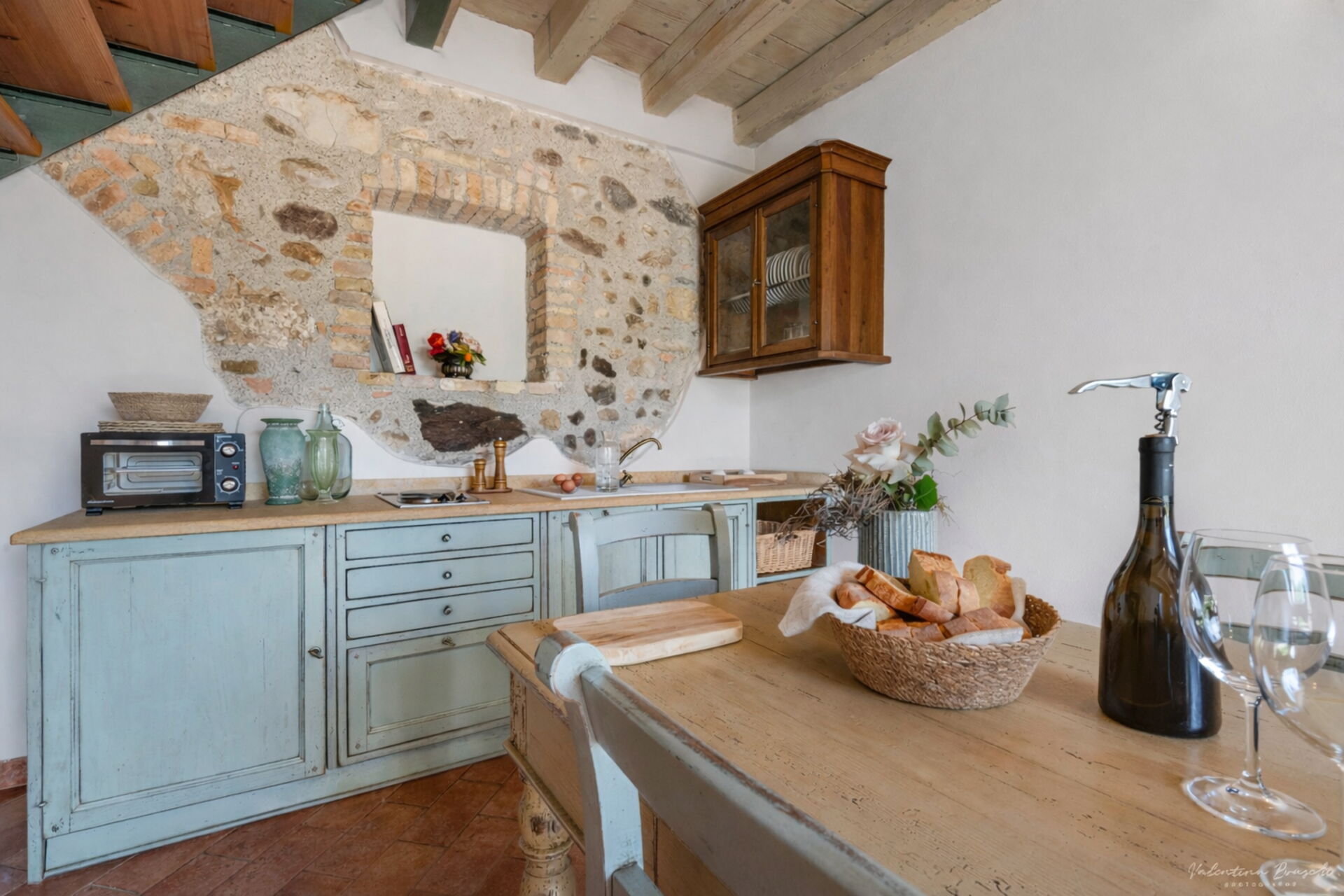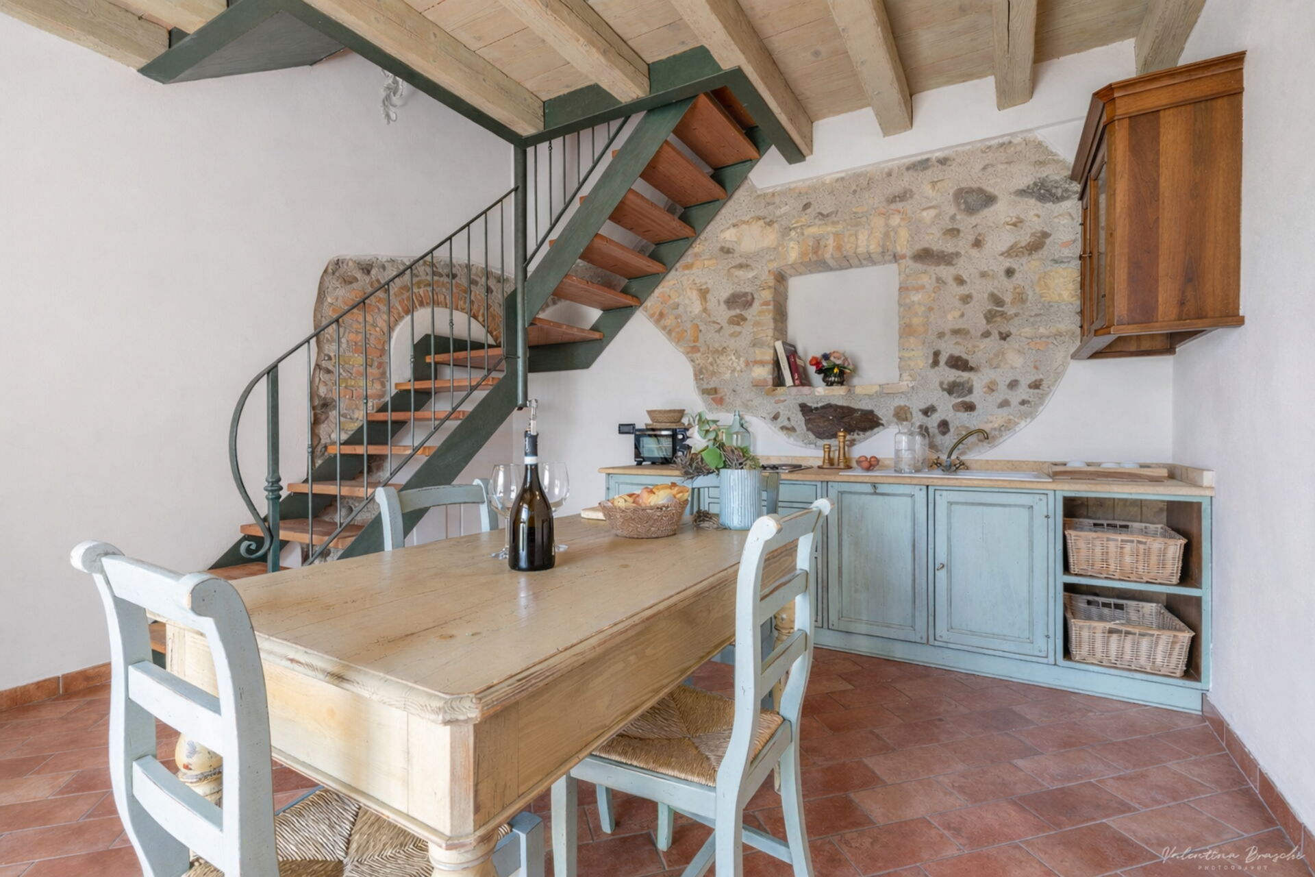 The Biancospino apartment is located in the main central building of the property and is arranged over two floors connected by an internal staircase. On the ground floor there is a spacious kitchen-living area. A comfortable sofa is also available. From the living area there is access to a private outdoor space. On the first floor is the sleeping area, with a double bedroom and a bathroom with shower.