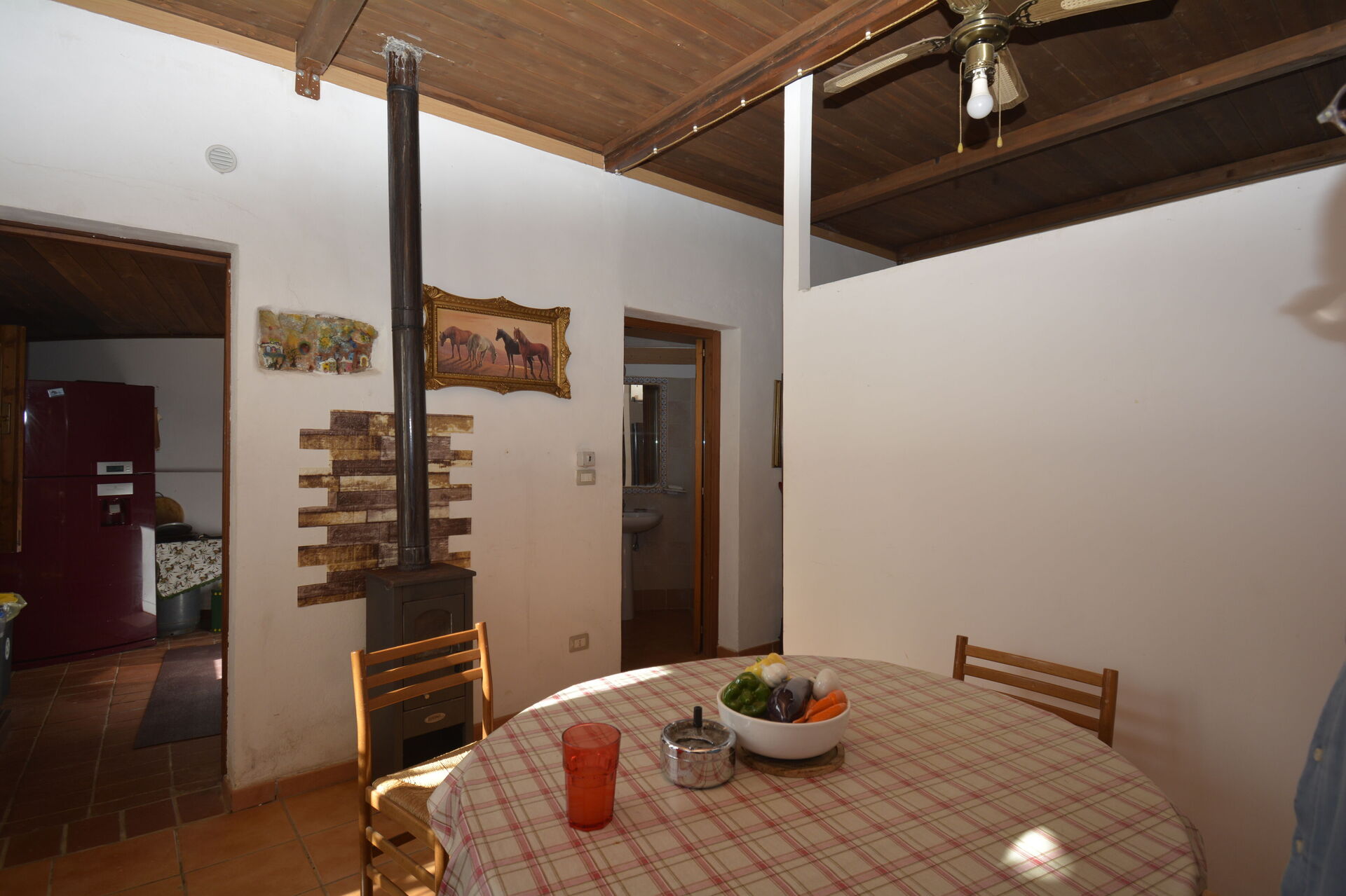 Enjoy the outdoor spaces designed for relaxation: a veranda equipped with chairs, umbrella and sun loungers, adjacent to the patio a barbecue area at your disposal to prepare tasty lunches or dinners accompanied by good homemade wine offered by the owner to make your experience even more authentic. Garden area, land with native and fruit trees and nearby a space dedicated to the ranch animals, a lovely ARA parrot (Claretta) welcomes you and happily chats with guests, an enclosure with roosters, hens (fresh eggs every morning), guinea fowl and turkey, nearby a small pond with geese and ducks, all for the delight of children.
