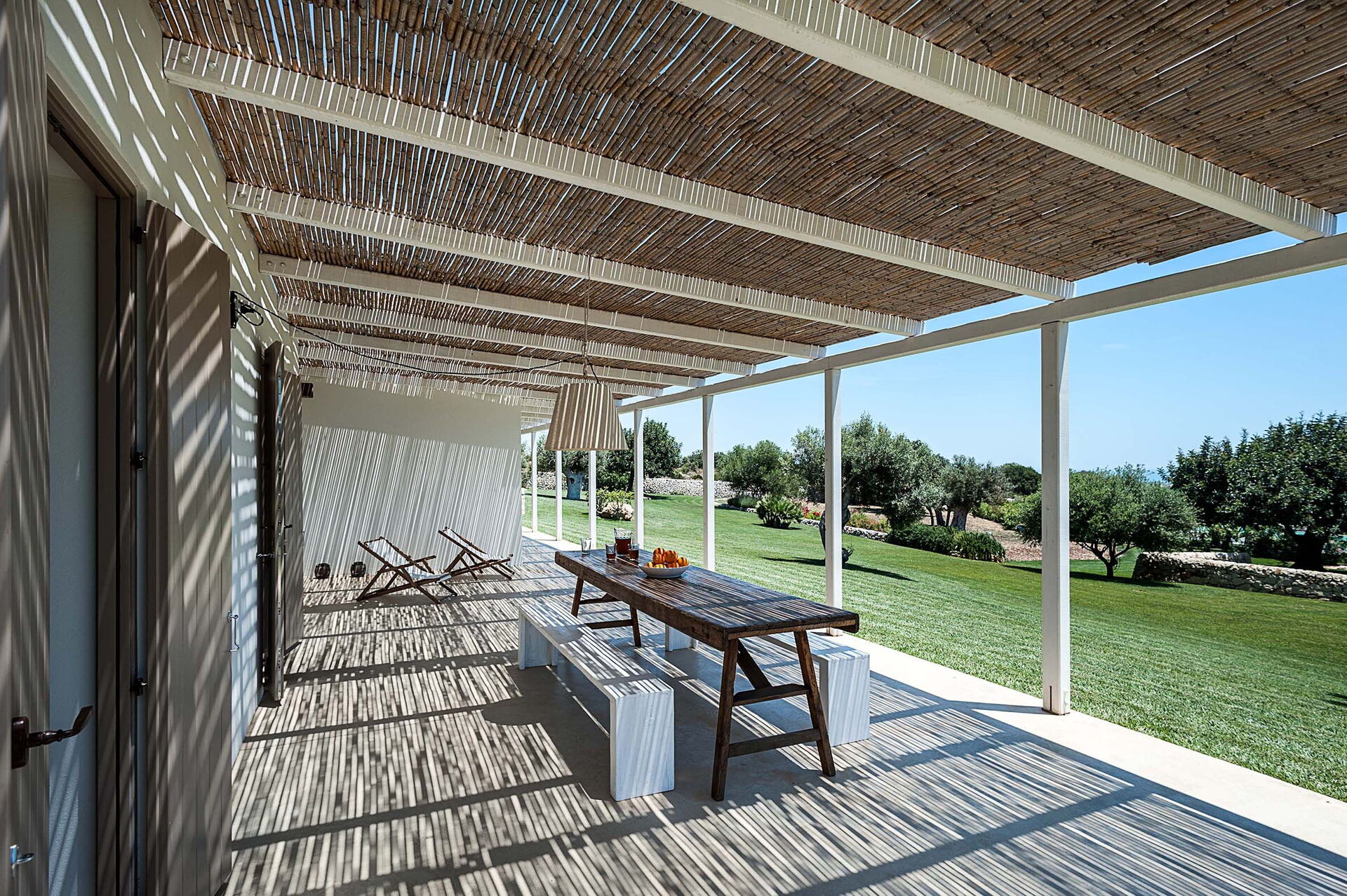 Isolina verde is a villa in a luxurious complex of three villas with shared swimming pool with children's area (7x15 m, depth 1.60 m), shared with Isolina bianca and Isolina rossa, located in the surroundings of Sampieri, a picturesque seaside village in south-eastern Sicily, famous for its long golden sandy beach. The three villas are completely independent of each other, they are surrounded by greenery offering privacy and a peaceful atmosphere. They are arranged on a single level and characterized by attention to detail and refined furnishings. Each villa has a large equipped terrace and a private garden, offering the possibility of enjoying an outdoor holiday among the colours and scents of the Sicilian countryside. They are equipped with modern amenities, including wi-fi connection. From the swimming pool you can enjoy a beautiful view of the sea. Ideal location for exploring the beauties of south-eastern Sicily. The baroque towns of Scicli, Modica, Ragusa Ibla and Noto are easily reachable. Furthermore, it is located a short distance from the beaches of Marina di Ragusa and the nature reserve of Vendicari.