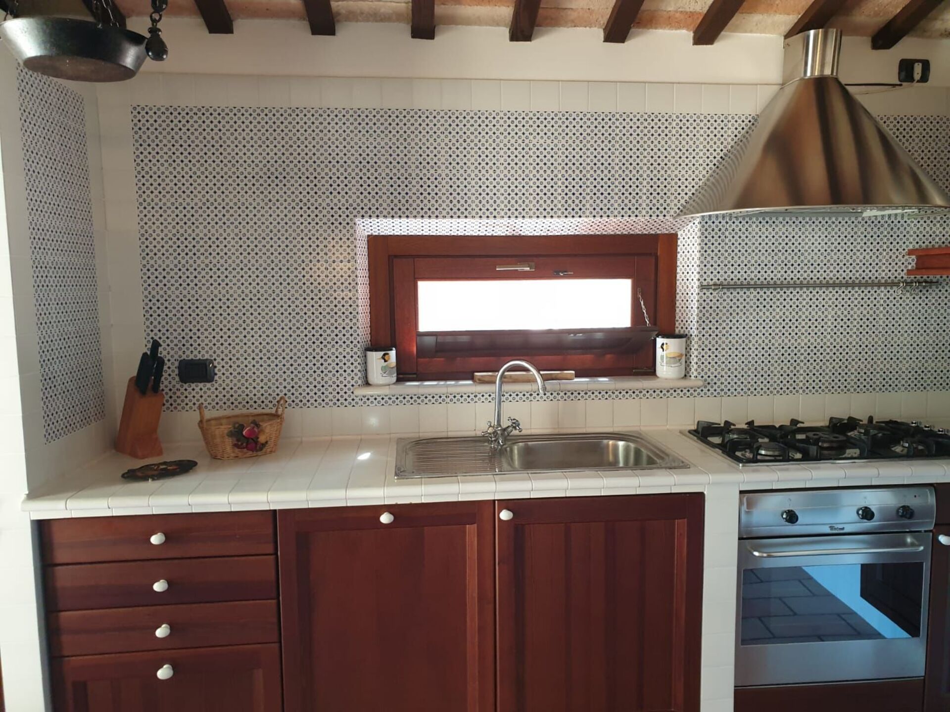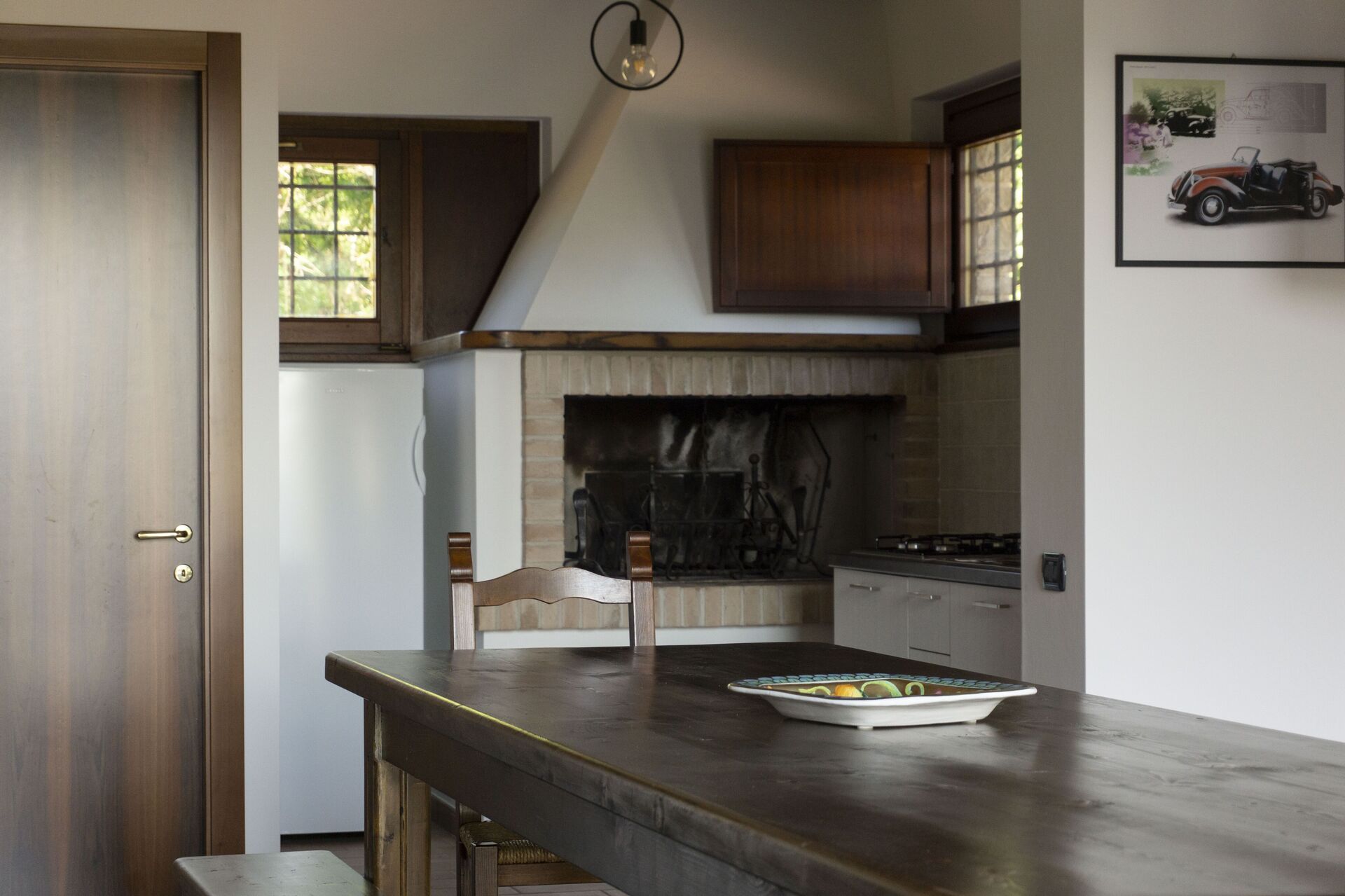 Well Equipped Kitchen, Oven, Freezer, Fridge, WiFi Internet, Dishwasher, Italian Coffee Machine, Microwave, Stove Top, Dining Table, Exit to the garden, Exit to the patio