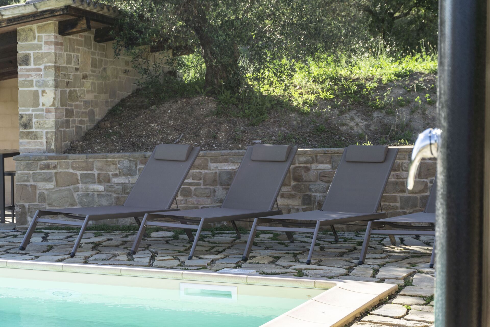The large stone manor house is flanked by two small service facilities, also in stone, in a picturesque courtyard where there is also hospitality a small garden with well and a comfortable swimming pool equipped with sun deckchair space with deckchairs and umbrellas and a covered area with table and chairs, where it will be possible to take refuge to read a book but also to sip aperitifs , long drink or to have a chat in company or intimacy.