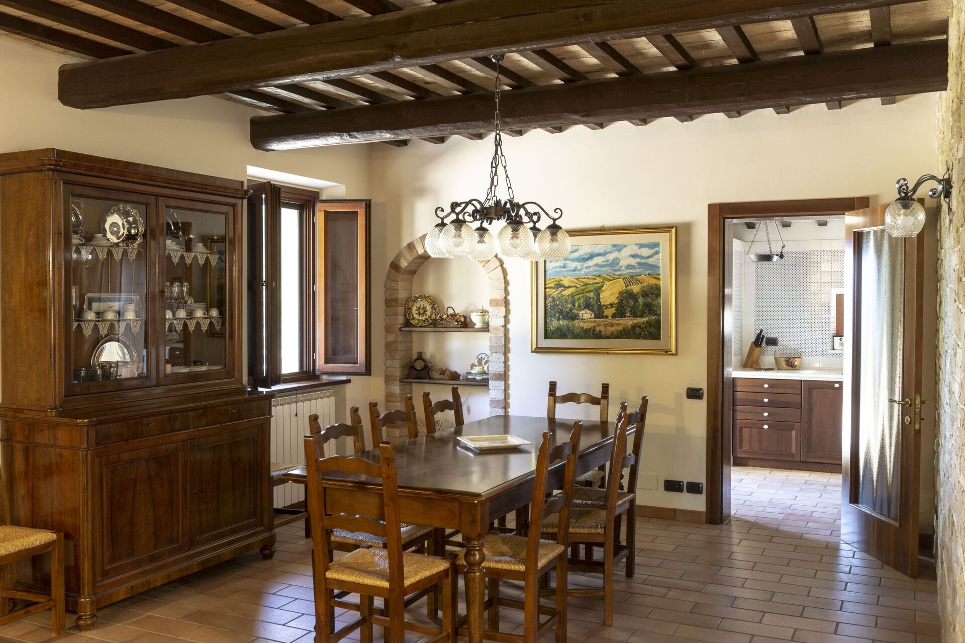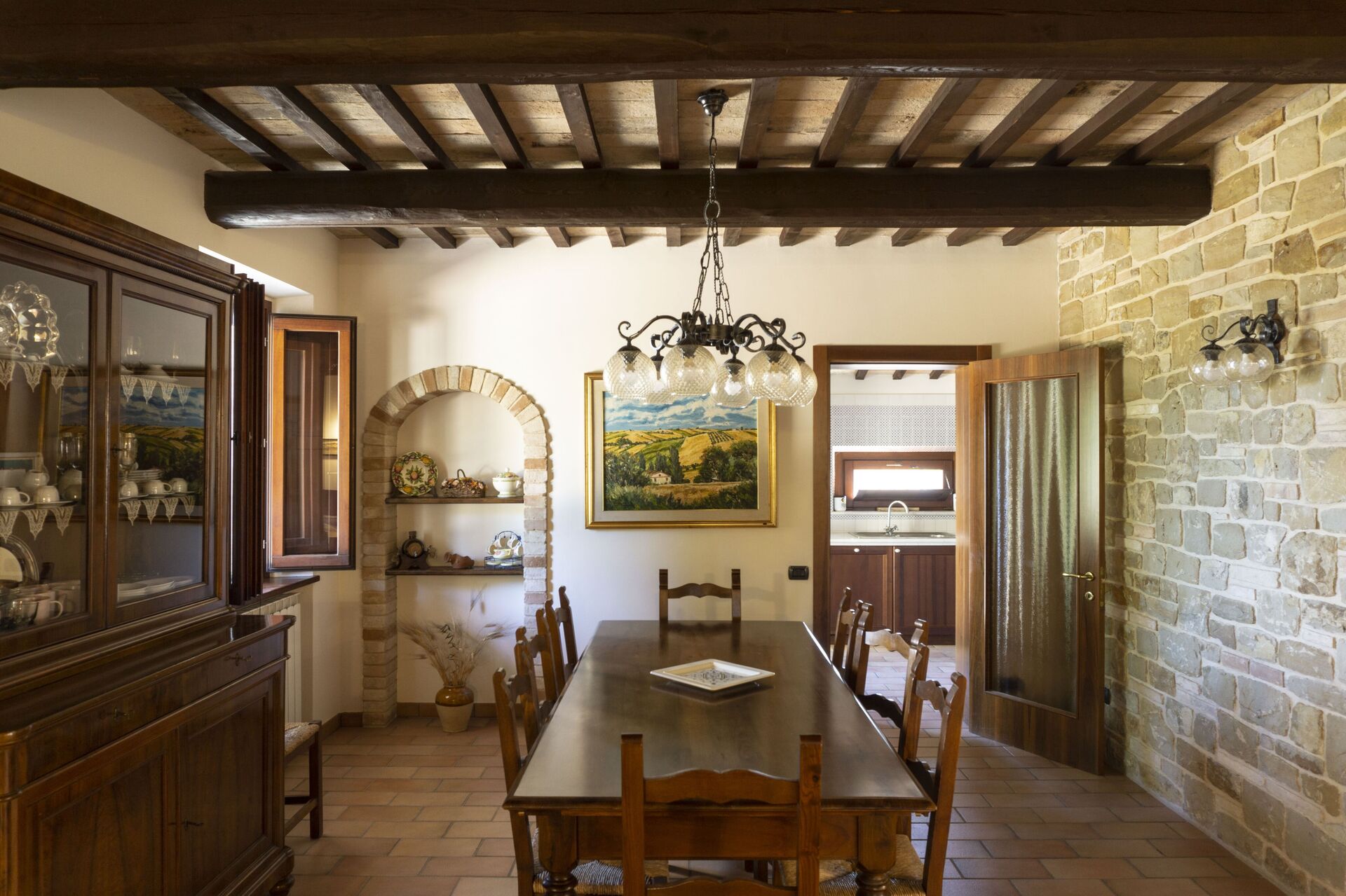 Inside you will find clean, bright and very welcoming rooms. On the walls suggestive black and white photos recall the past of one of the most lively centers in the hinterland, that of San Severino Marche, a city of art that boasts one of the most beautiful squares in Italy and a unique collection of pictorial works, preserved in a picture gallery, among which it also stands out in Pinturicchio together with several canvases, polytypical and altar loaders of inestimable value. The rustic style of brick floors and exposed wooden beams offers the warmth and atmosphere of the typical hospitality of the Marche region, a region in the plural designed for the singular.
