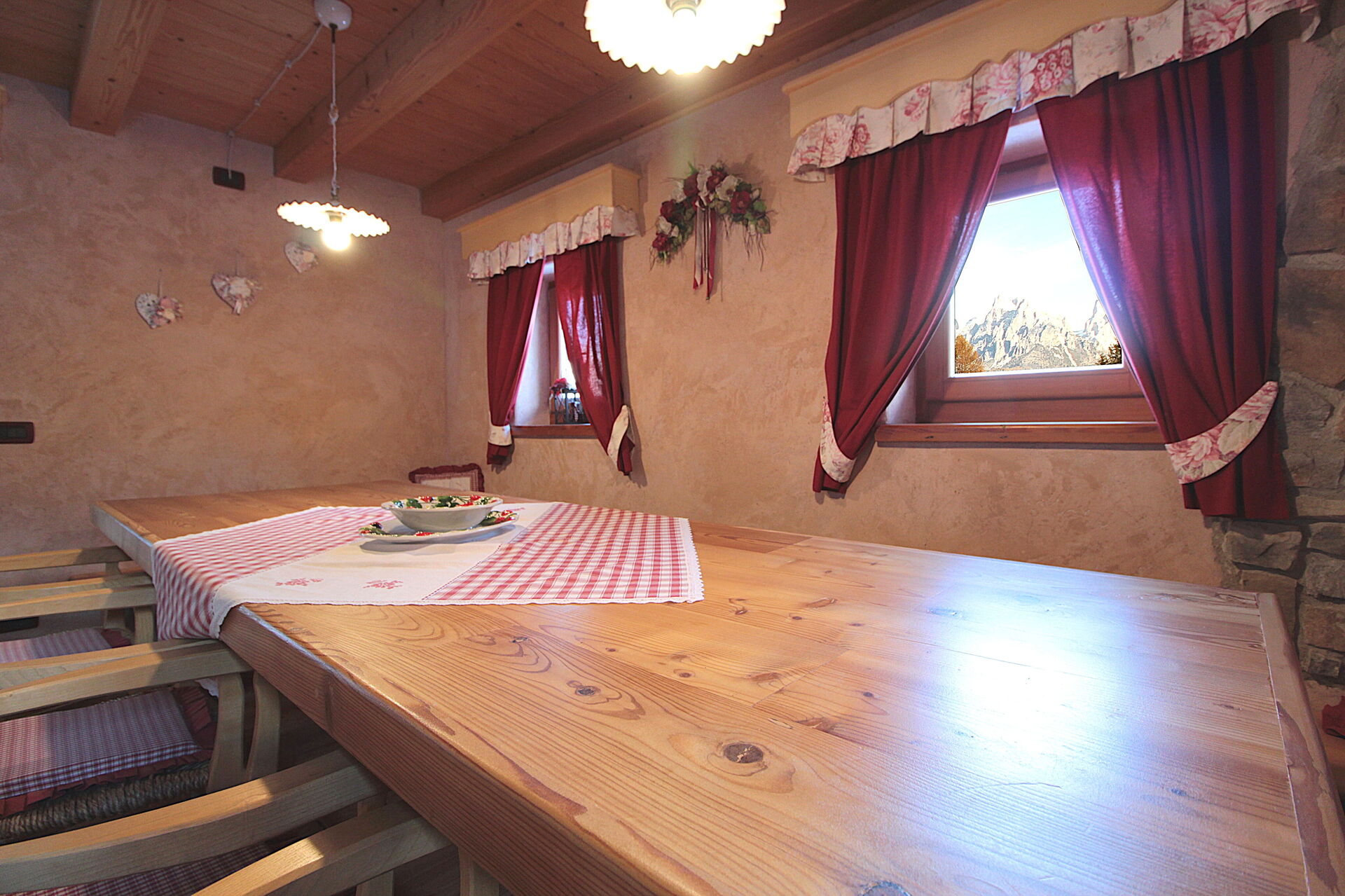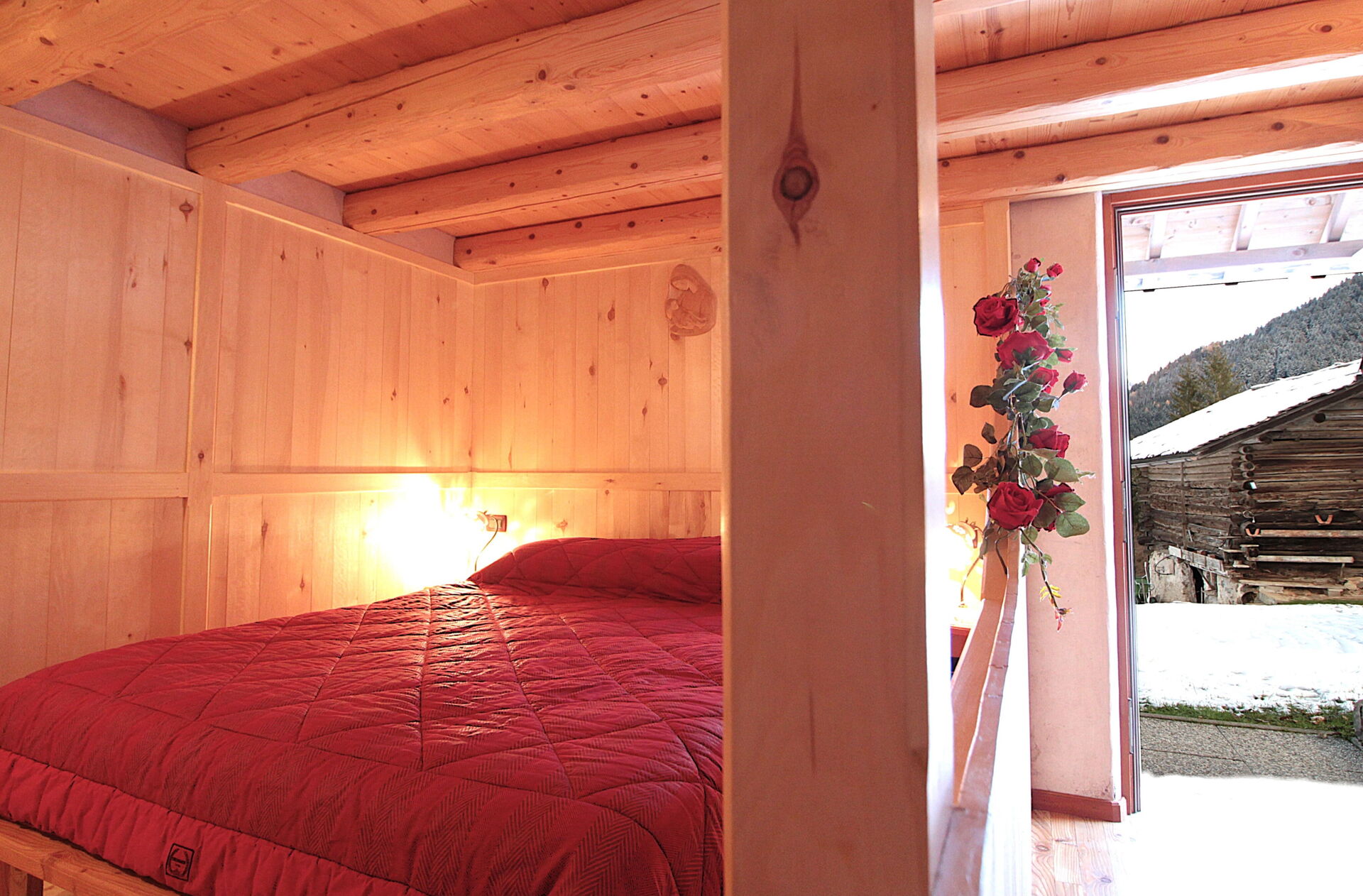 Romantic wooden hut at an altitude of 1137 metres, with a splendid view of the Pale di San Martino (UNESCO heritage site). Here you will spend an unforgettable holiday, breathing in the scent of the Trentino woods even inside, as the chalet and the furnishings (handmade by the owner) are all made of wood. Sitting at the table on the terrace, you can dine while admiring the natural setting of the Pale Mountains, which turn pink at sunset.