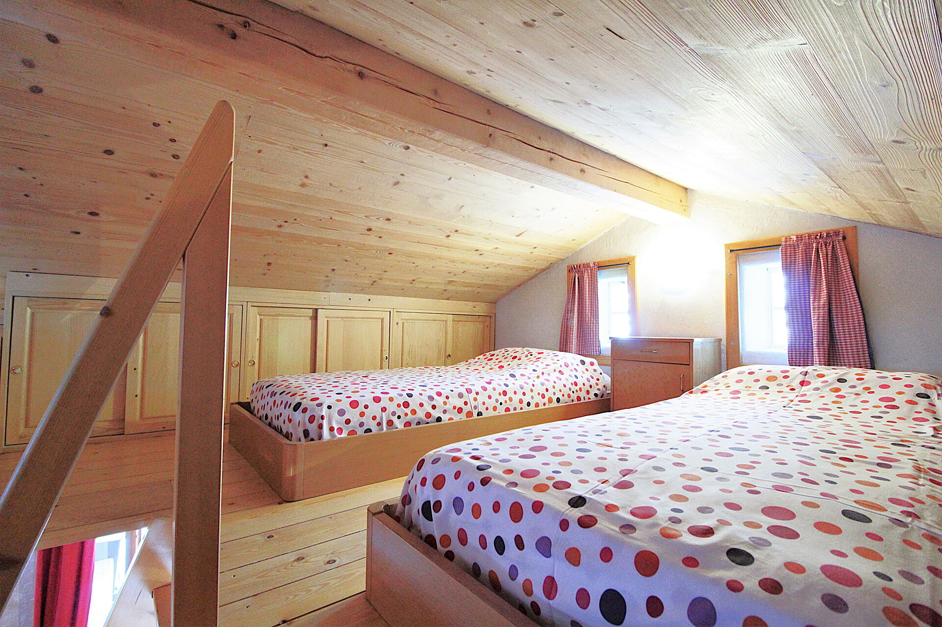 access from the garden, single room with kitchen, dining room, living room. Mezzanine with 2 single beds (accessed by a wooden staircase)