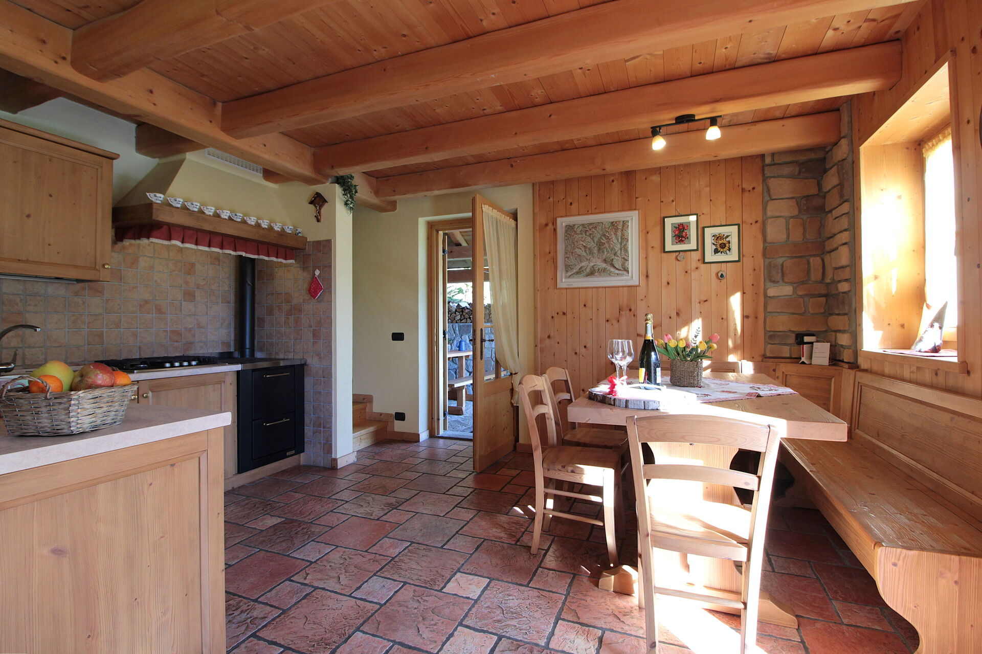 CO2 Detector, Exit to the garden, Fireplace, Freezer, Fridge, Highchair, Iron, Italian Coffee Machine, Oven, Smoke Detector, Stove Top, Well Equipped Kitchen, WiFi Internet, Dining Table