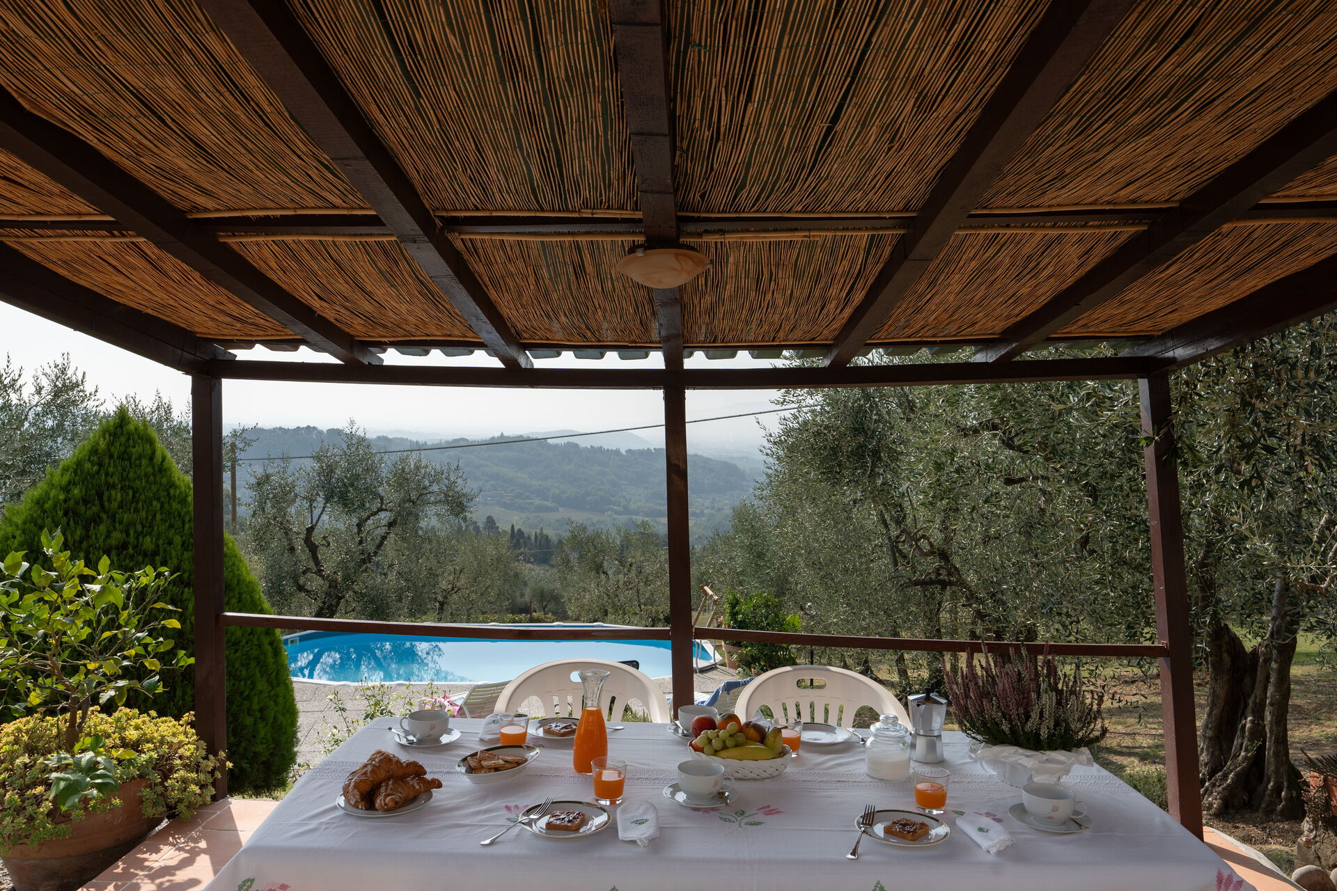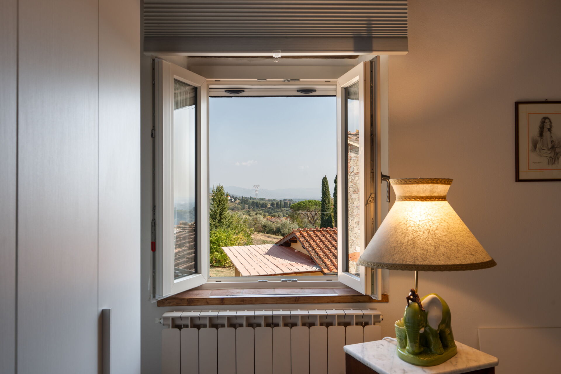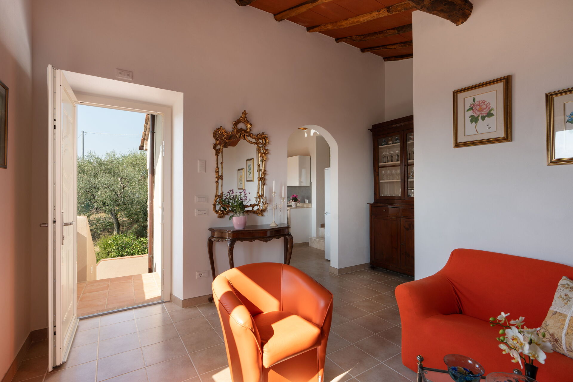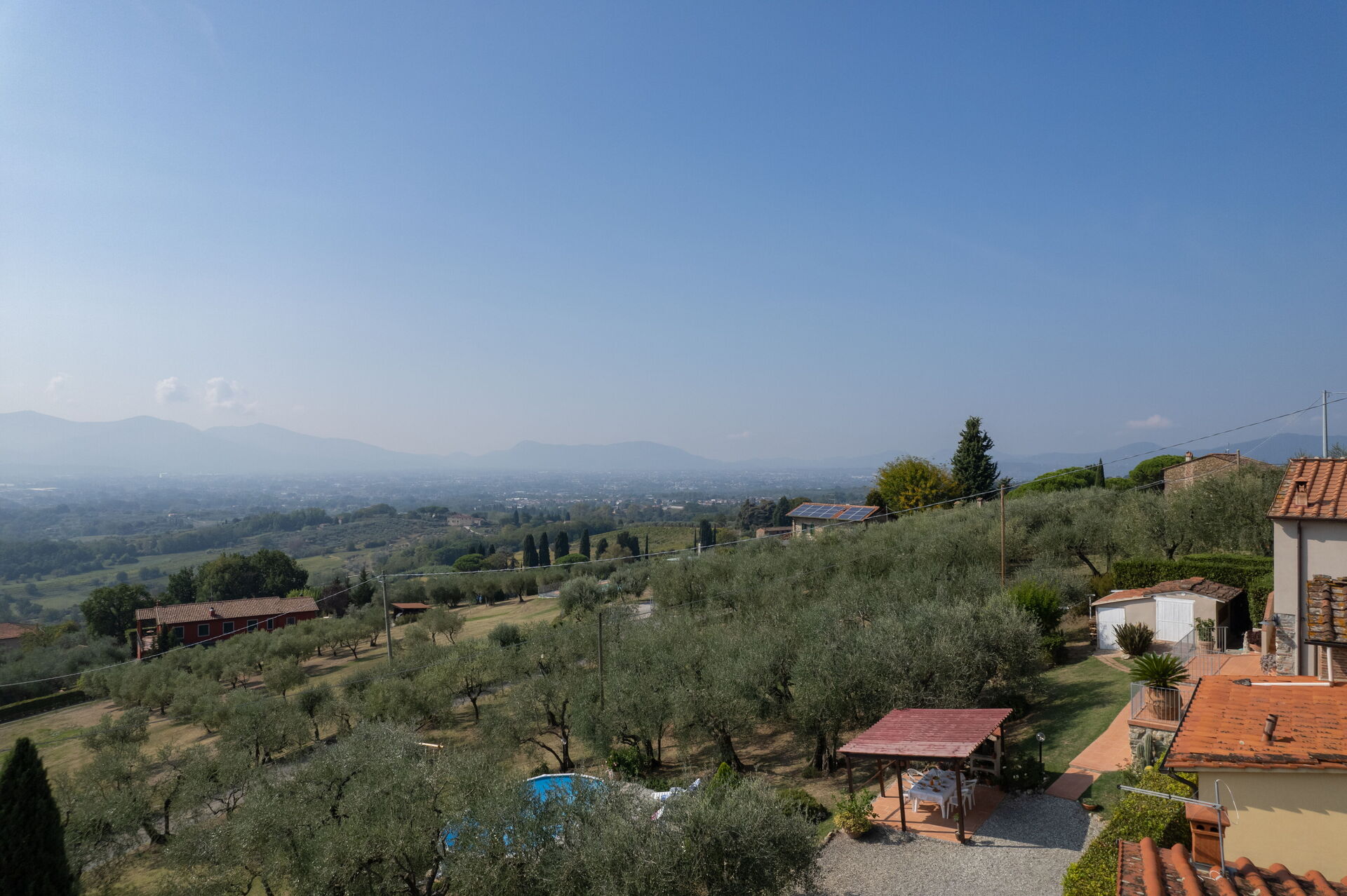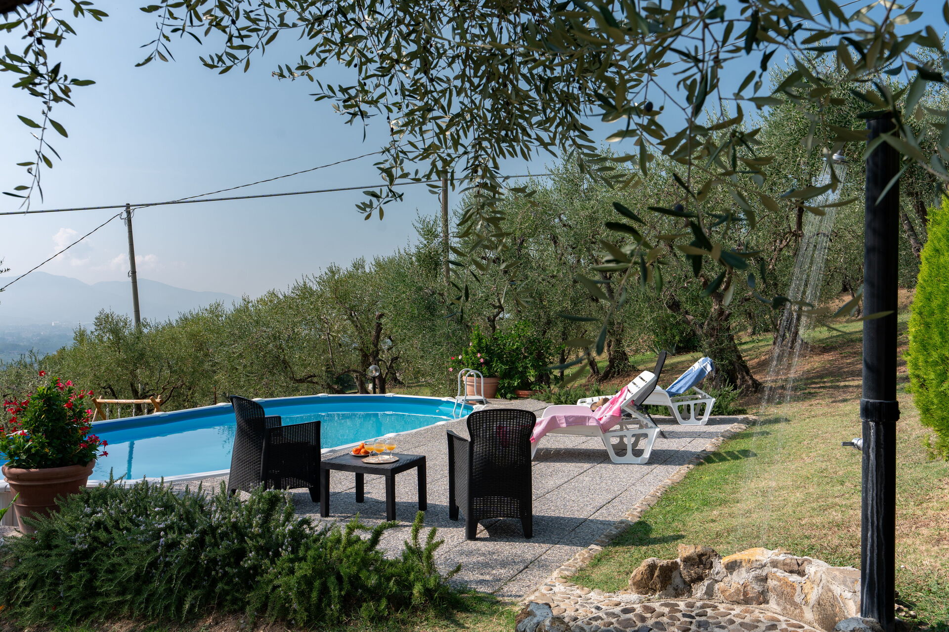Beautiful first floor apartment (75m²) near Lucca for up to five people with private pool and garden. Situated in the idyllic hills just outside Lucca, this property offers enviable views of the surrounding countryside and is located within just a few kilometers of local shops and restaurants, several picturesque hamlets and the famous historical villas and gardens of Lucca. Restored in 2021, the property offers light and airy interiors with all the modern comforts of air conditioning, satellite TV, wifi internet and a well-equipped kitchen. Private entrance via external stairs from the garden.