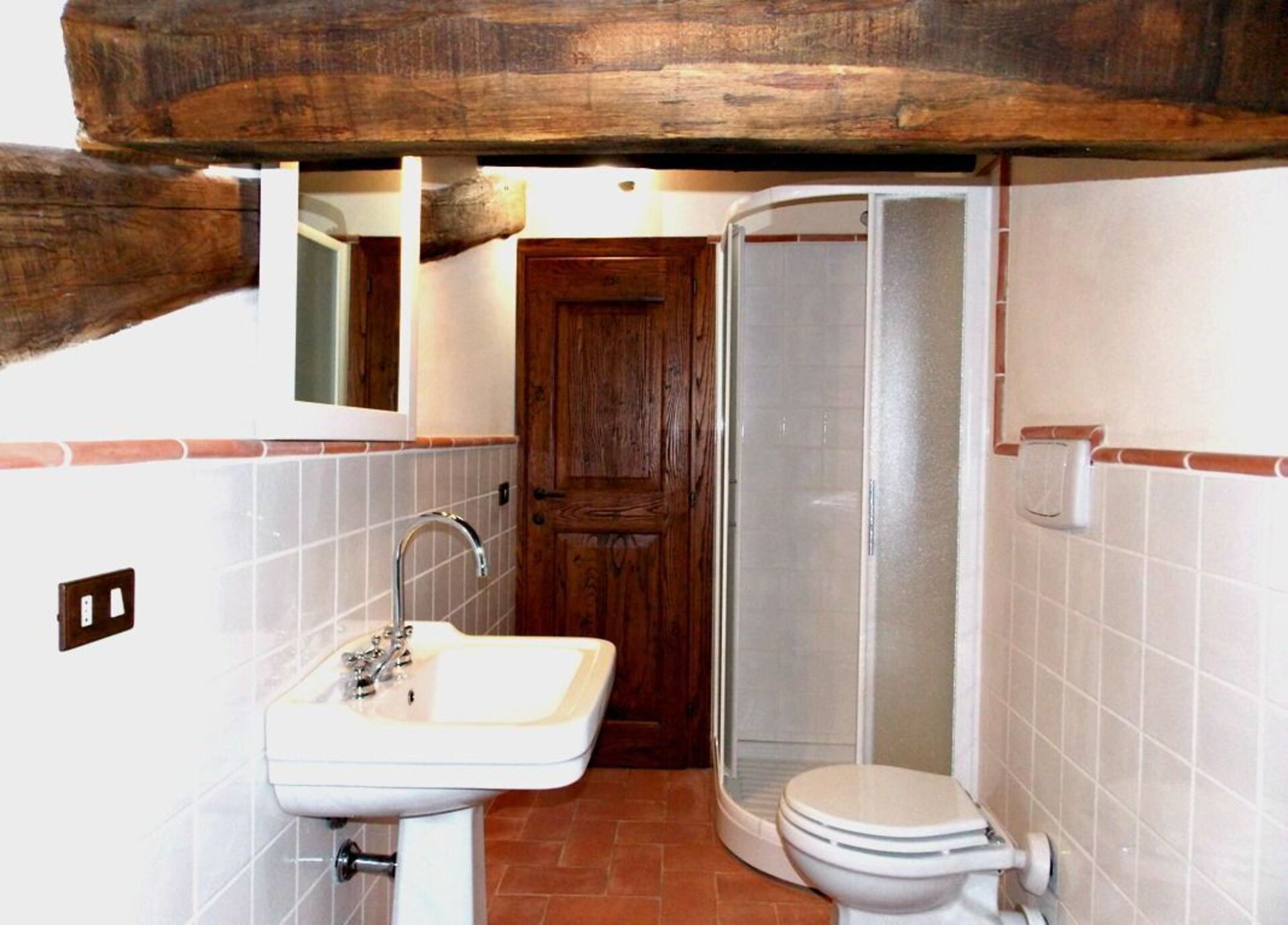 On the first floor: 1 double bedroom with double bed and 1 bathroom with shower (wc/bidet).