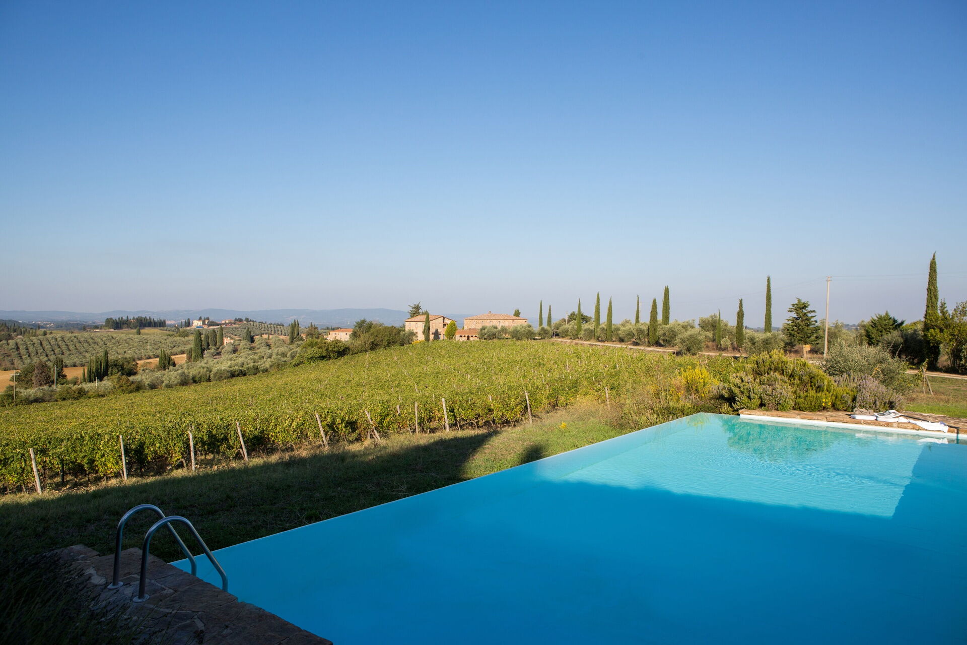 Essential services are easily accessible: Castellina in Chianti is just 5 km away (grocery shops, tennis courts), Poggibonsi is 15 km away (a wide range of shops), while Siena and San Gimignano are approximately 20 km away. Florence can be reached in about 50 km.