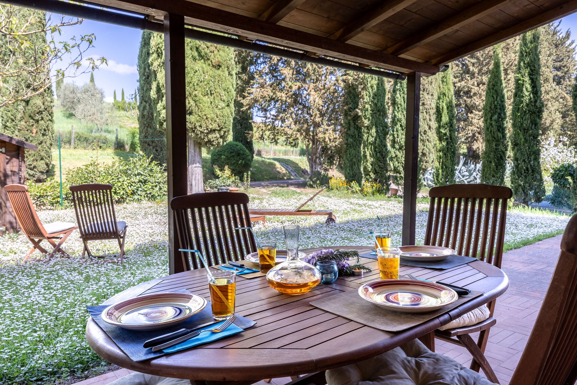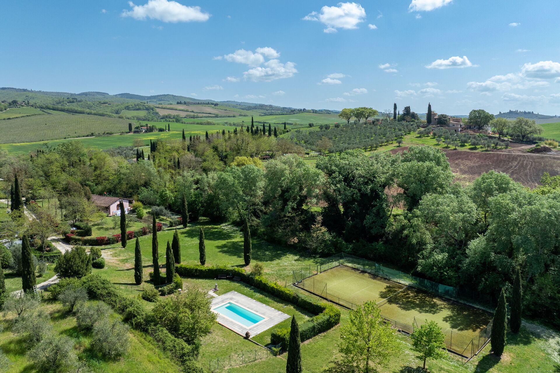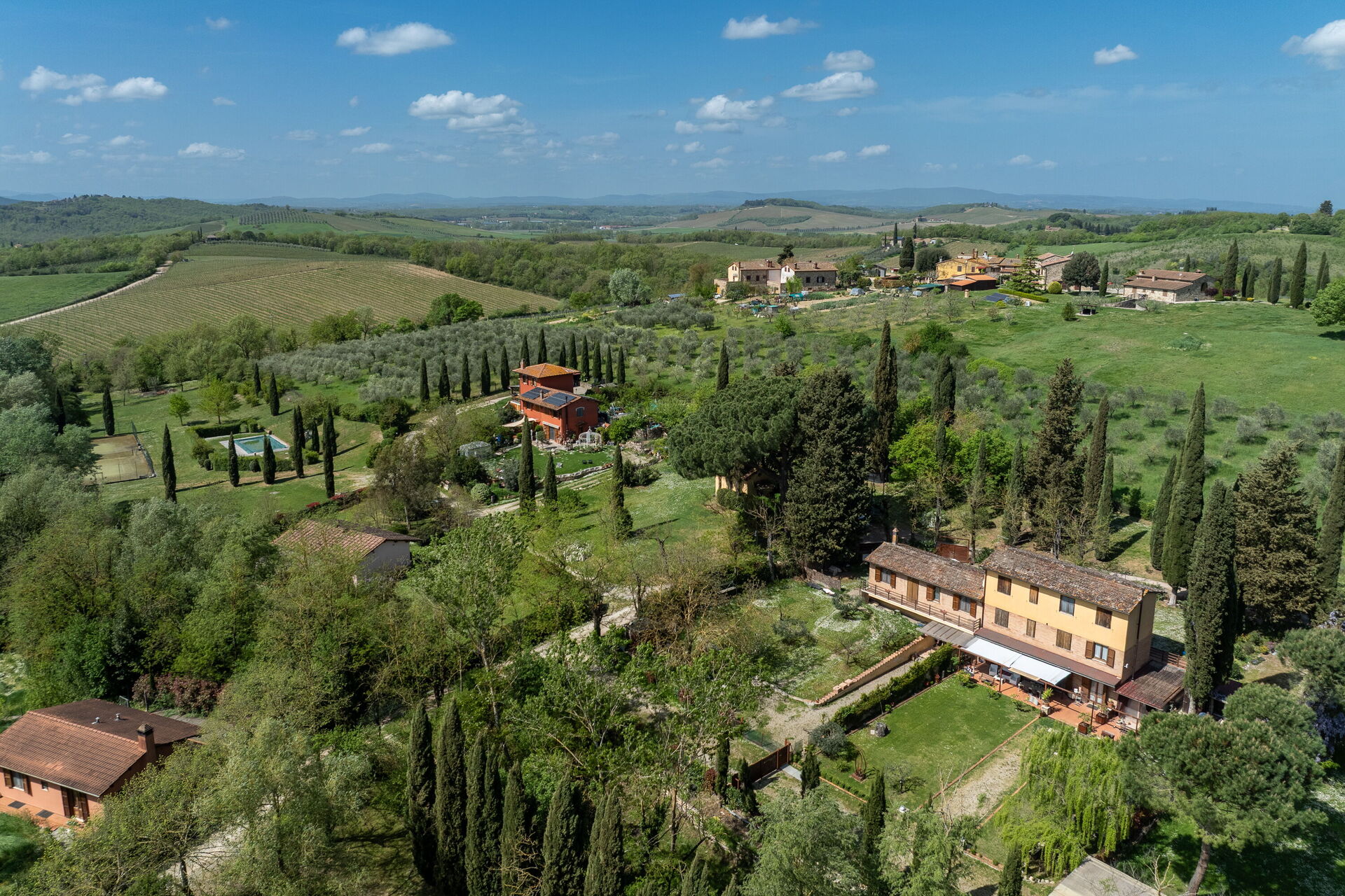 The hamlet, private and authentic, is home to only a few families and guarantees tranquility, with access to a shared swimming pool and tennis court for residents. A perfect solution for those looking for a holiday home in Tuscany, surrounded by Chianti hills, vineyards, and relaxation.