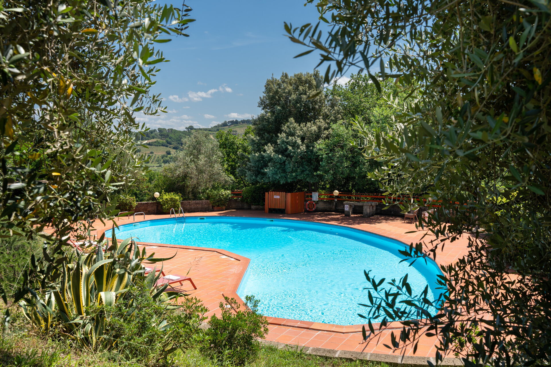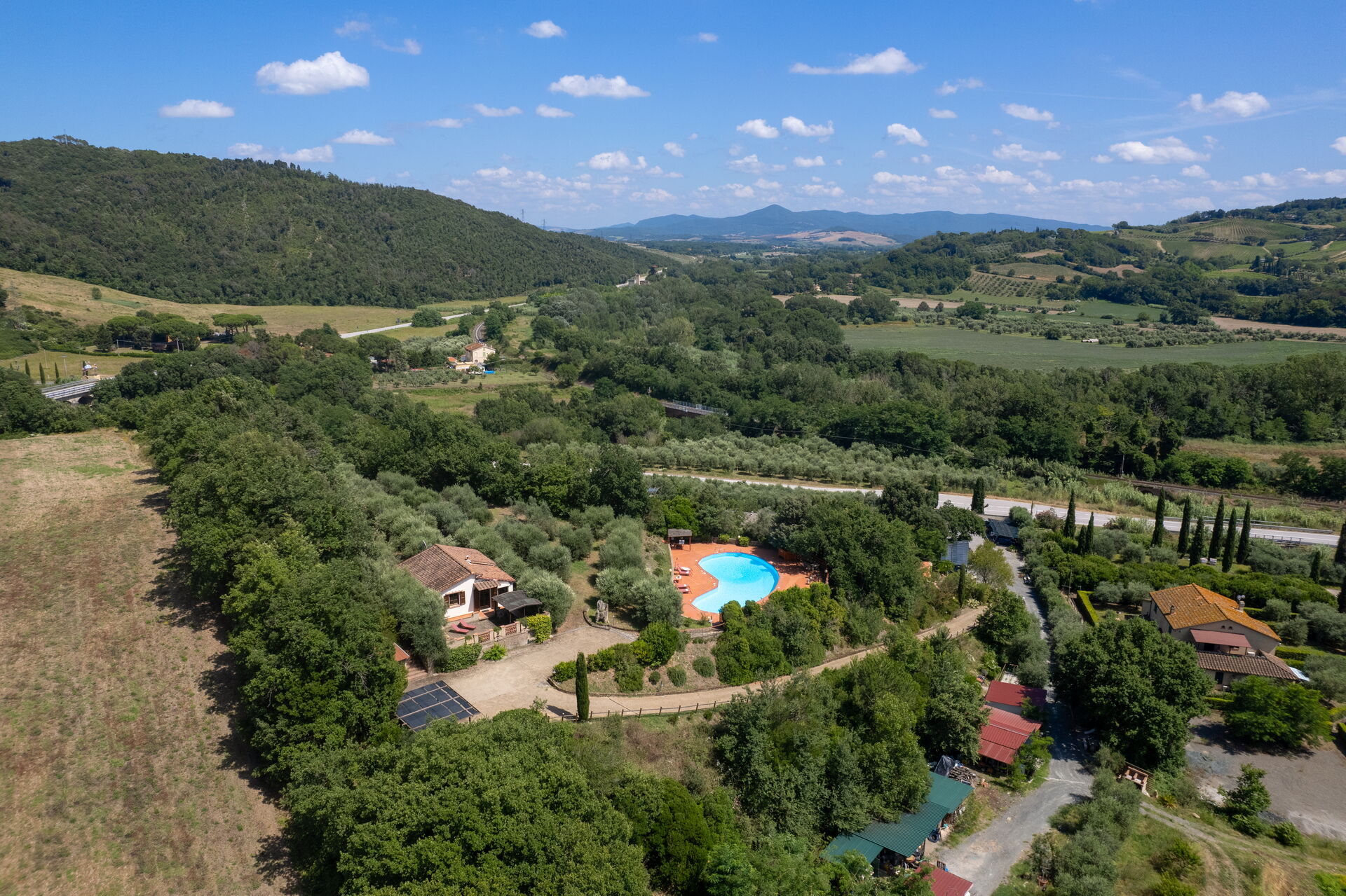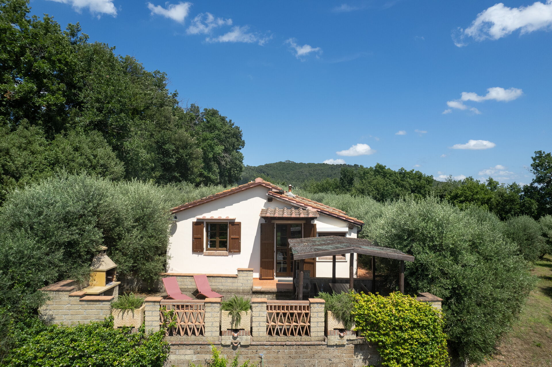 Pretty country house located on the Pisan hills in the middle of an olive grove. The recently renovated villa has managed to maintain the rustic Tuscan style with wooden beams and terracotta floors. Furnished with taste and care, the house is equipped with all comforts. Air conditioning. Externally it is surrounded by a beautiful and well-kept garden where we find a bean-shaped swimming pool (130 sqm, depth 1.10 -3.40) from which you can enjoy a splendid view of the surrounding countryside. Gazebo equipped for dining al fresco, brick barbecue, private parking, free Wi-Fi internet. The house is located 4 km. from "Riparbella, 10 km from Cecina (for purchases of all kinds), 46 km from Livorno, 68 km from Pisa, 36 km from Volterra, 63 km from Colle Val d'Elsa, 53 km from San Gimignano, 89 km from Siena .