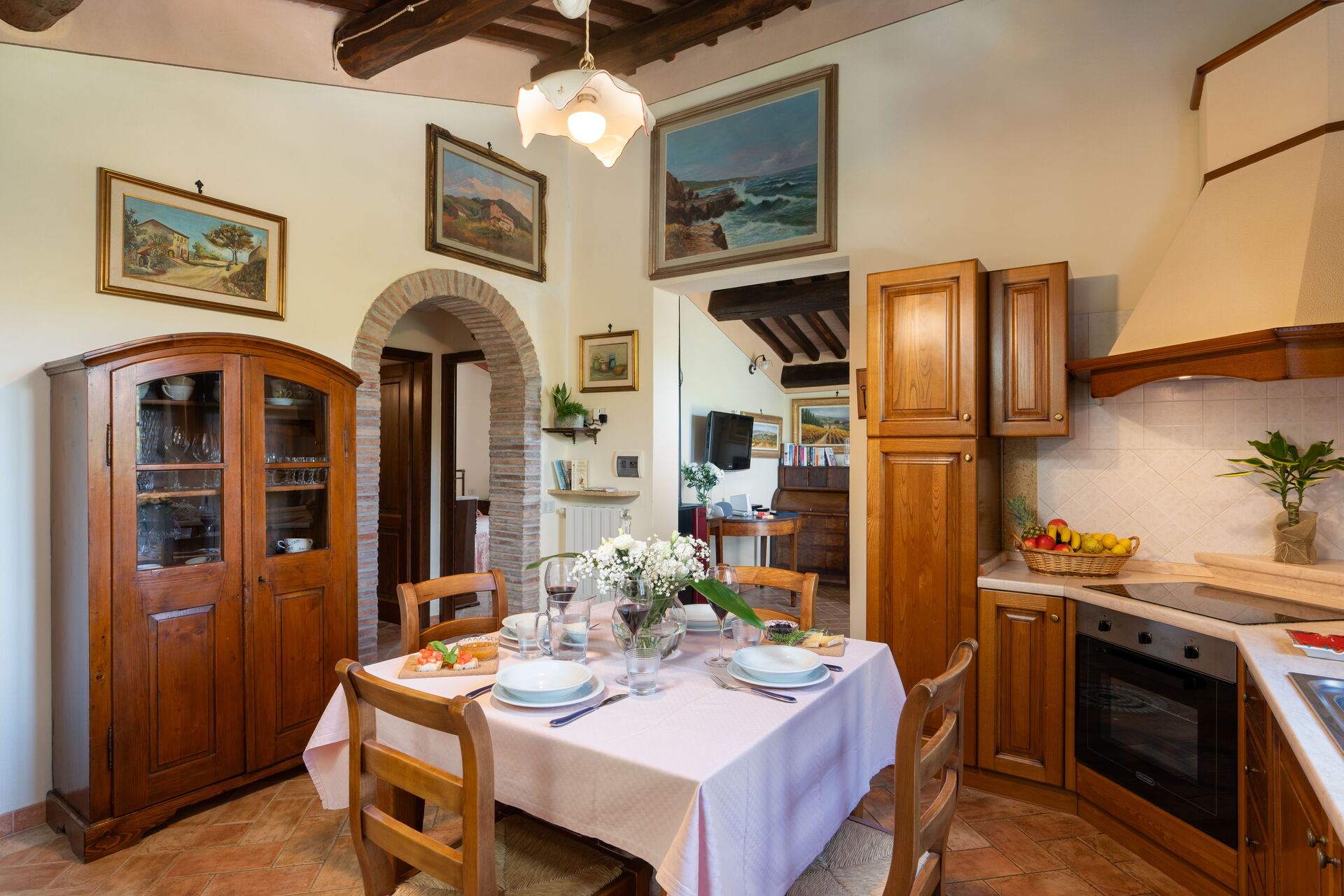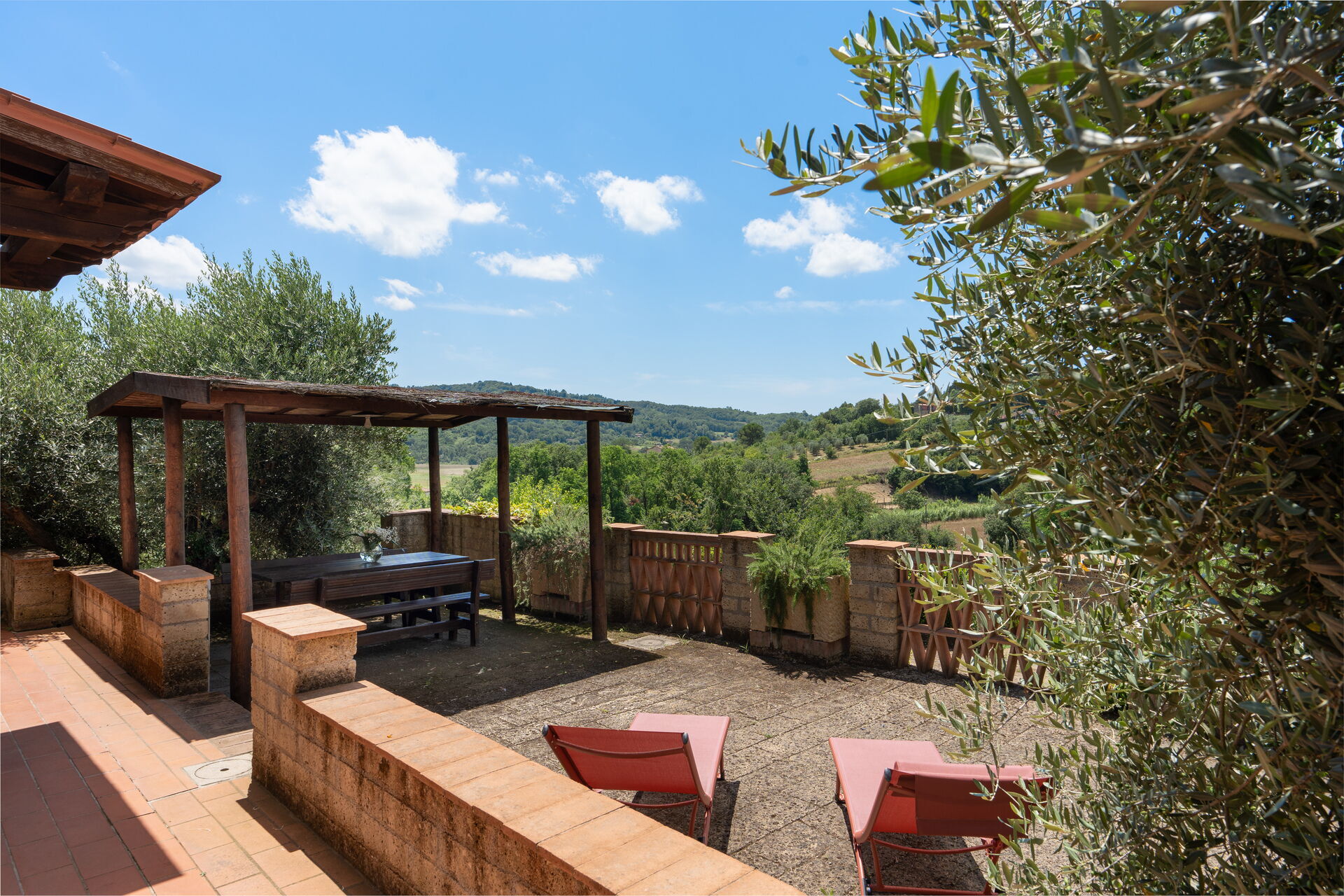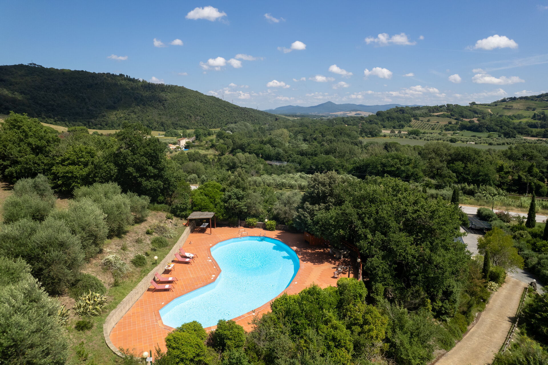 Pretty country house located on the Pisan hills in the middle of an olive grove. The recently renovated villa has managed to maintain the rustic Tuscan style with wooden beams and terracotta floors. Furnished with taste and care, the house is equipped with all comforts. Air conditioning. Externally it is surrounded by a beautiful and well-kept garden where we find a bean-shaped swimming pool (130 sqm, depth 1.10 -3.40) from which you can enjoy a splendid view of the surrounding countryside. Gazebo equipped for dining al fresco, brick barbecue, private parking, free Wi-Fi internet. The house is located 4 km. from "Riparbella, 10 km from Cecina (for purchases of all kinds), 46 km from Livorno, 68 km from Pisa, 36 km from Volterra, 63 km from Colle Val d'Elsa, 53 km from San Gimignano, 89 km from Siena .