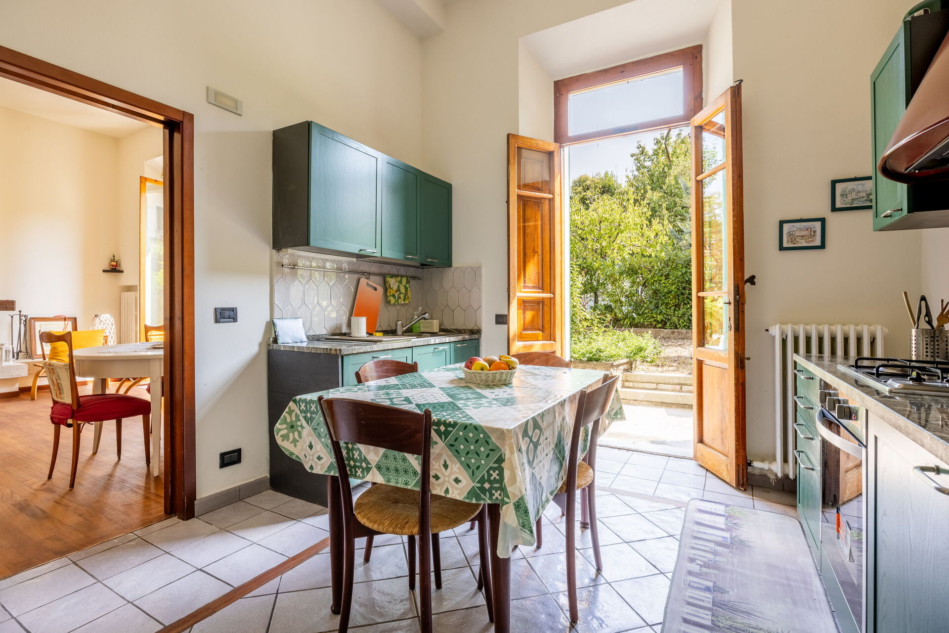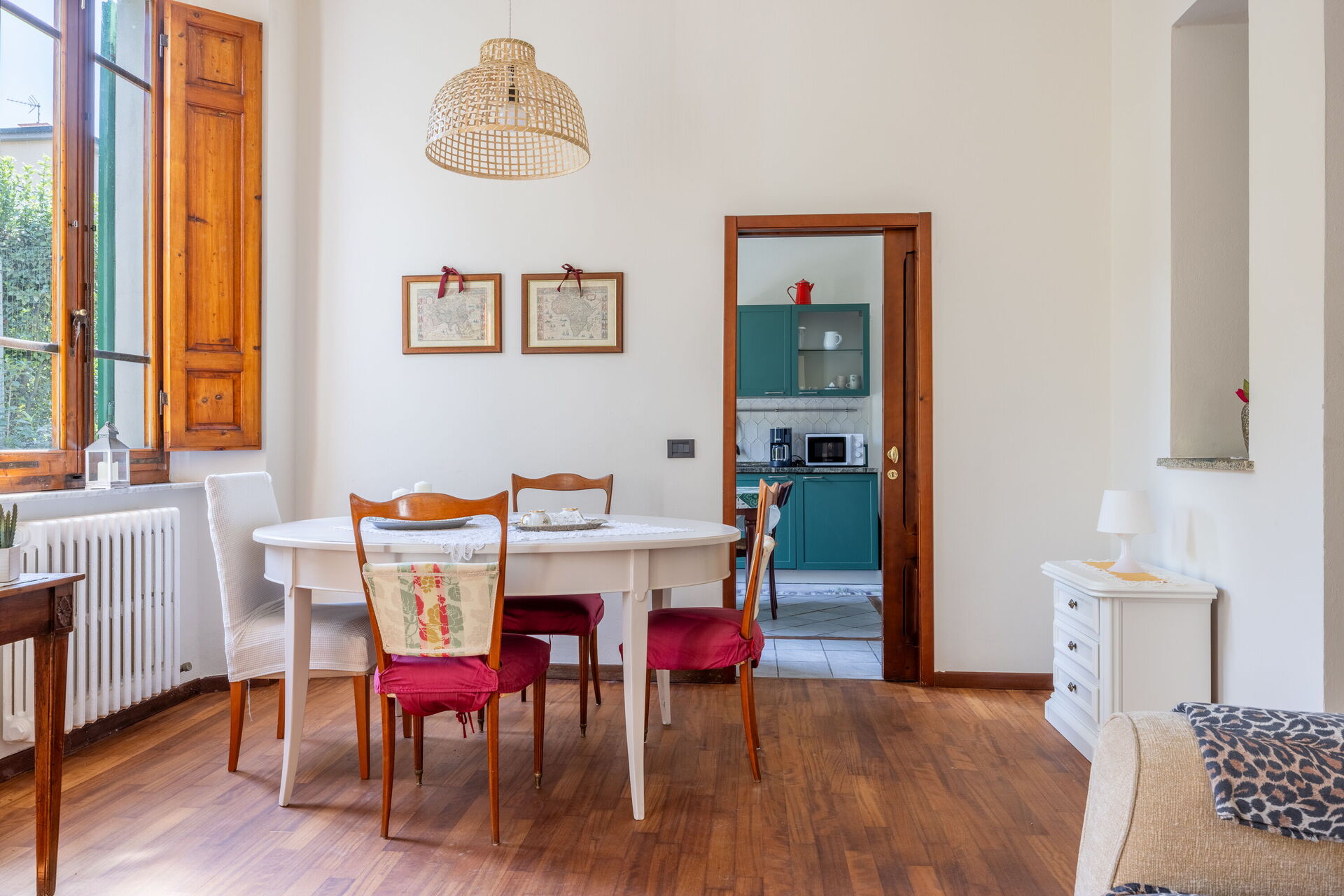 Casa Olivia is a raised ground-floor apartment within a Liberty-style building located in the center of Colle di Val d’Elsa, on the main street leading to Piazza Arnolfo.