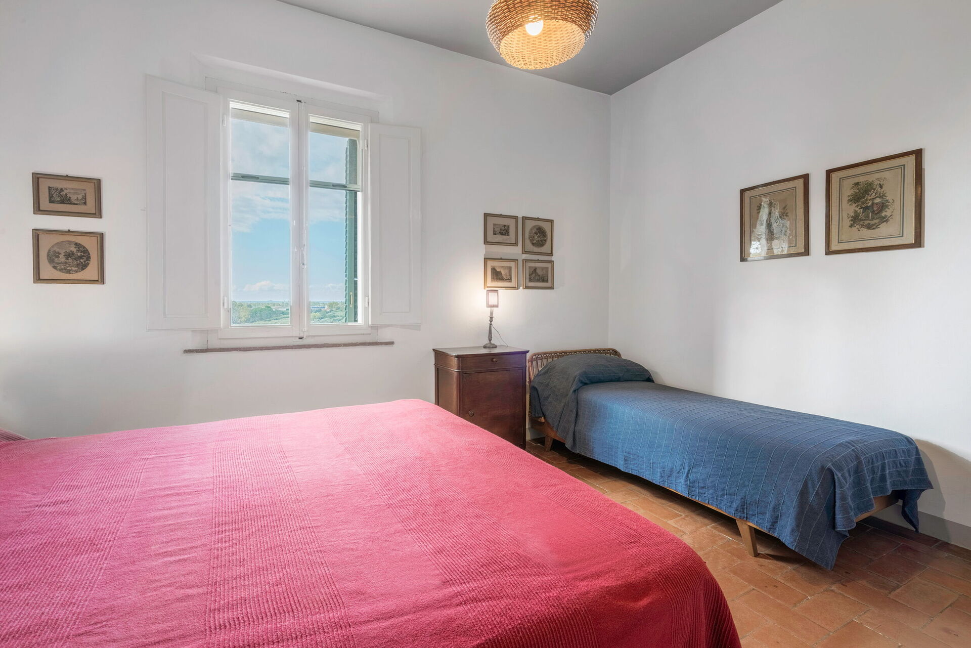 On the first floor: a double bedroom with an extra bed, another double bedroom. A bathroom with shower.