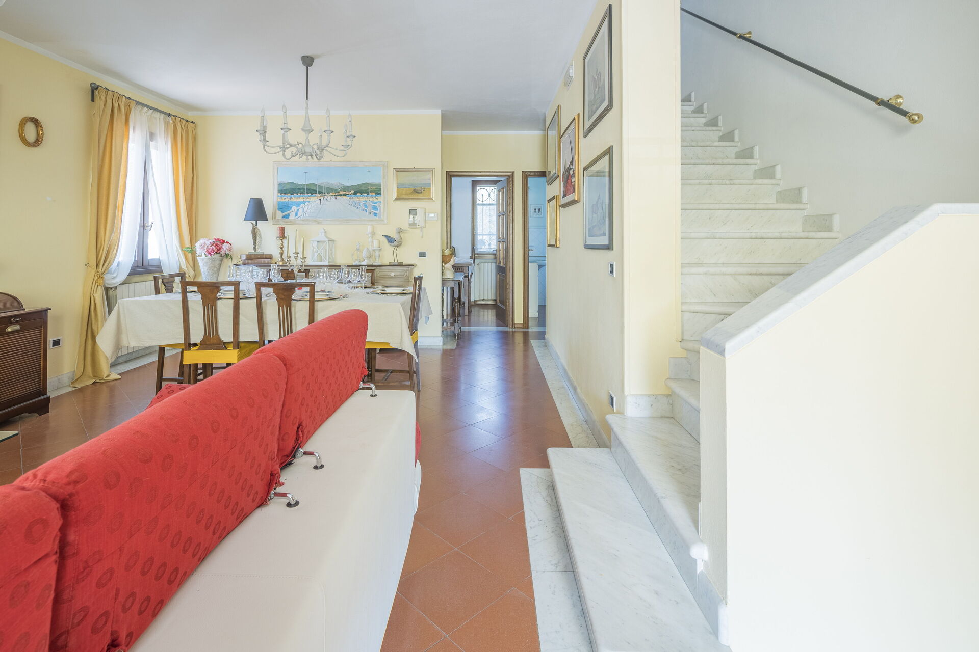 The entrance is on the ground floor while on the first floor there are three balconies, ideal for relaxing in the afternoon after returning from the sea.
