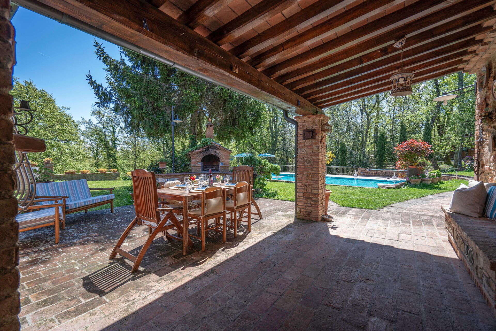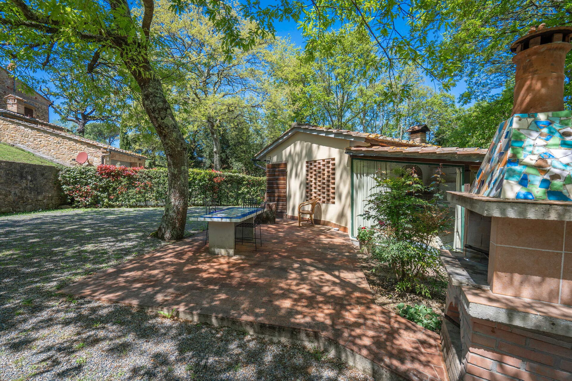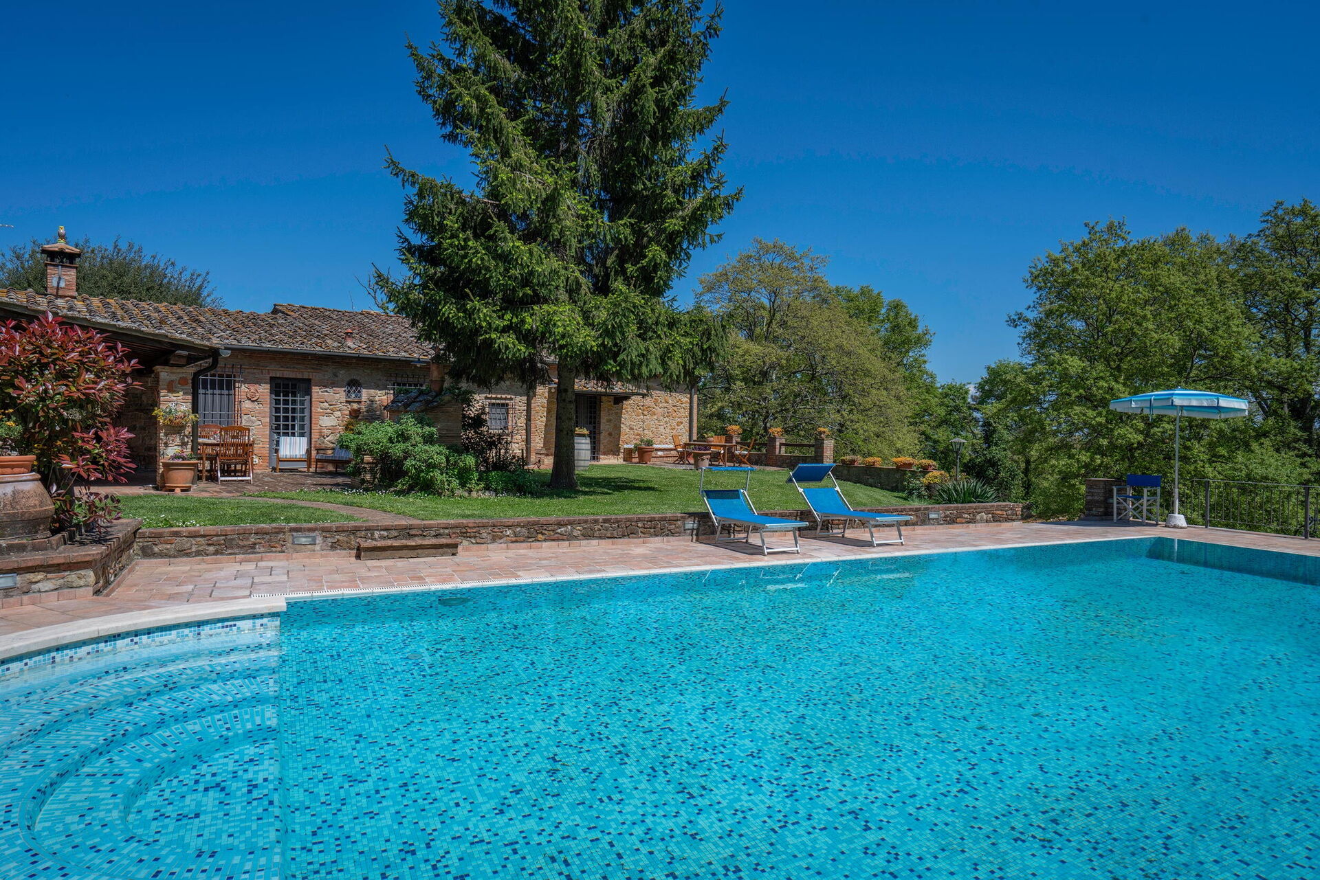 House near Gambassi Terme, the property is immersed in the Tuscan countryside and offers its guests a large garden with a private swimming pool for exclusive use (12 x 6) where you can relax and sunbathe, the area is equipped with sun loungers for everyone. Outdoor shower available.