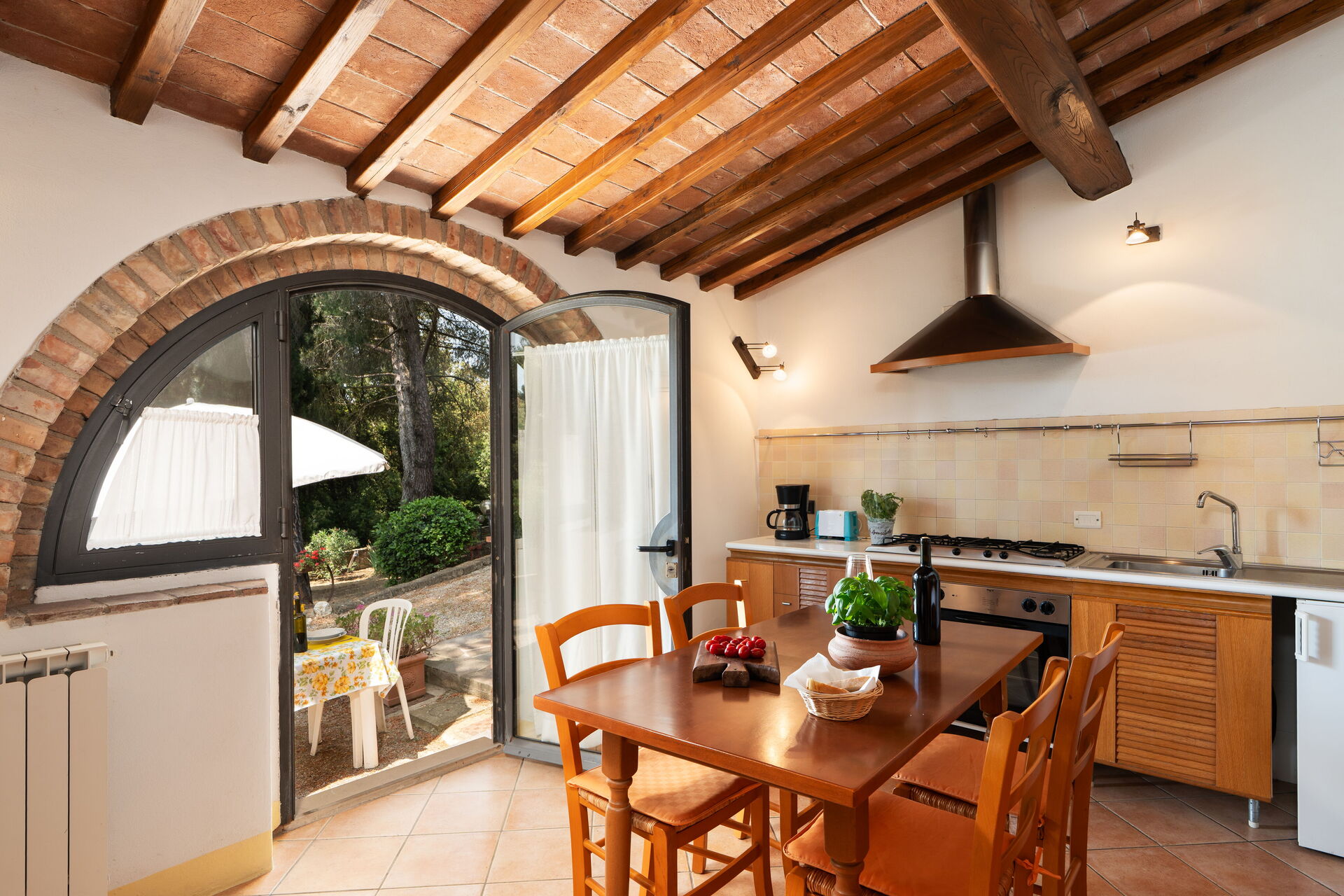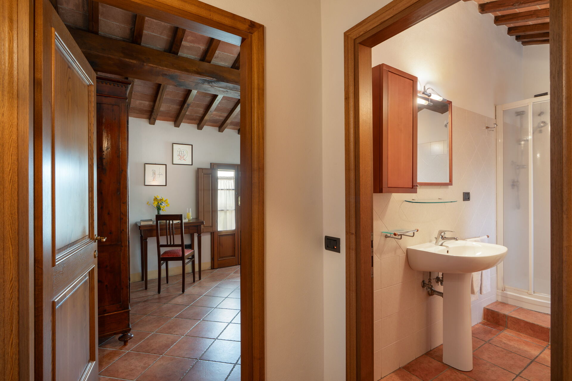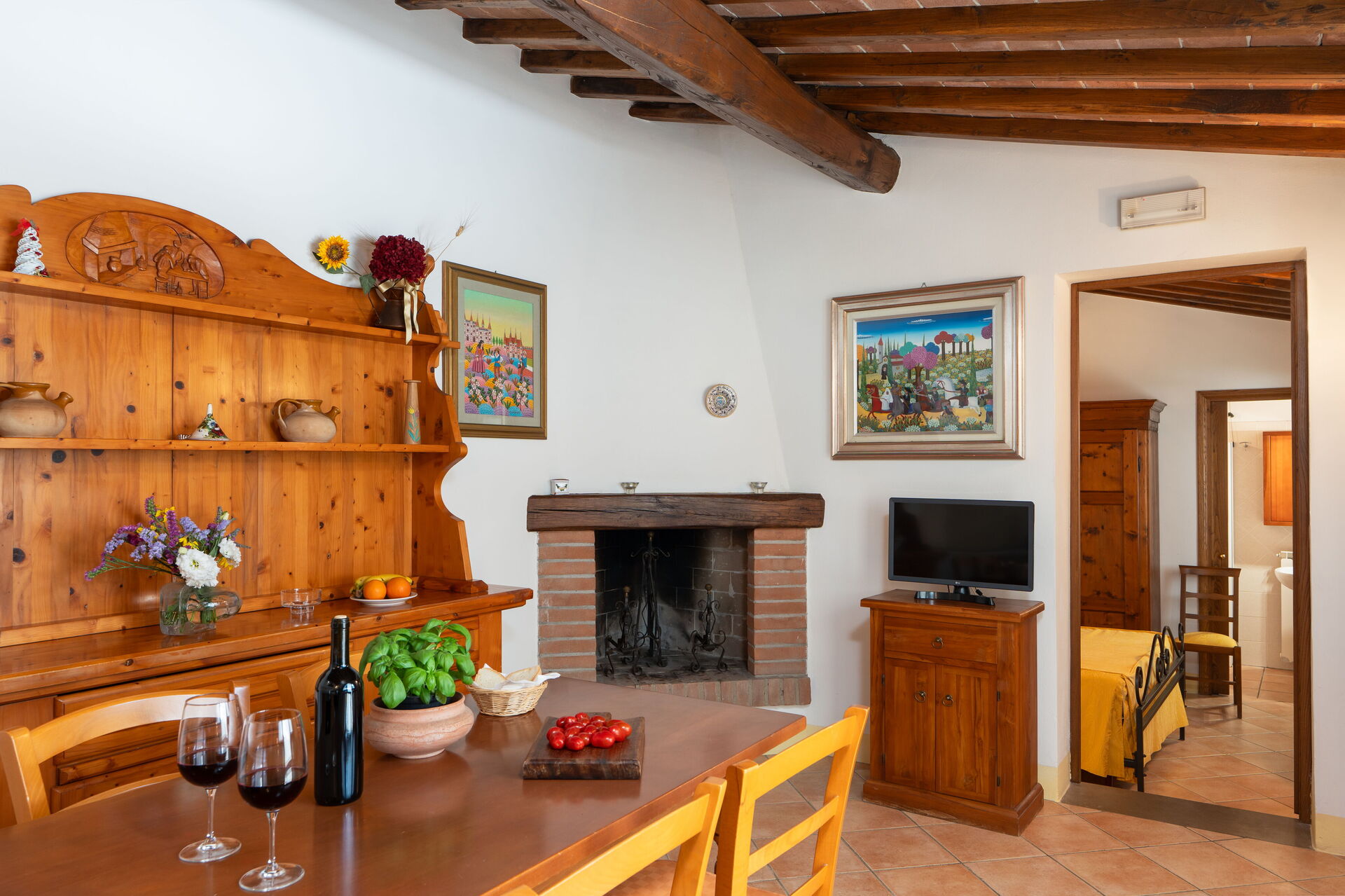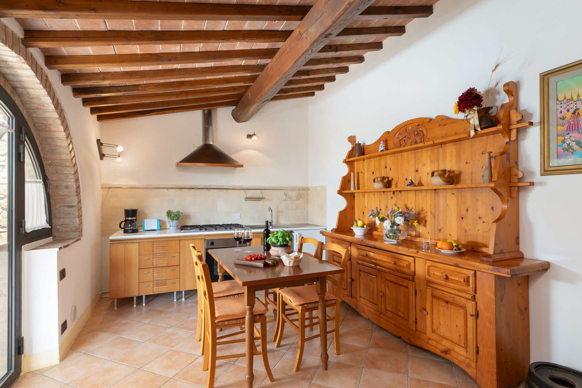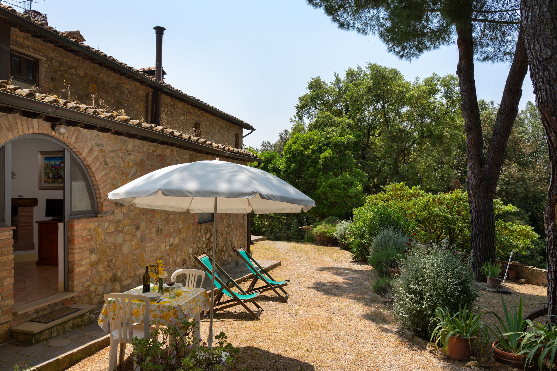 Part of a stone farmhouse dating back to the early 1900s, located just 1km from the beautiful village of Gambassi Terme. Recently restored and furnished in the typical rustic Tuscan style, this property consists of two separate units, each with one bedroom. The property boasts a large garden of 1000sq.m. with a gazebo and barbecue for al fresco meals. The pool (10m x 4m, depth 1.4,) is surrounded by olive groves and vineyards and offers views of the surrounding countryside. Shops and restaurants can be easily reached on foot. Private parking. This property is part of a farm producing its own wine, olive oil, honey and more. The owners live in the other half of the building but the garden, the gazebo and the pool are exclusively for use by the guests. Excellent location for exploring other parts of Tuscan such as San GImignano (16km), Castelfiorentino (8km), Florence (50km), Siena (40km) and Pisa (60km). The coast is 60km away.