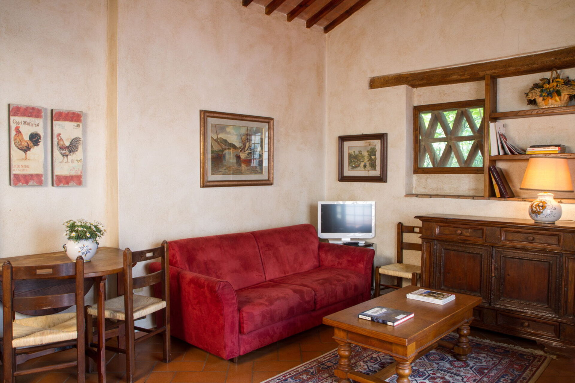 Apartment composed of a welcoming living room with a sofa bed, two double bedrooms (one on the ground floor and one on the basement level), and a bathroom with a bathtub and washing machine located on the basement level. The kitchen is fully equipped with utensils, a stovetop, refrigerator, and oven. A private outdoor area is available for guests. Air conditioning in the room.