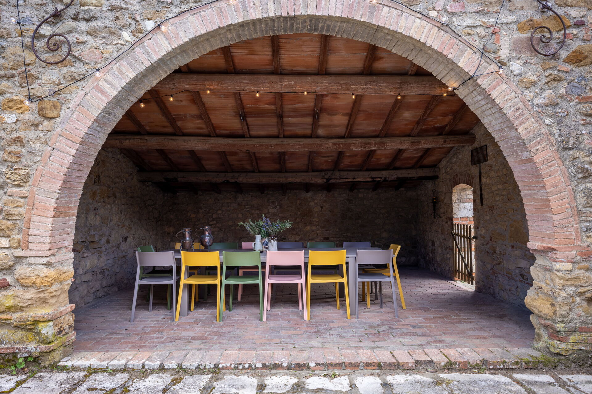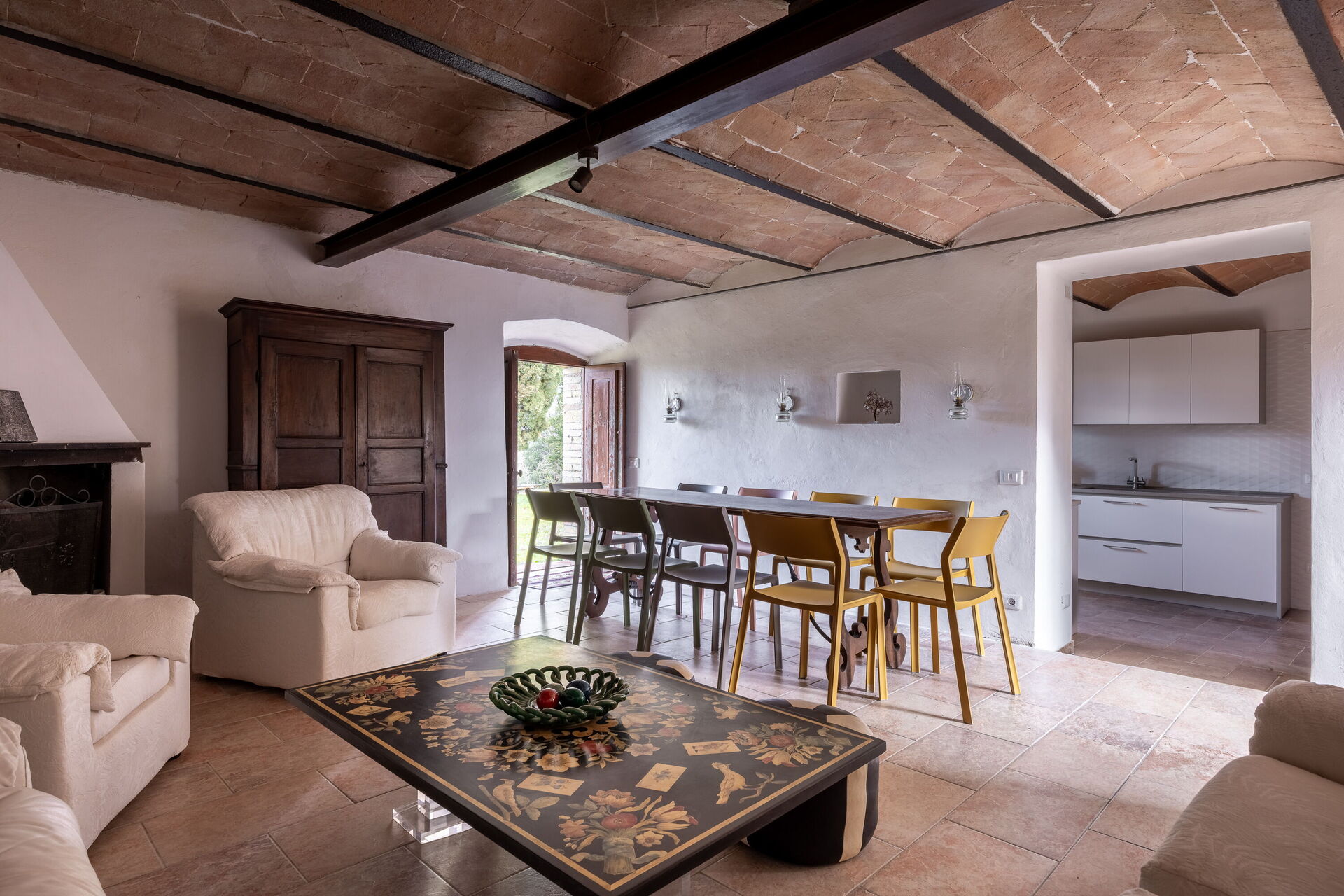 Nestled among the gentle hills of the Siena countryside, it offers an authentic and relaxing stay, ideal for families and groups of friends. The property includes a Farmhouse and Cottage, surrounded by large green areas and well-equipped outdoor spaces, perfect for al fresco dining, relaxation, and convivial moments under the Tuscan sky.