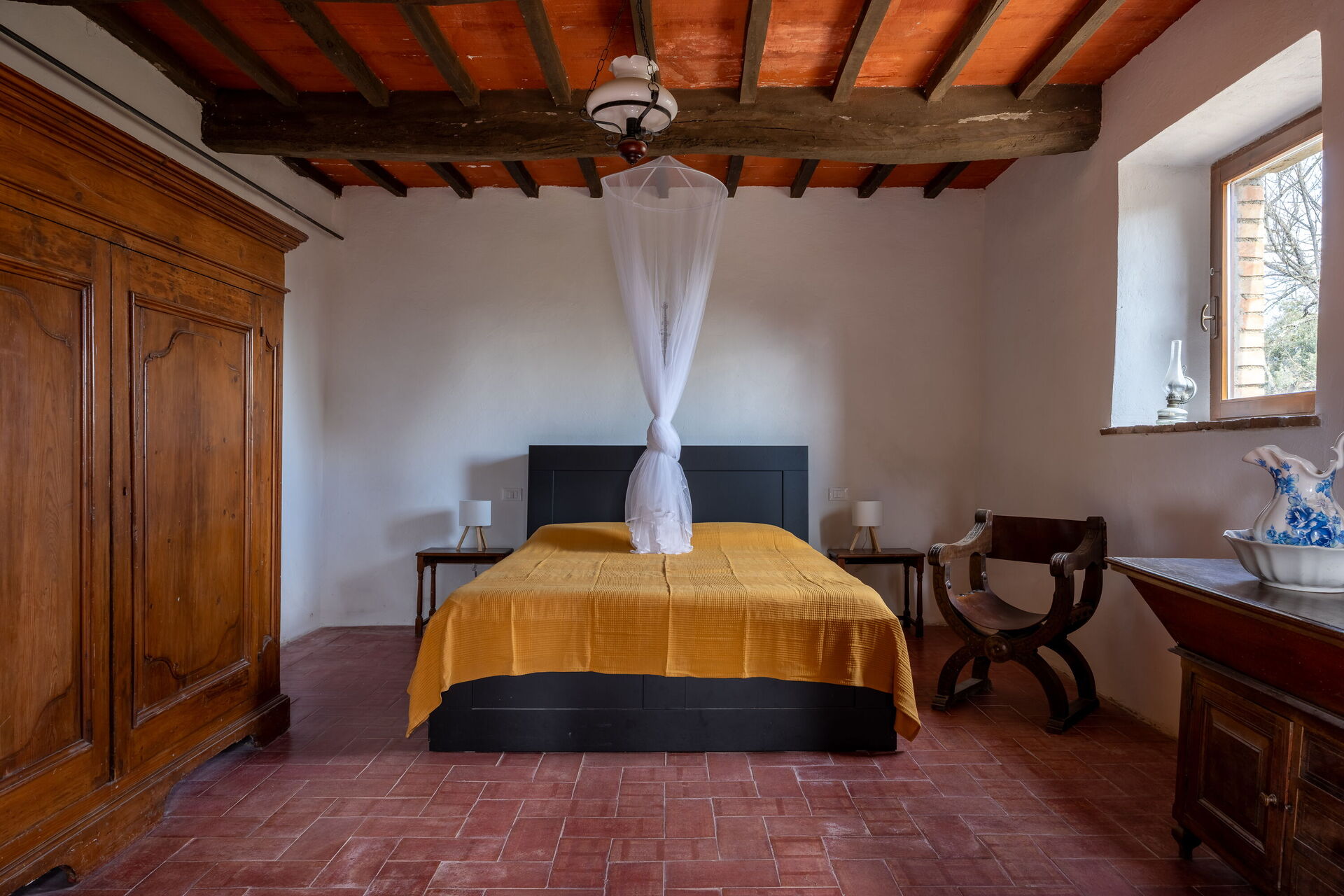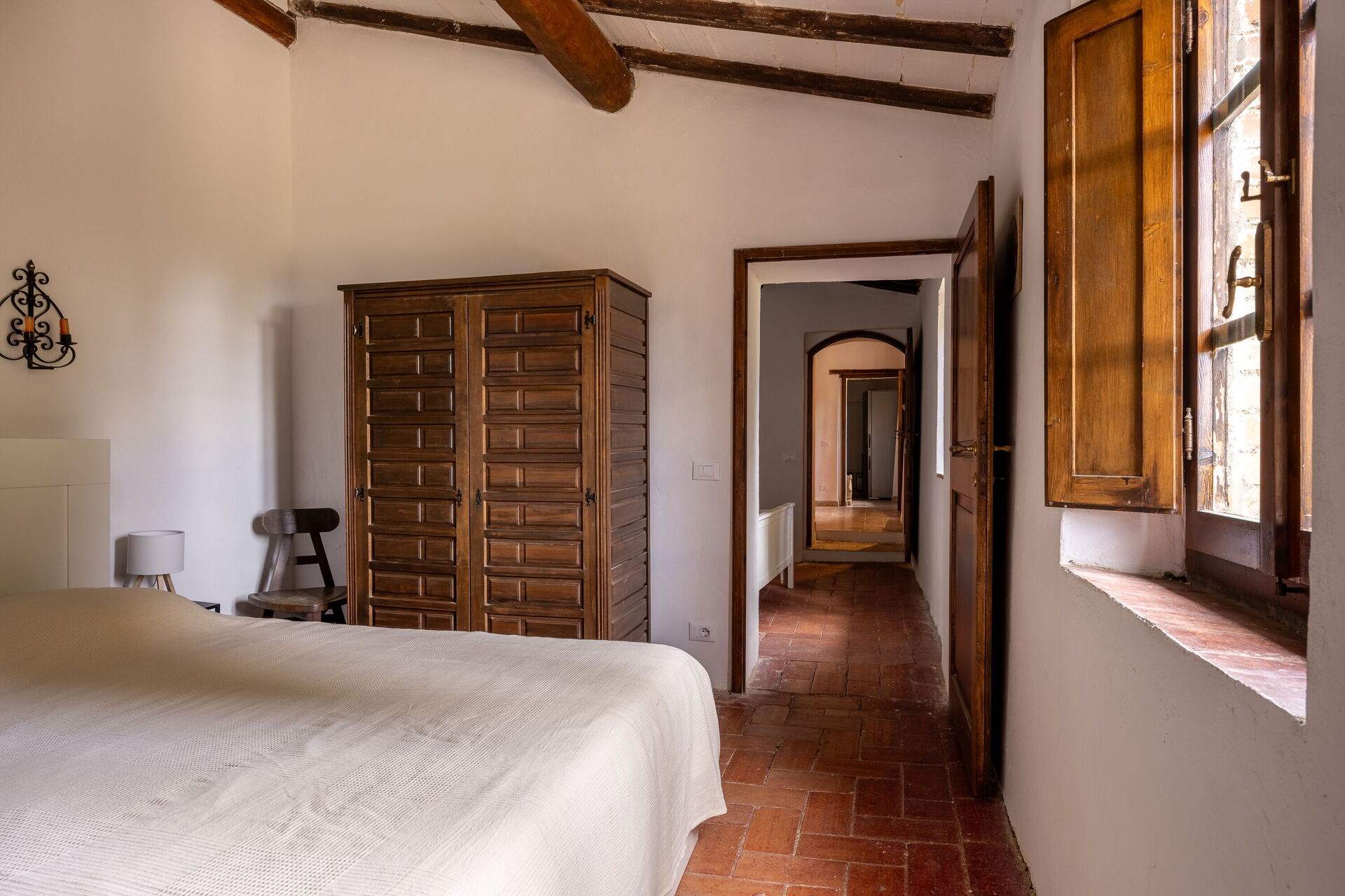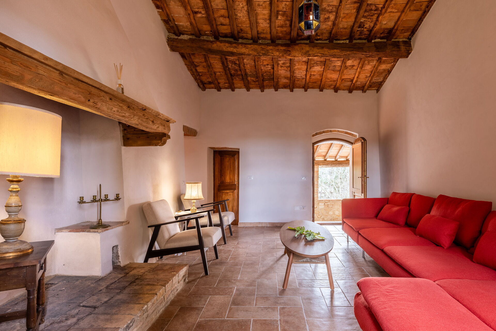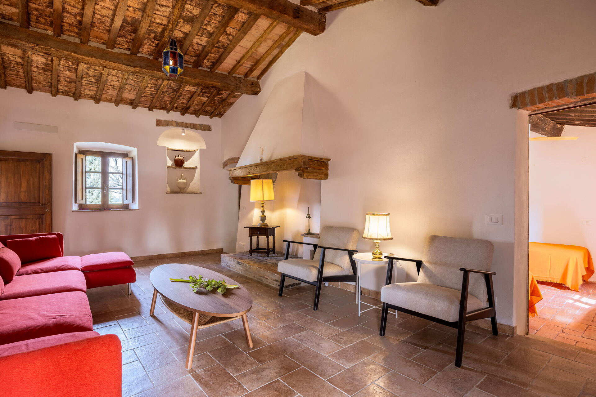 Its strategic location makes it ideal for exploring Tuscany: San Gimignano is just 30 minutes away, Siena 40 minutes, Volterra 50 minutes, and Florence about one hour away, as well as the charming villages of the Val d’Elsa. The panoramic swimming pool, located in front of the main farmhouse, offers moments of pure peace and well-being.