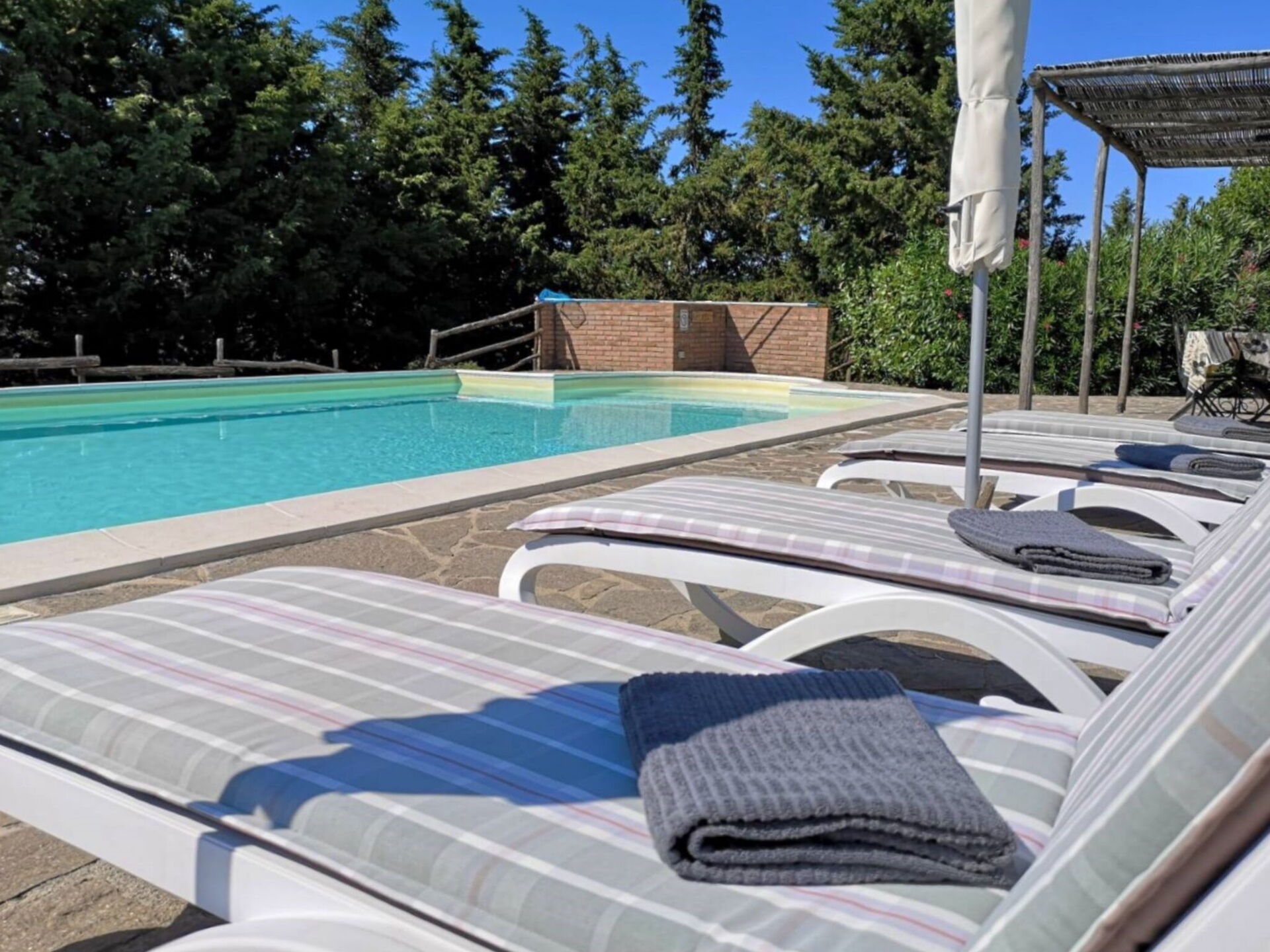 Situated on a hill, this lovely house offers guests a wide view of the green and wooded surrounding hills. Although recently built it keeps the Tuscan rustic style intact. The house is simply furnished, but equipped with all the comforts to enjoy a holiday with all the comforts in close contact with nature. The house is surrounded by a beautiful well-kept garden equipped for outdoor lunches and dinners and with a swimming pool for the exclusive use of guests (12.00 mx 6.00 m. Depth 1.50 m. Access with steps). It should be noted that although animals are allowed, the property is not fenced and there are sheepdogs working in the surrounding area.