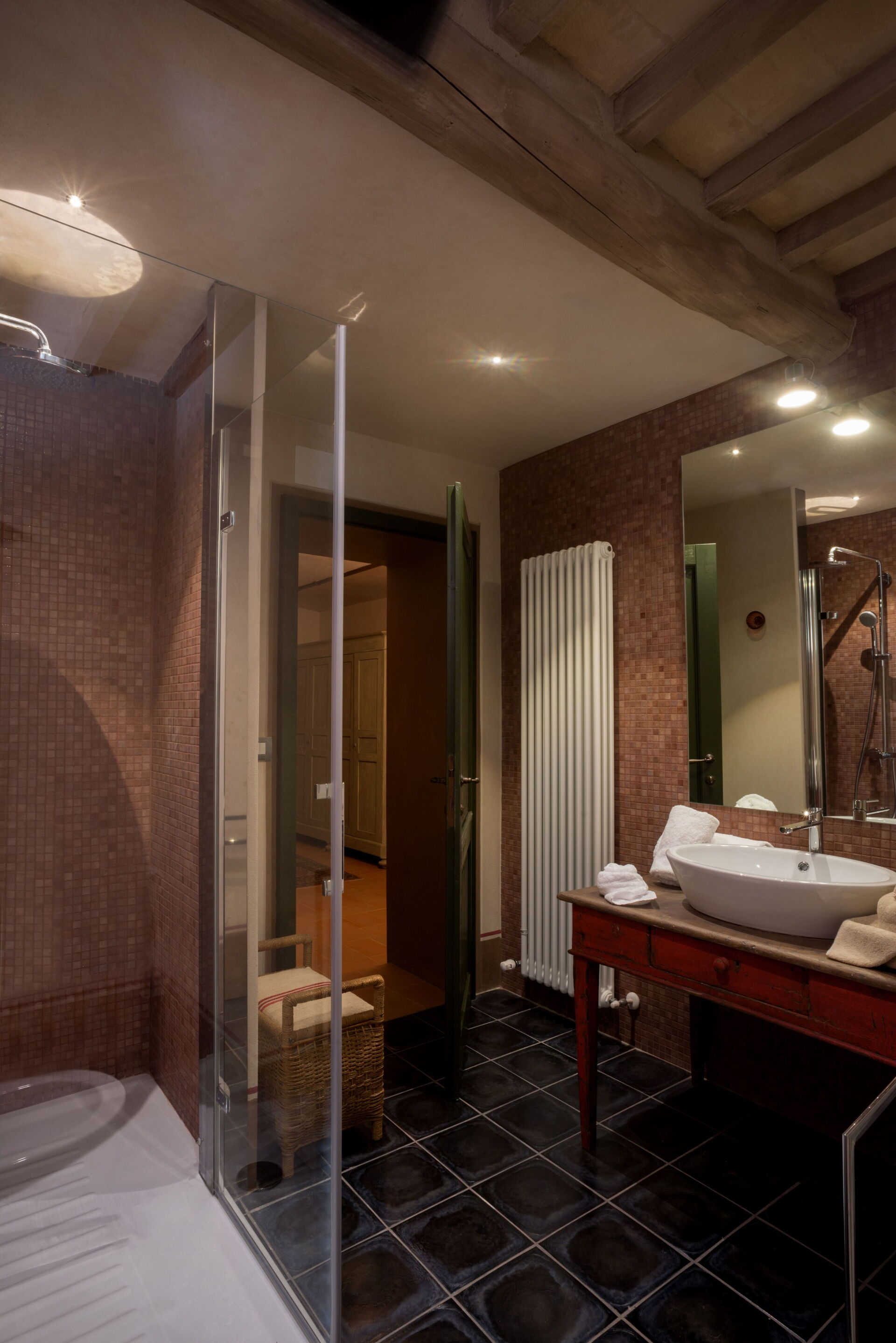 The upper floor is connected to the outside both by comfortable original stone stairs and by a wooden bridge that gives access to the garden on the mountain side and to the swimming pool with an accessible path, also in this case, also for people with disabilities.